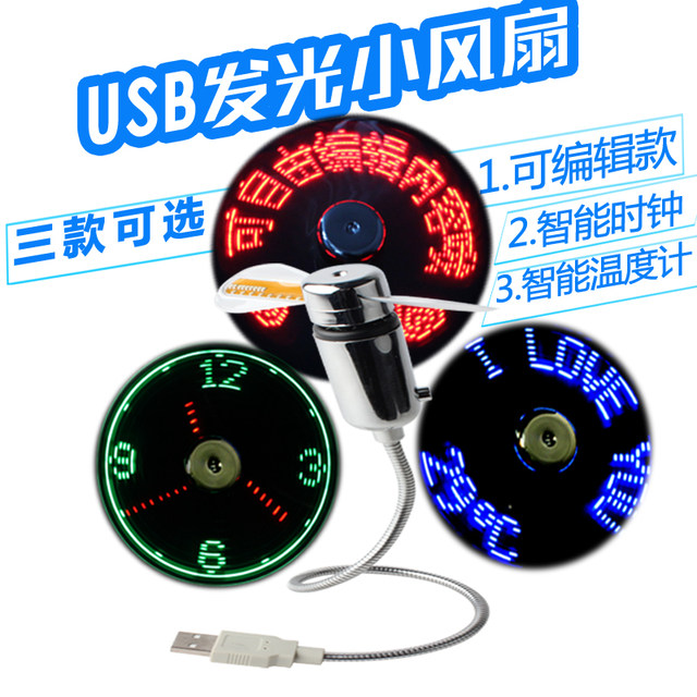 ReSound USB Smart Clock Small Fan LED Luminous Flashing Words DIY Customized Changing Time Car Creative Men and Women Confession Birthday Gift Student Mini Silent Portable Handheld Fan