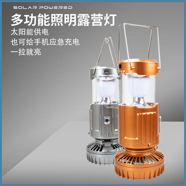 Solar outdoor tent fan camping lamp strong light retractable emergency camp lamp horse lantern household portable lighting