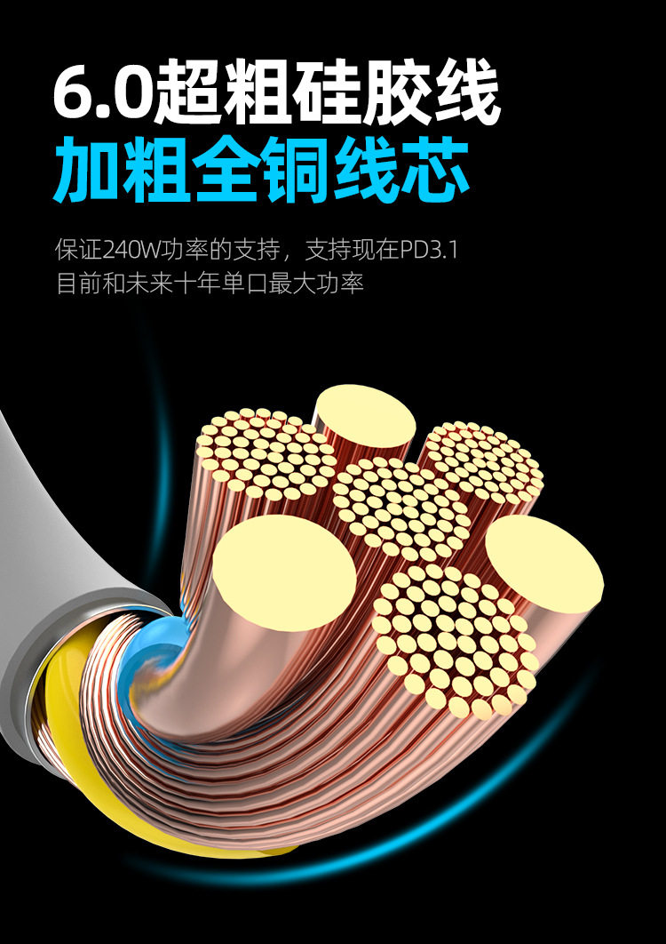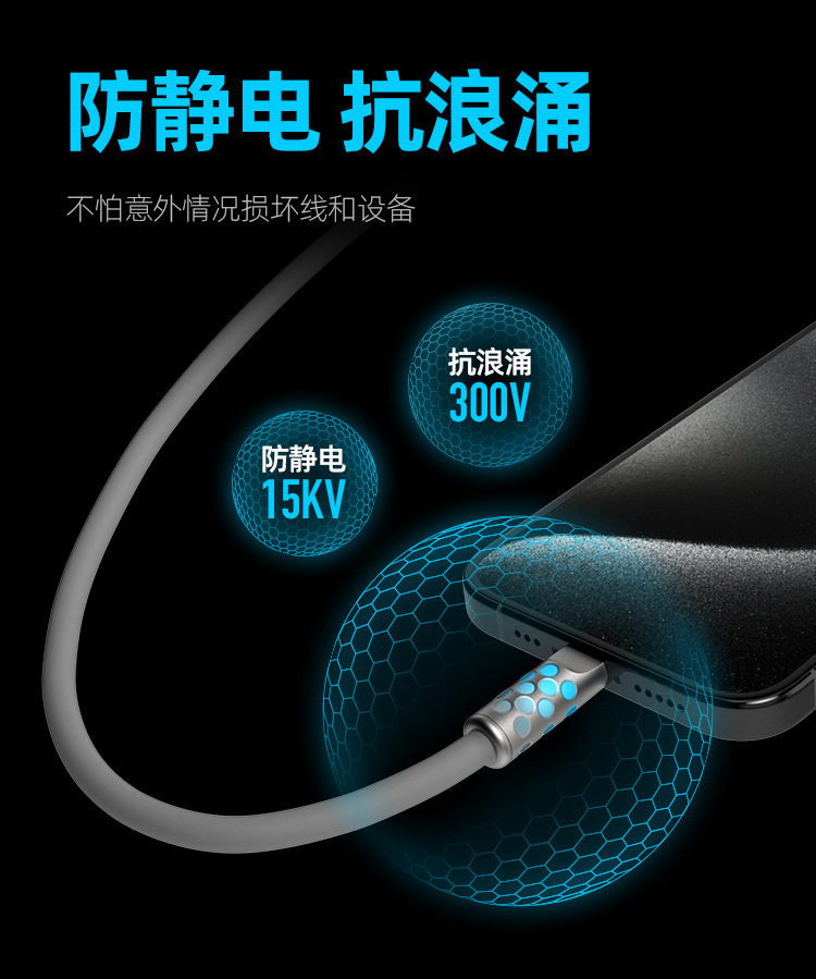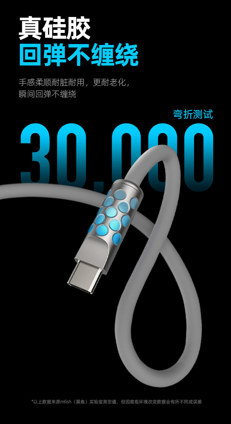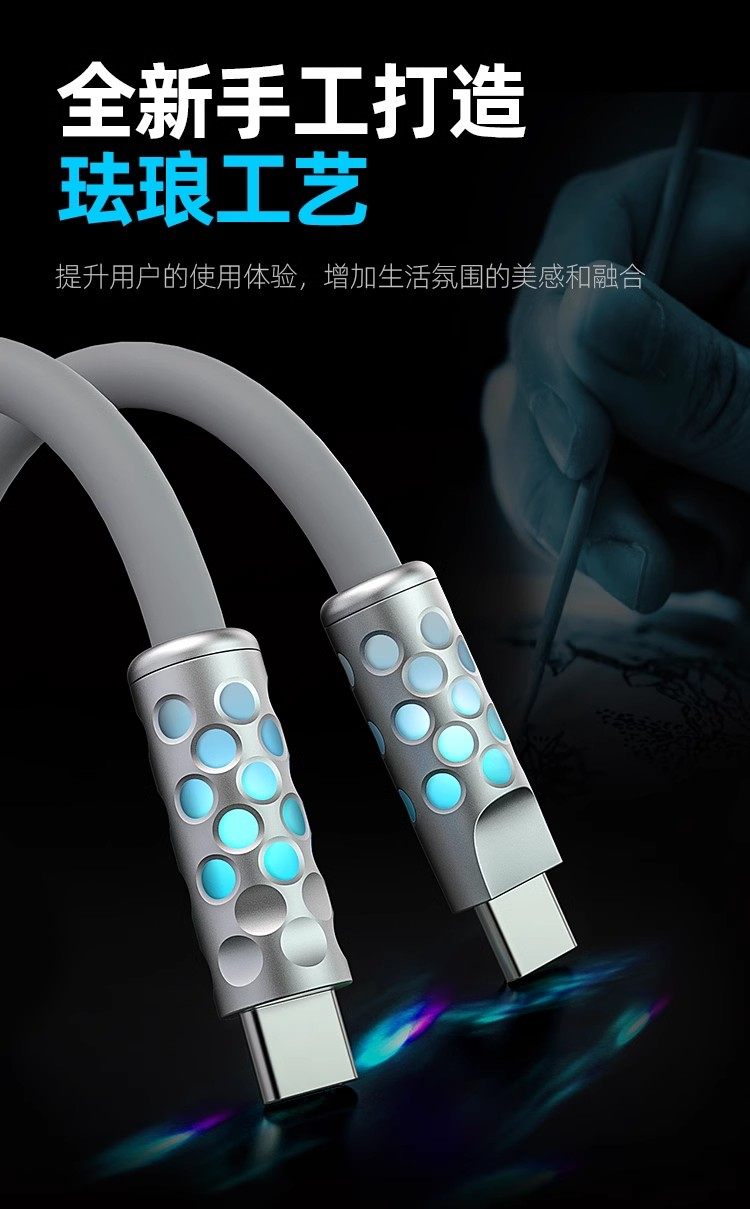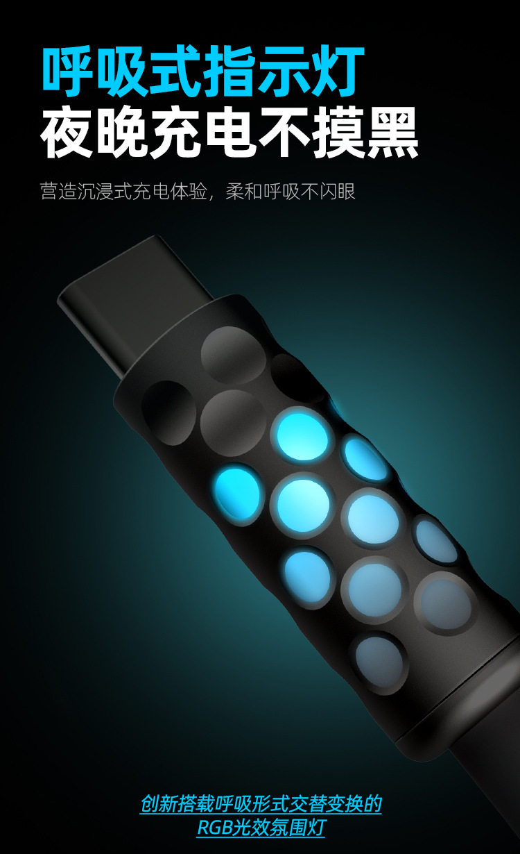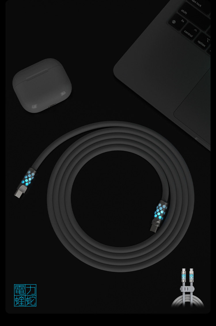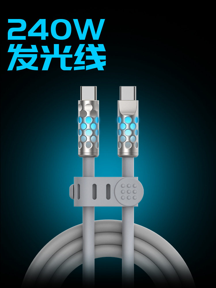 Power Viper 240W Full-Power Luminous Data Cable, Fast Charging, Liquid Silicone, Suitable for Apple and Android Data Cables, 1.5m with Breathing Indicator Light