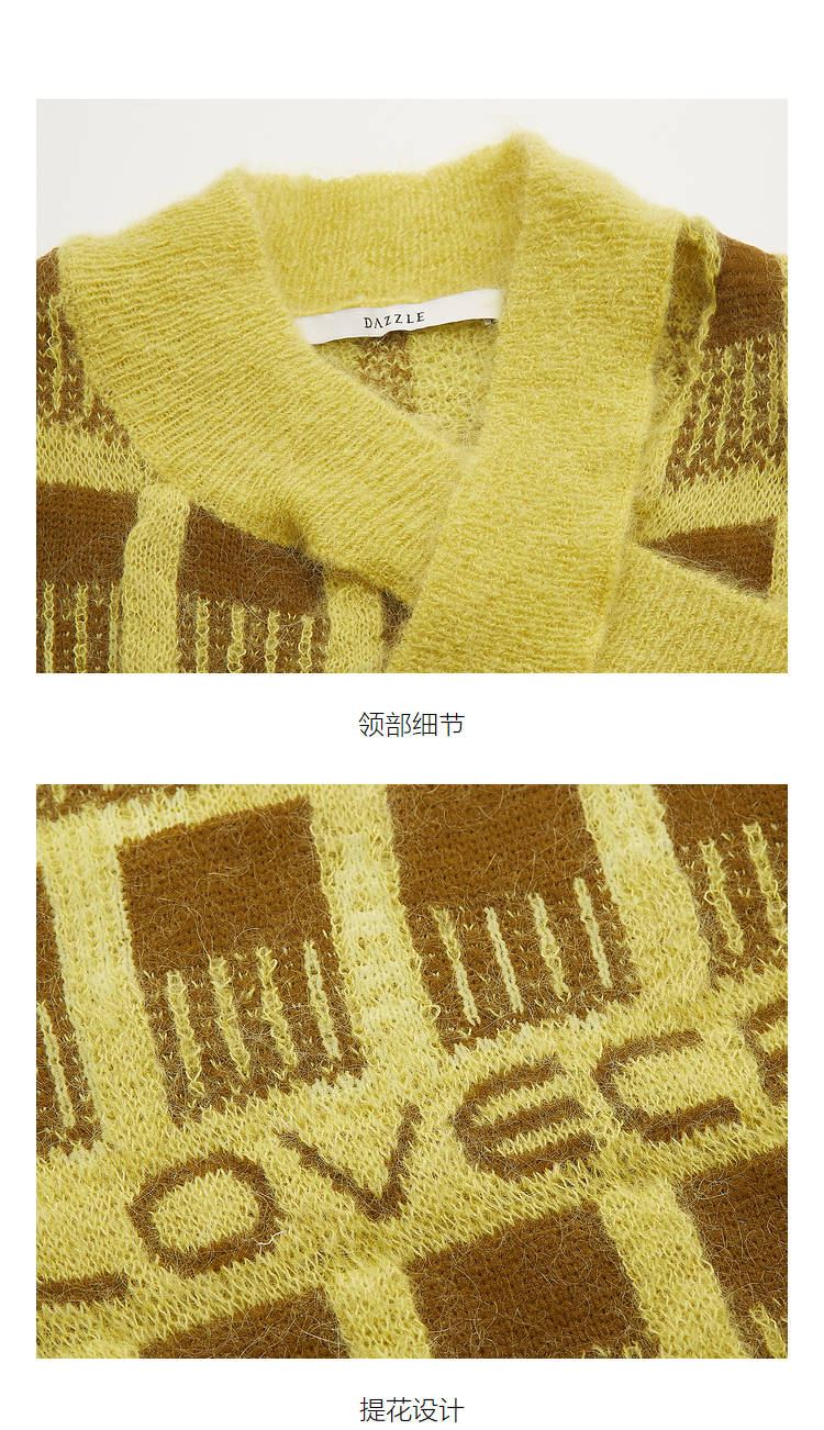 Dazzle Disu Outlet Plaid Jacquard Ribbon Round Neck Pullover Sweater for Women 2D4E4771V