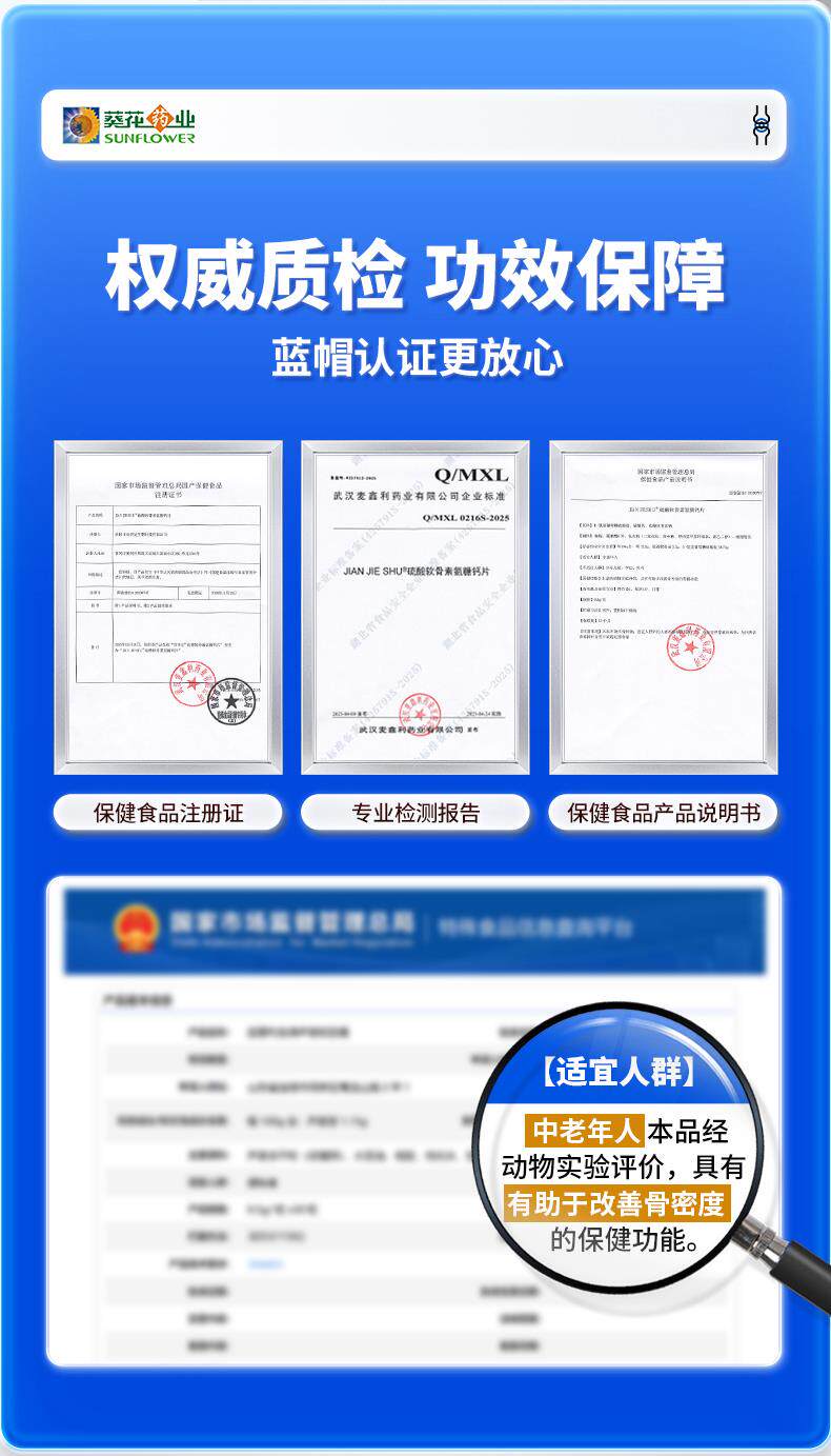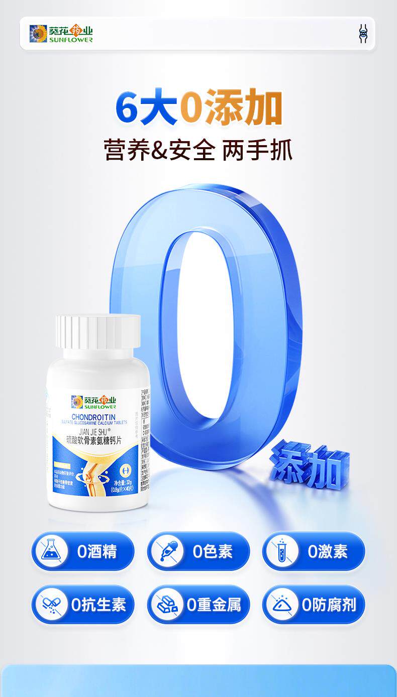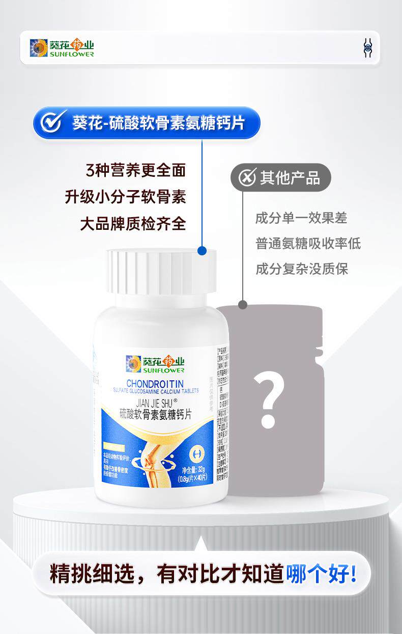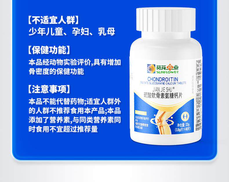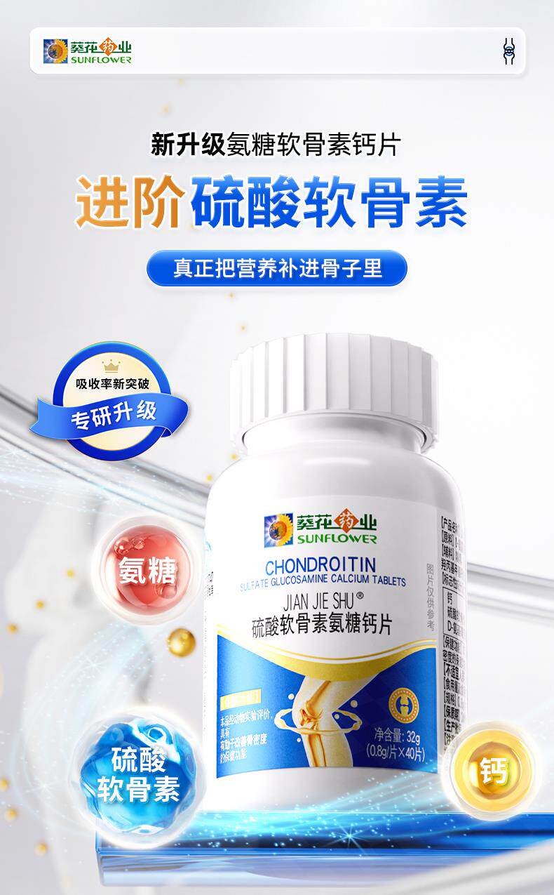 Sunflower Pharmaceutical Glucosamine Chondroitin Calcium Tablets for Middle-Aged and Elderly People to Protect Joint Pain and Supplement Calcium and Collagen