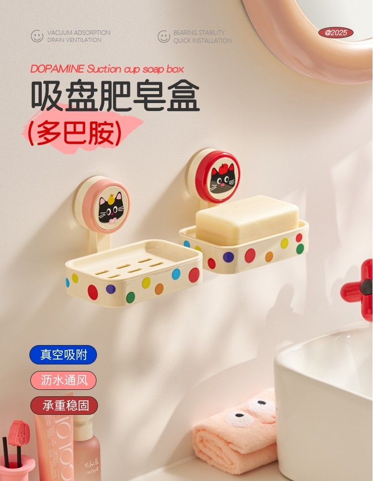 Japanese Imported Suction Cup Soap Holder, No-Drill Wall-Mounted Soap Box, High-End Household Bathroom Storage Rack