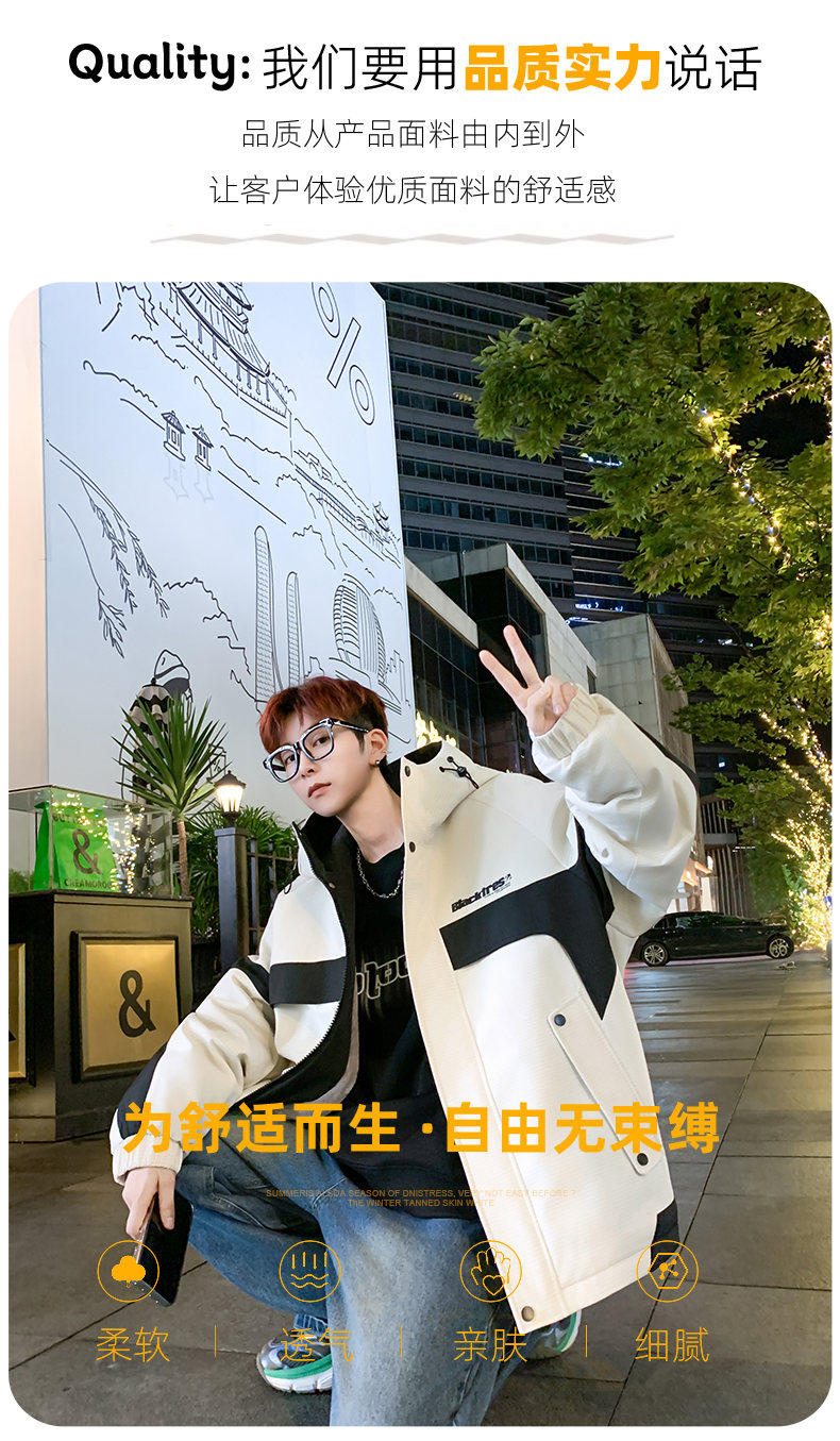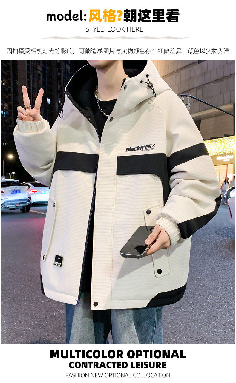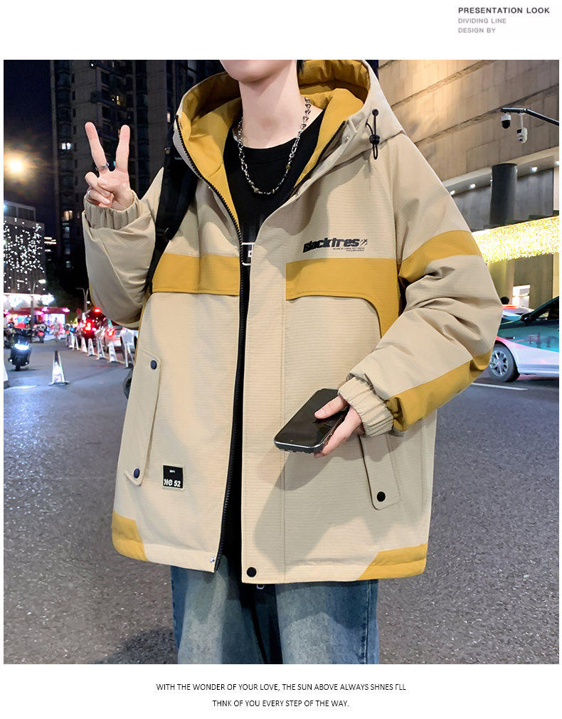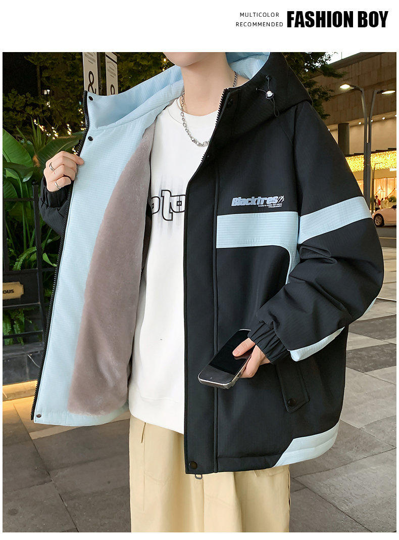 Woodpecker velvet thickened jacket men's winter 2025 new loose hooded workwear youth cold-proof cotton coat pure