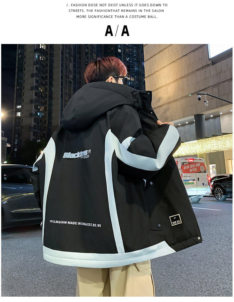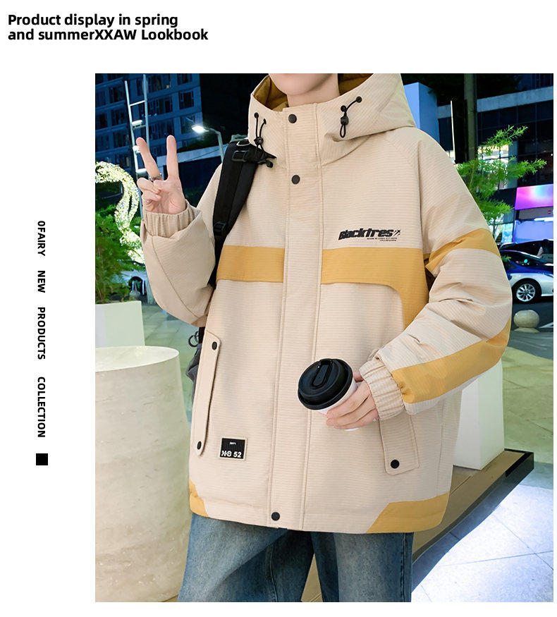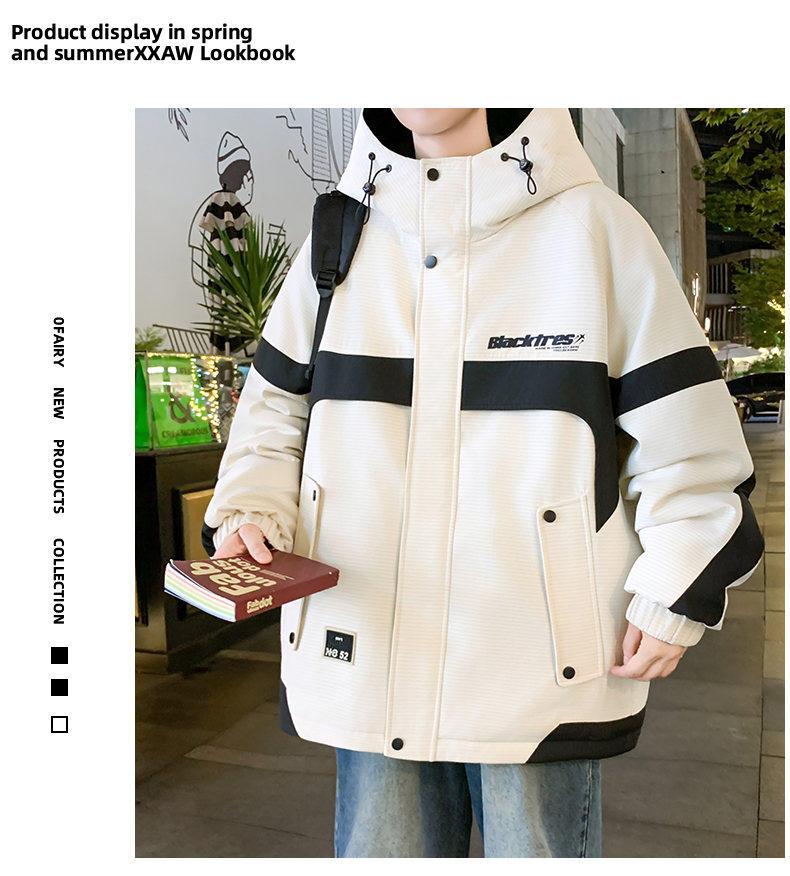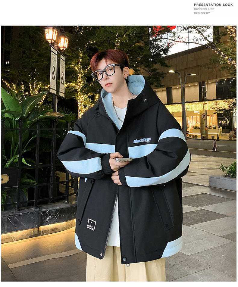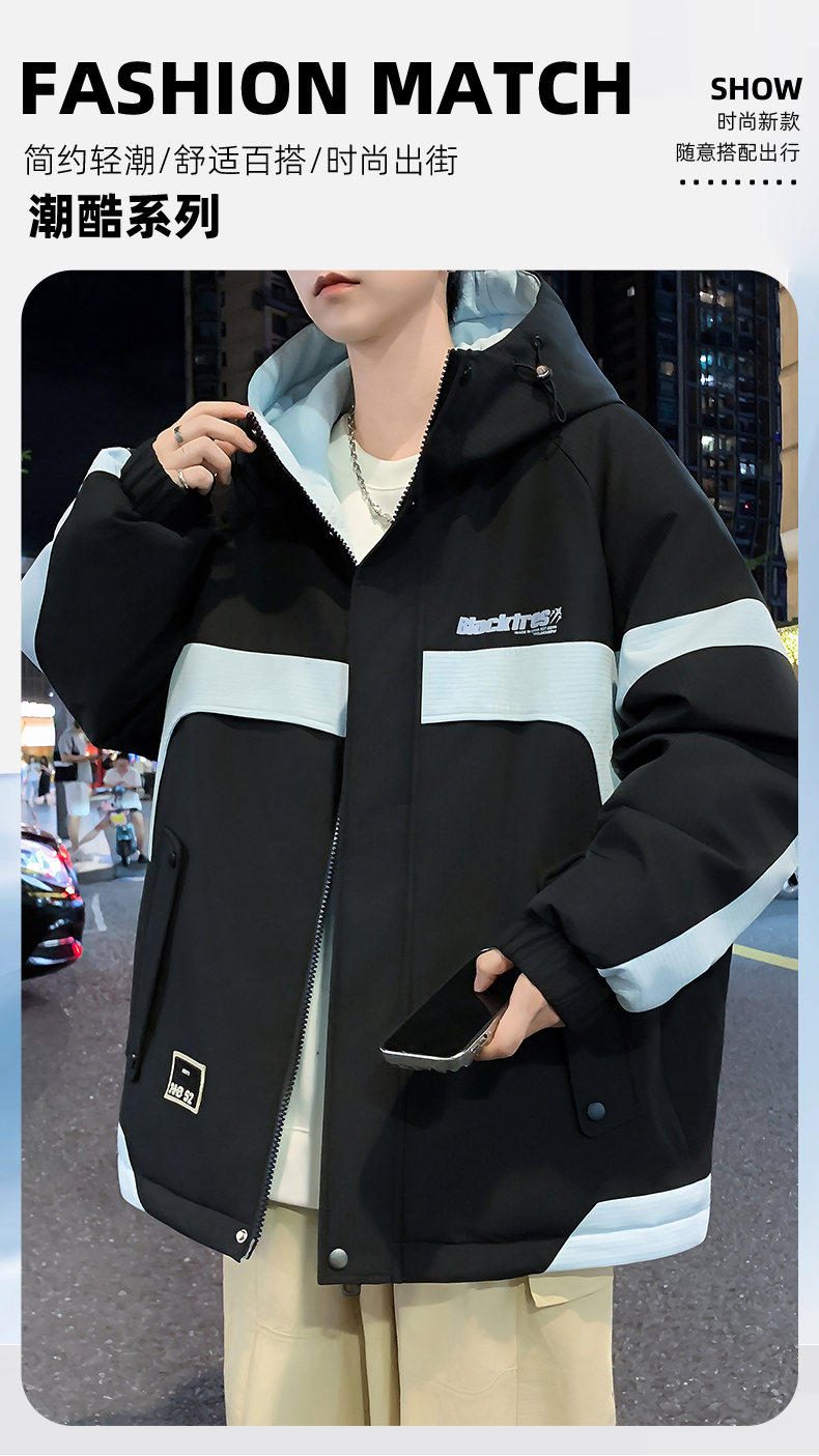 Woodpecker velvet thickened jacket men's winter 2025 new loose hooded workwear youth cold-proof cotton coat pure
