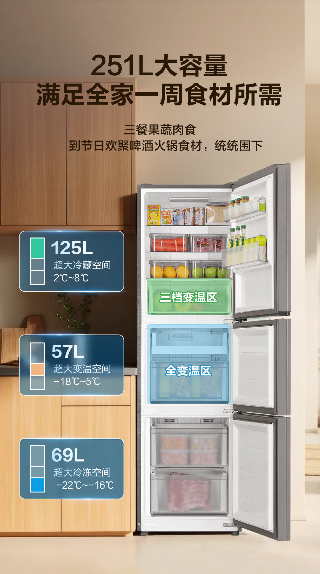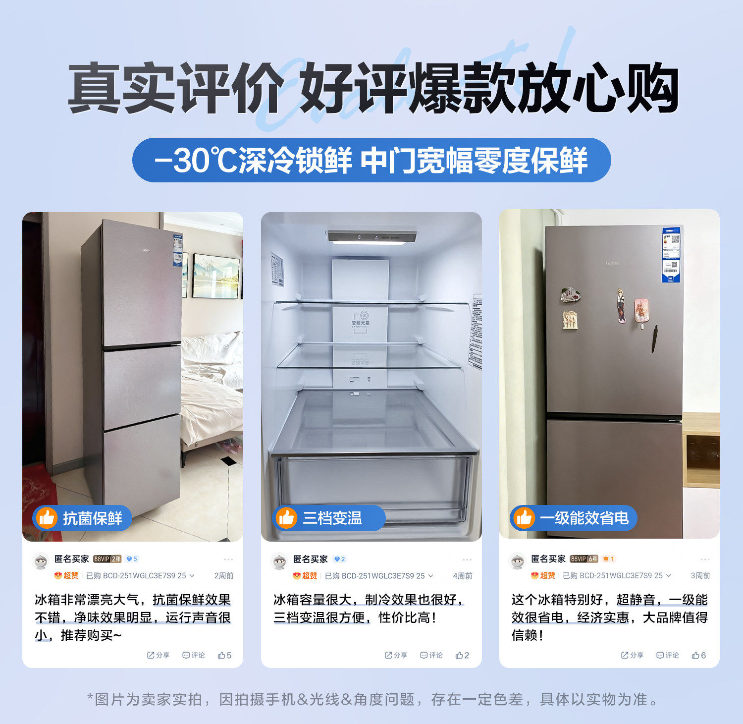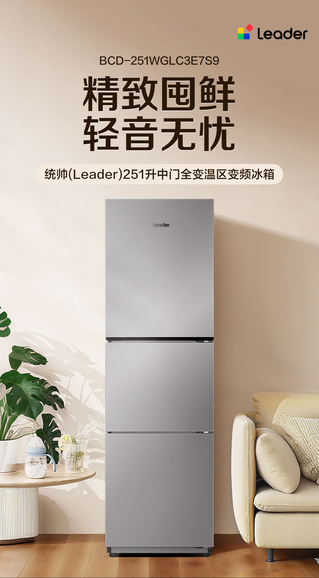 Haier Produces the Leader Haier Refrigerator, a Small 251L Household Model with First-Class Energy Efficiency, Frost-Free Cooling, Official Flagship Store