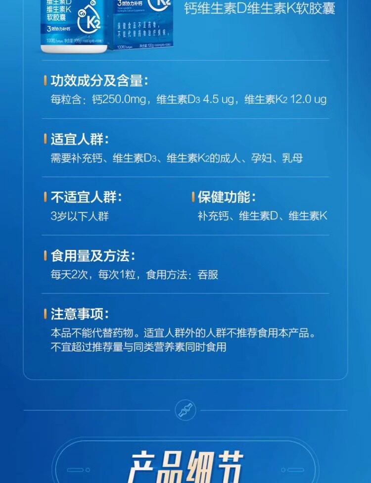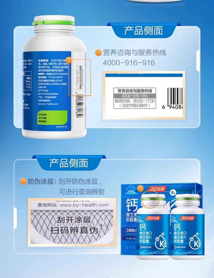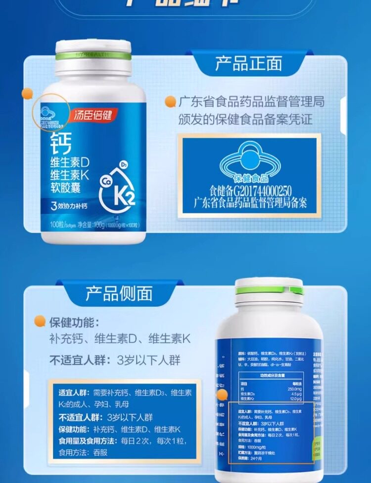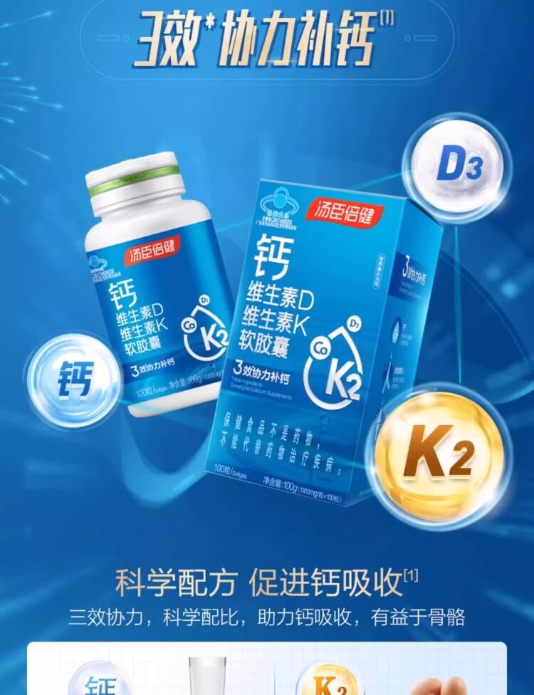 Tomson By-Health liquid calcium tablets k2 calcium vitamin d3 soft capsule calcium supplement DK genuine middle-aged and elderly official