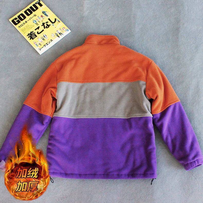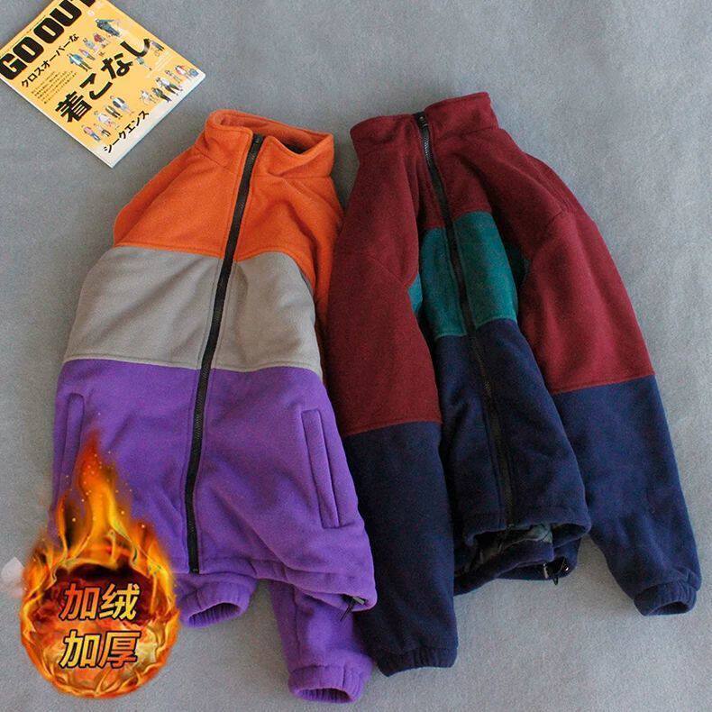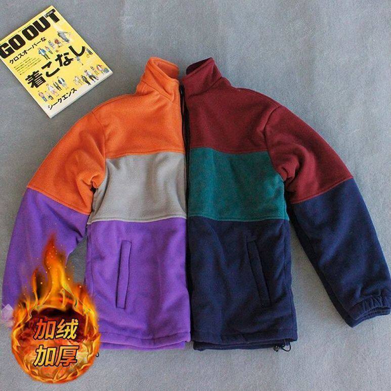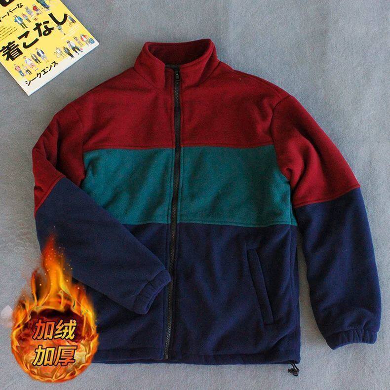 European Polar Fleece Jacket for Men and Women 2025 Winter Warm Casual Retro Contrast Color Stitching Large Size Jacket Top