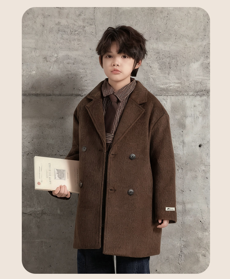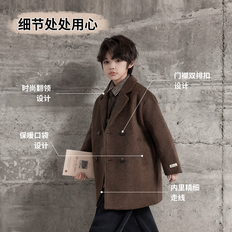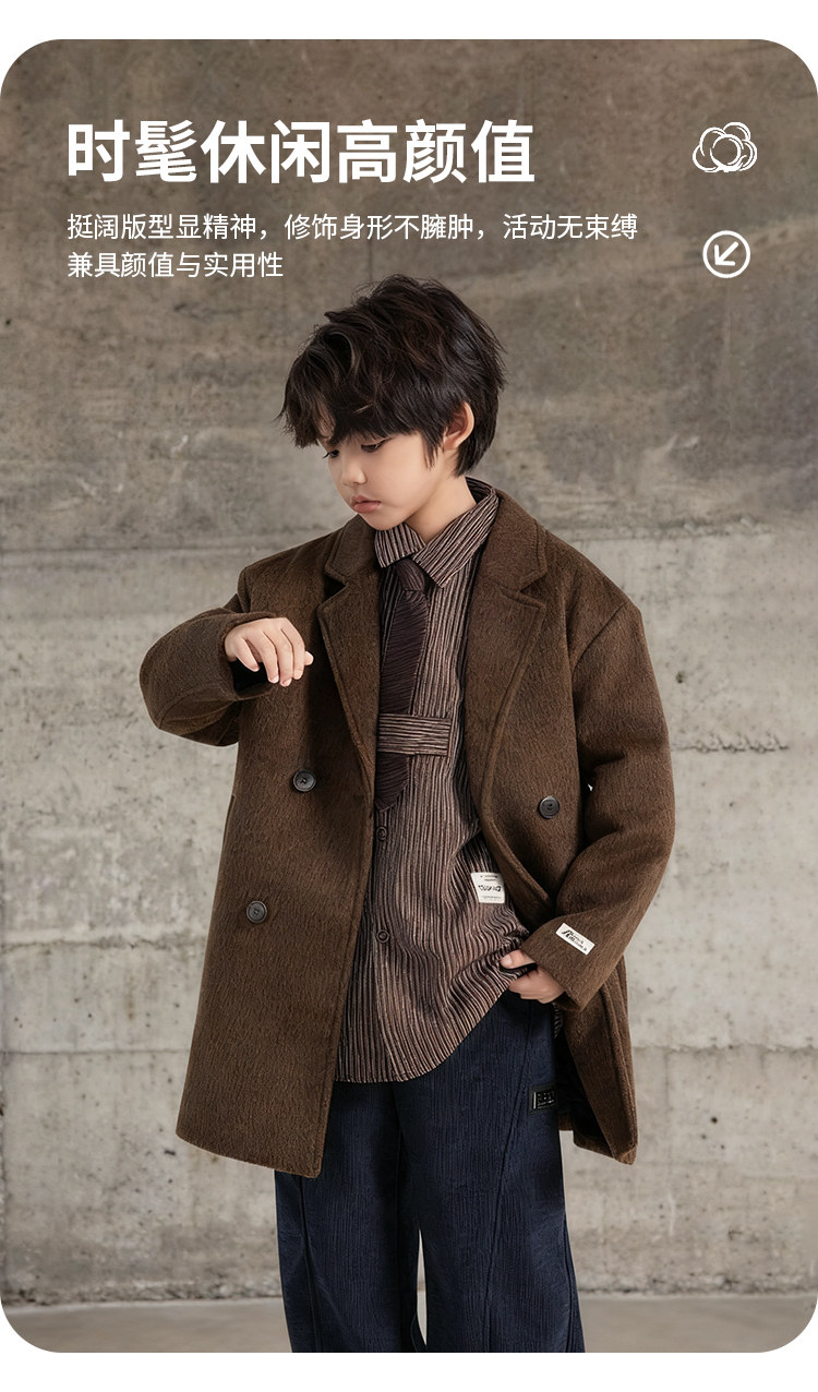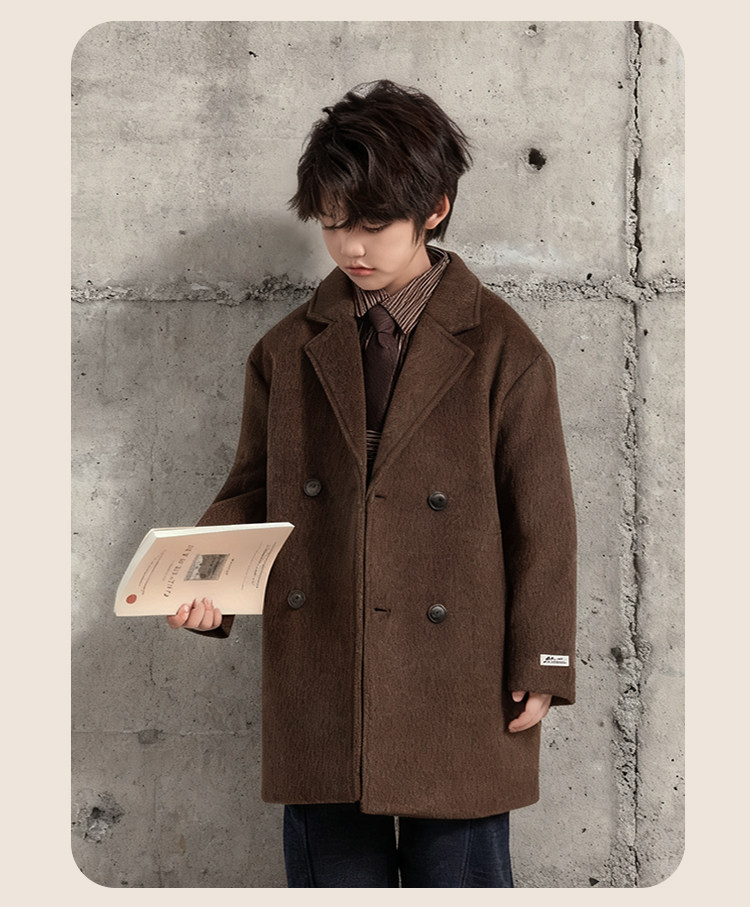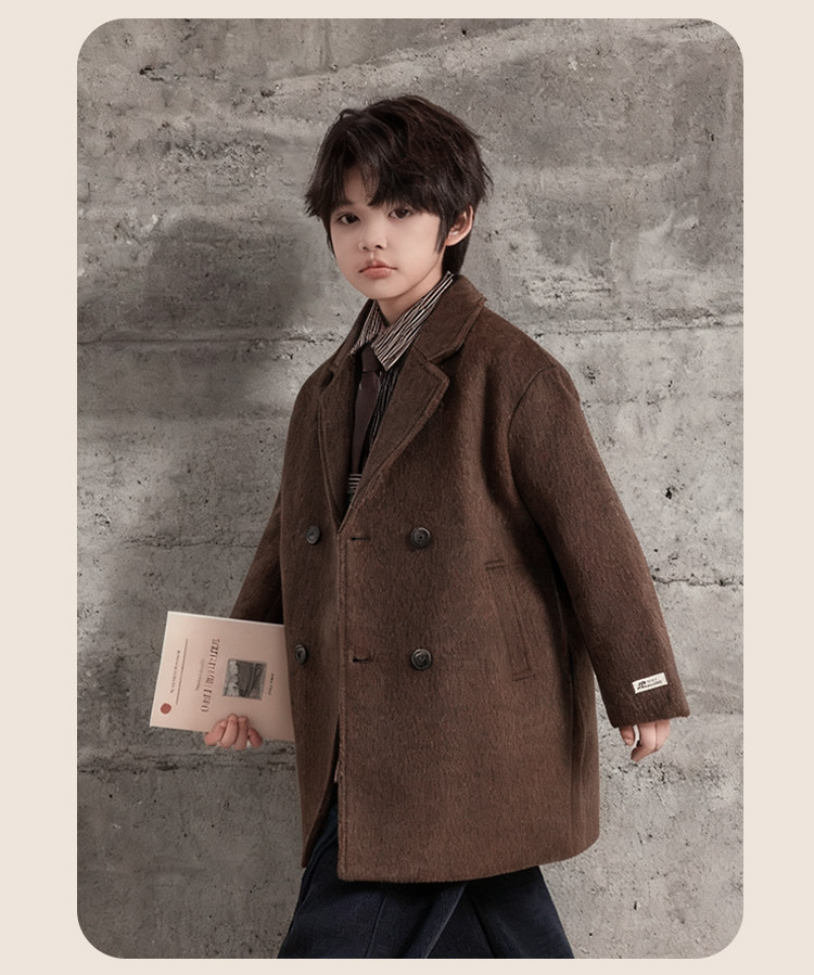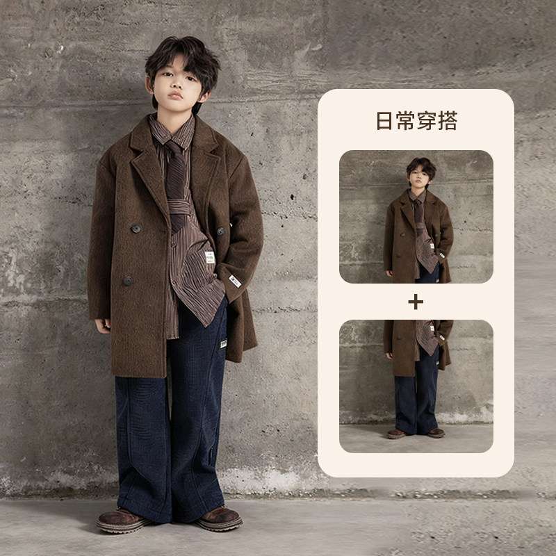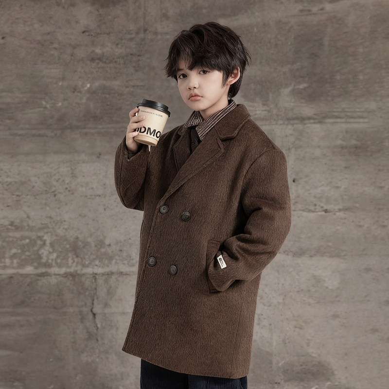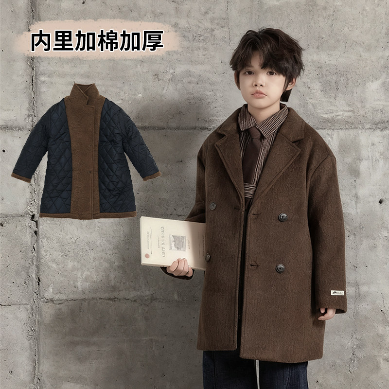 Boys' Autumn and Winter Woolen Coat 2025 New Style Children's Mid-Length Padded Thickened Coat for Older Kids Winter Fashion
