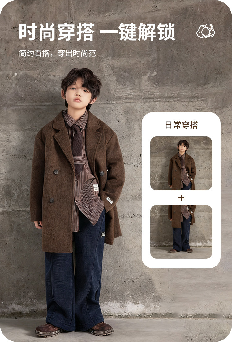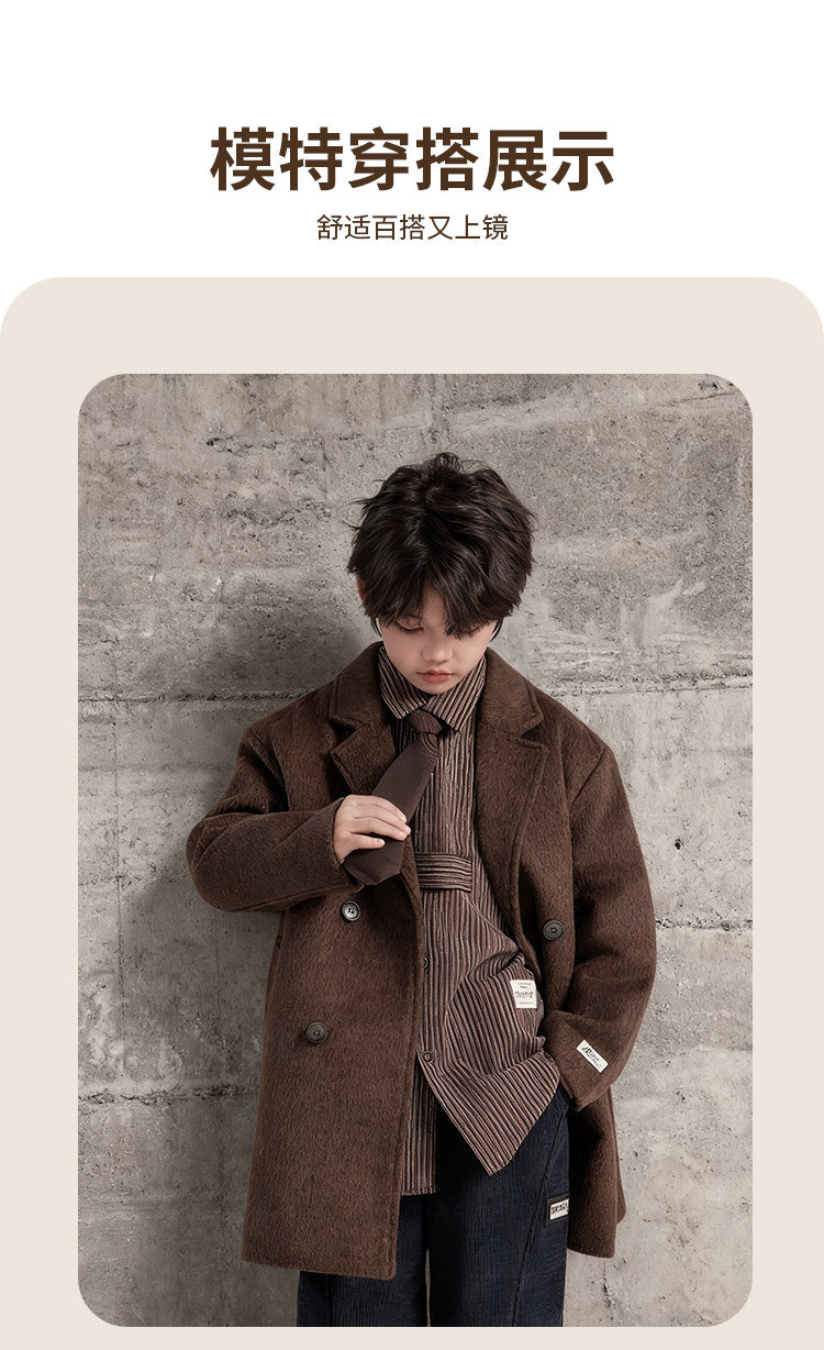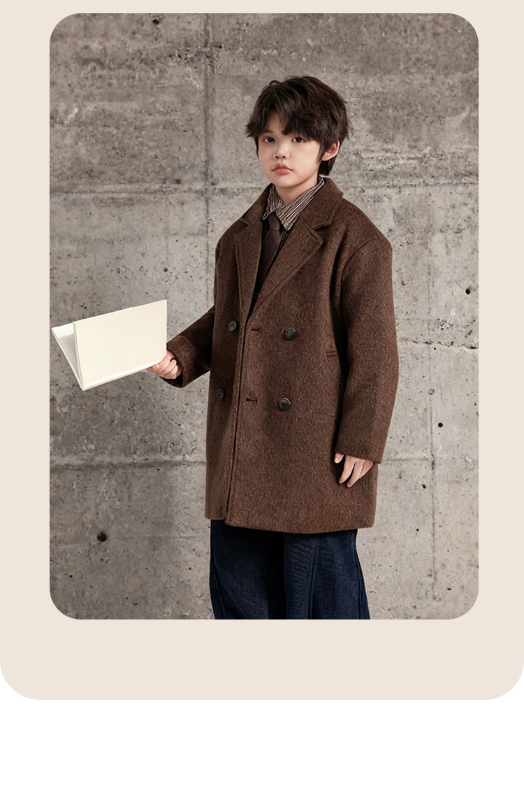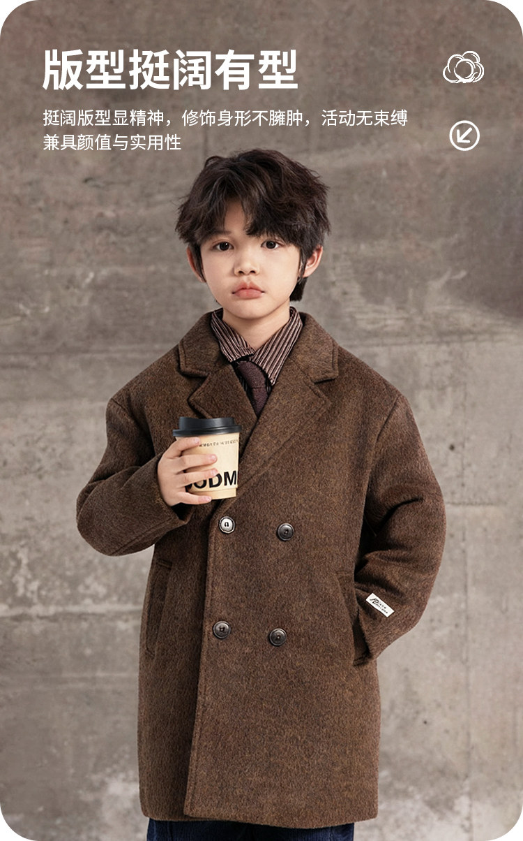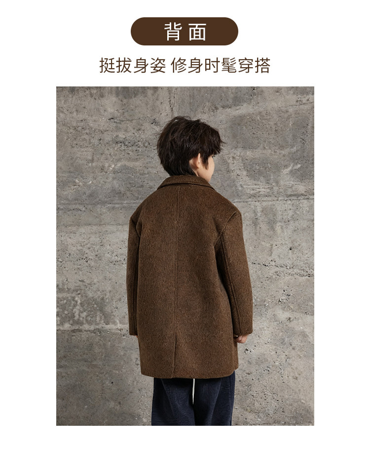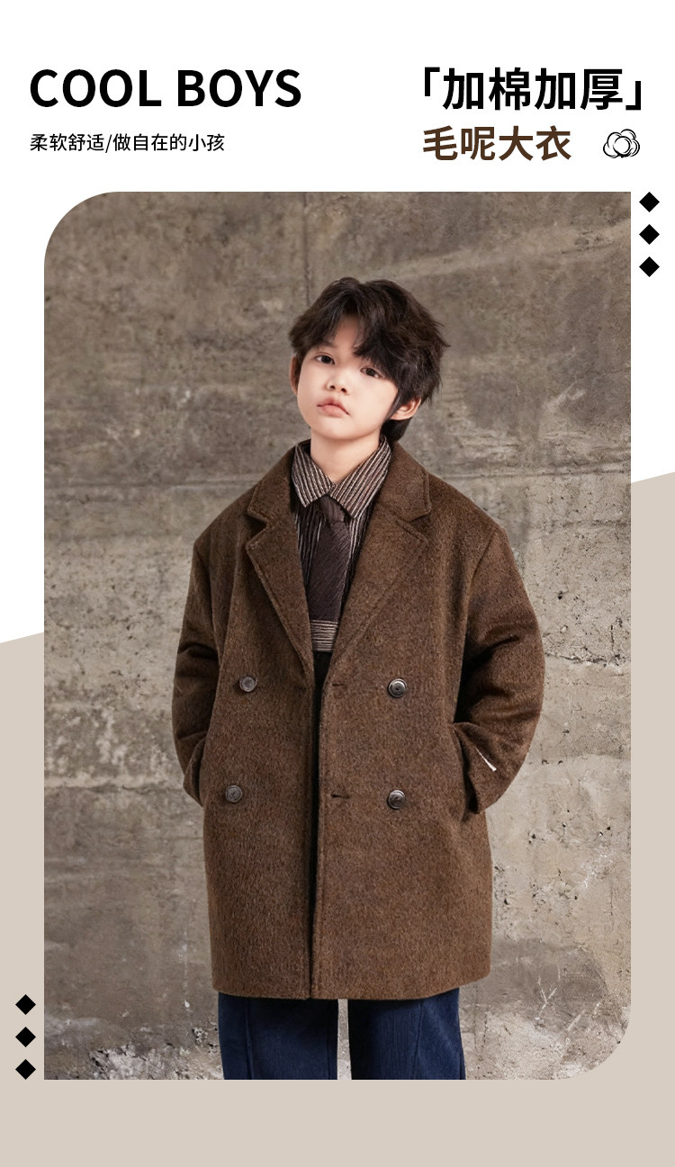 Boys' Autumn and Winter Woolen Coat 2025 New Style Children's Mid-Length Padded Thickened Coat for Older Kids Winter Fashion