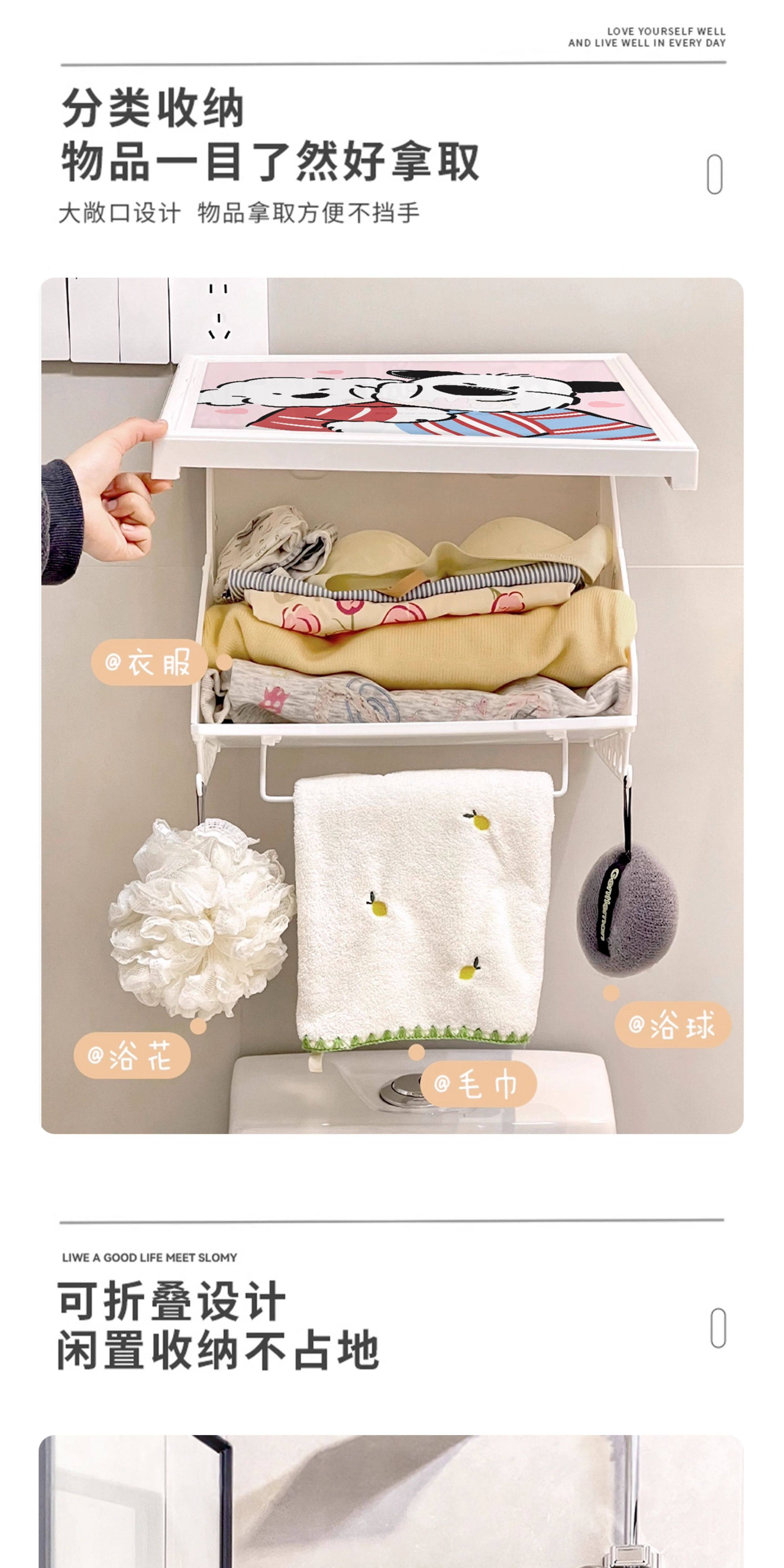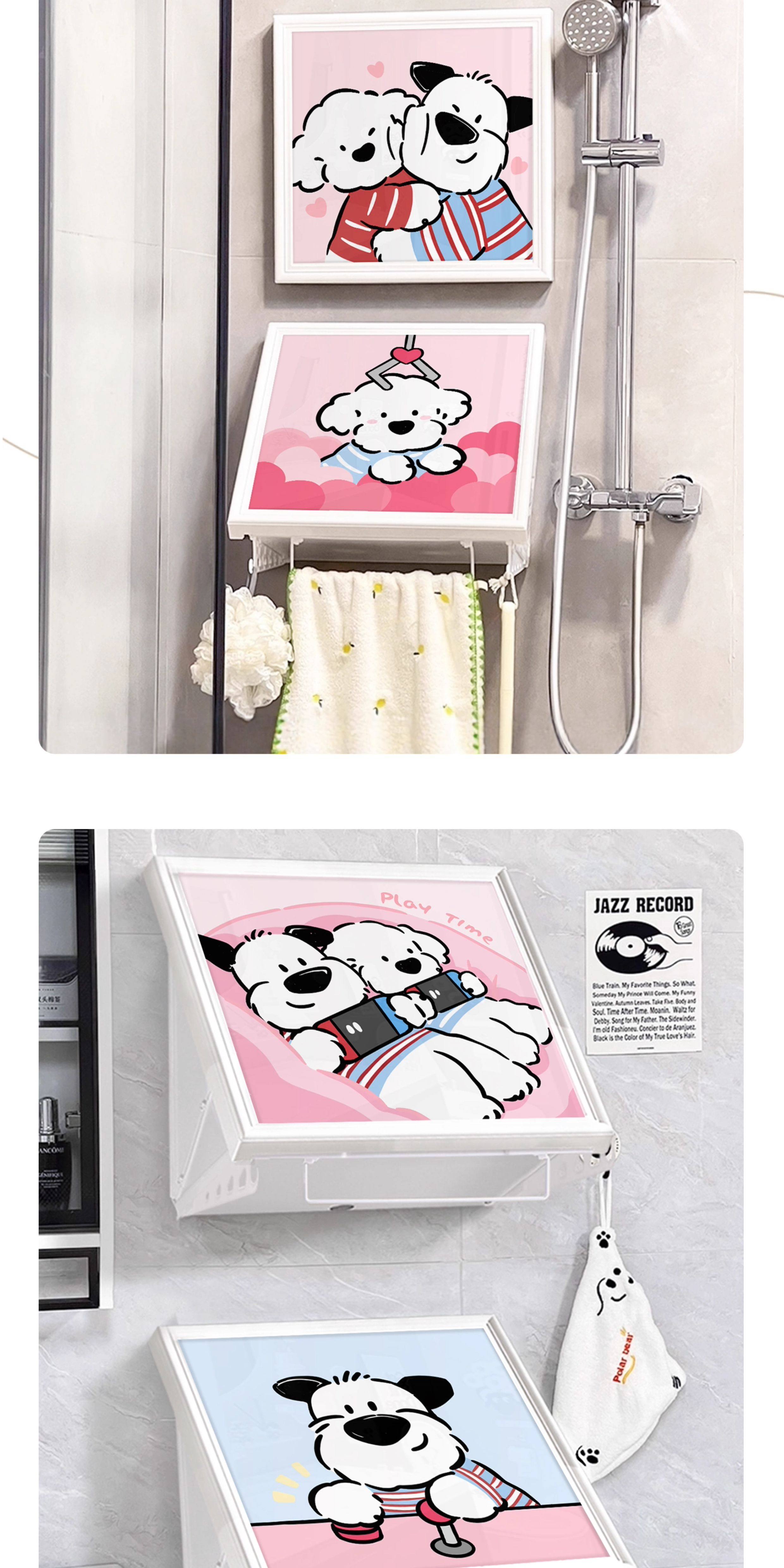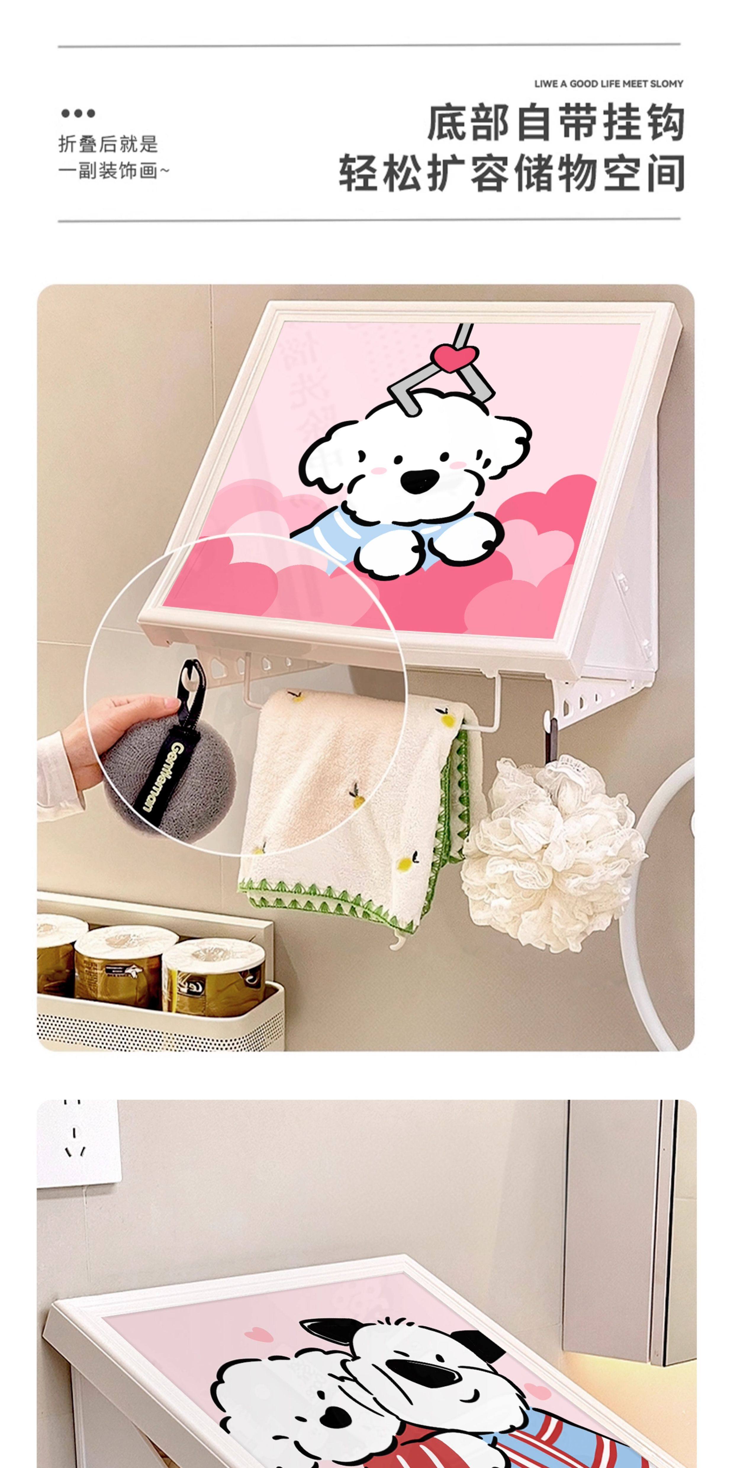 Cute Puppy Bathroom Wall-Mounted Storage Box, Bathroom Shower Clothes Organizer, Toilet Waterproof Foldable Storage Rack