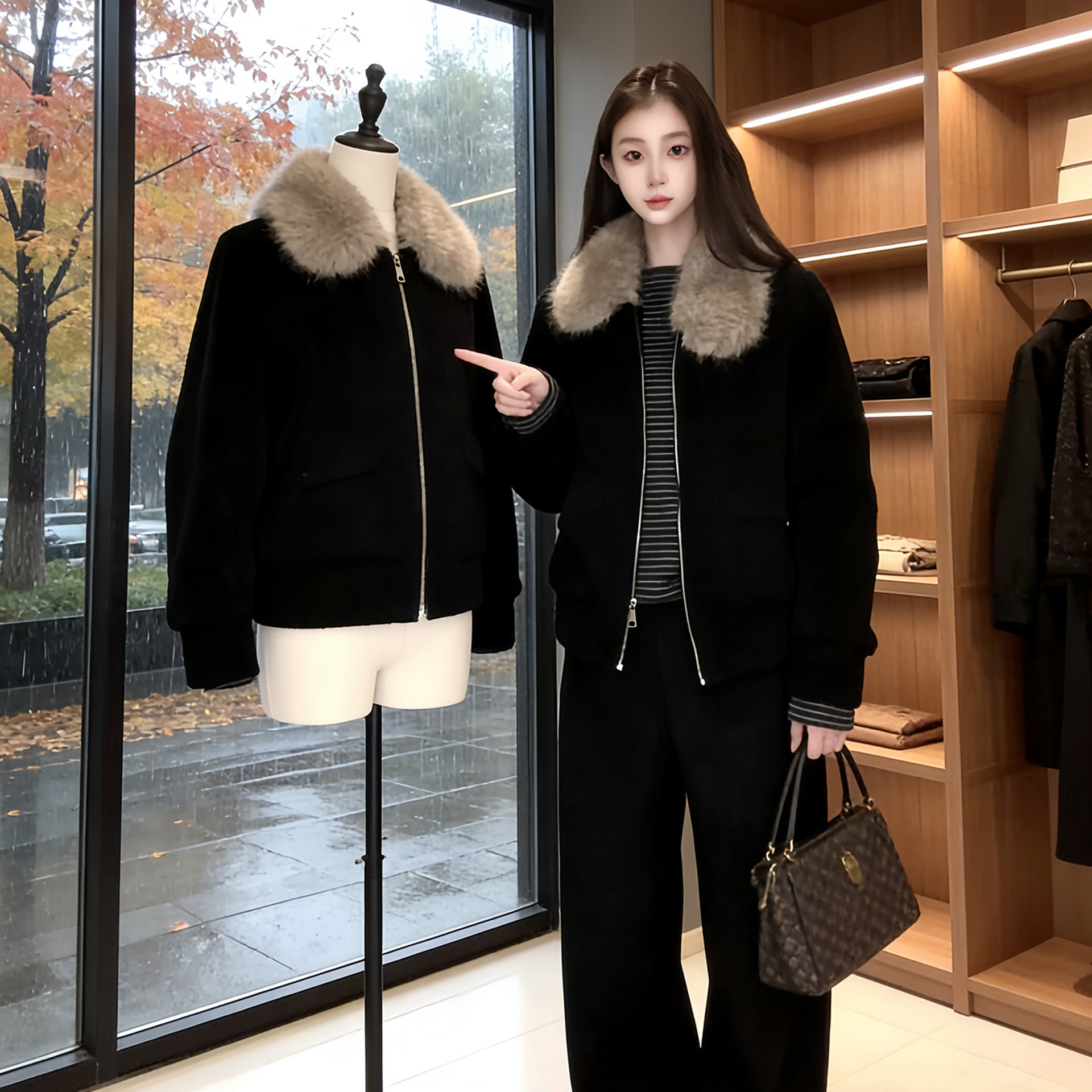 Plus-Size Retro Fur Collar Warm Short Coat for Women, Autumn and Winter Slimming Zipper Jacket, Niche Faux Fur Integrated Top