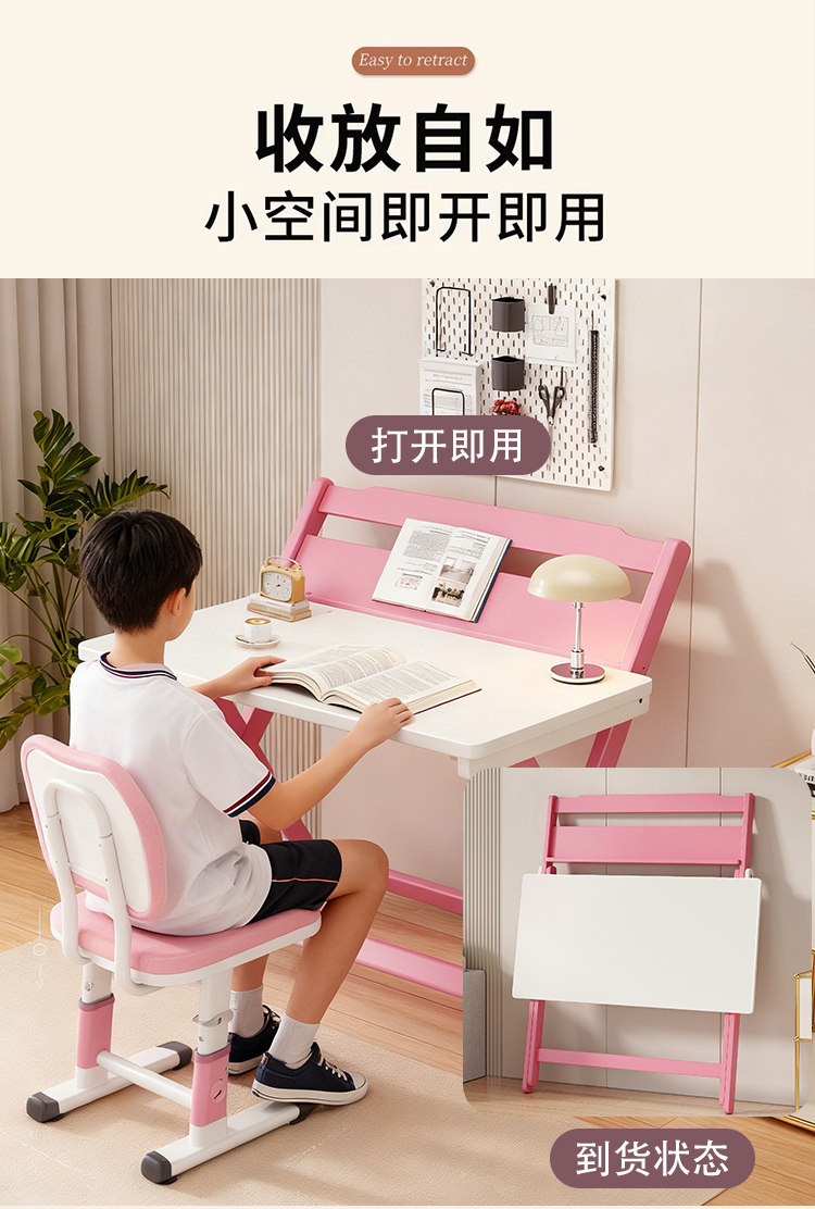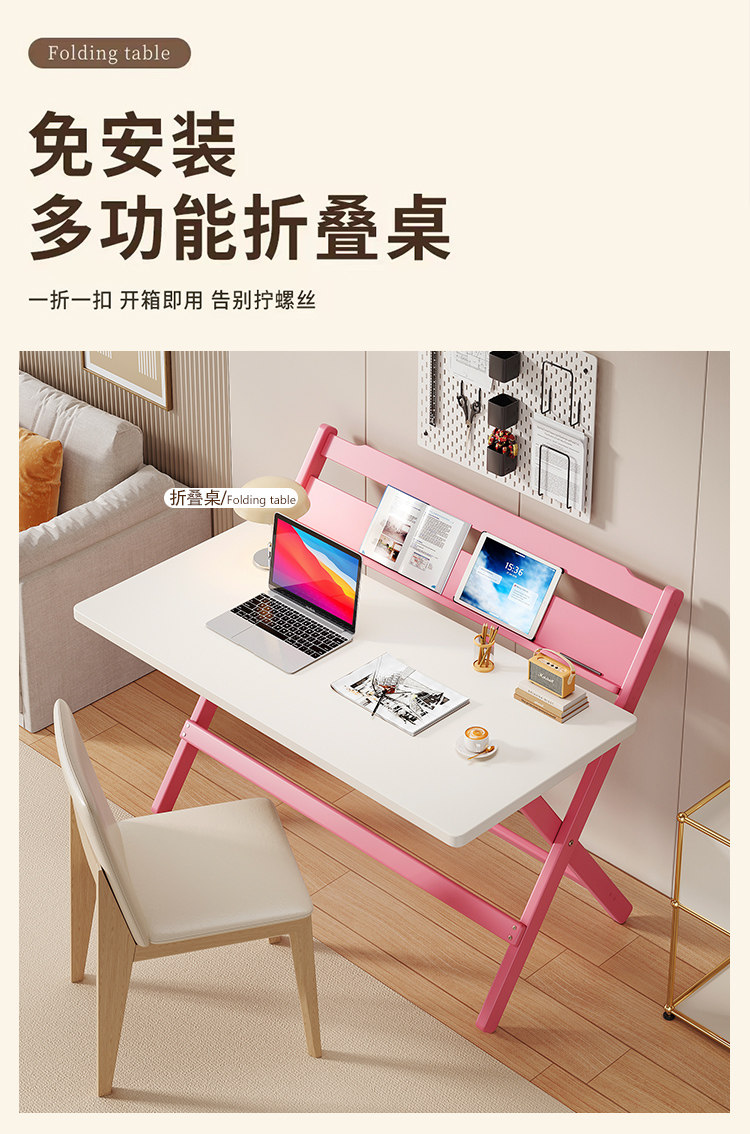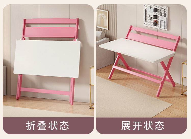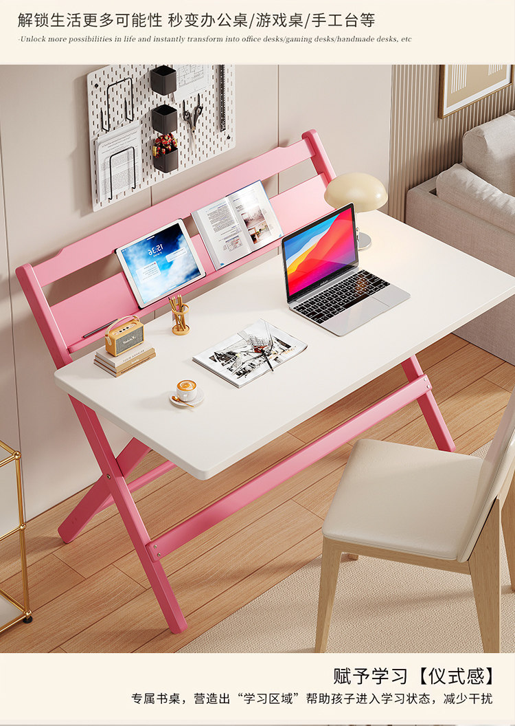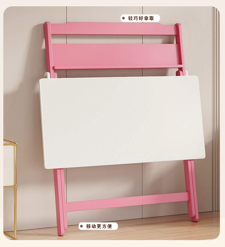 Simple Modern Children's Folding Table Study Table and Chair White Pink Desk Primary School Student Writing Desk Home All-In-One