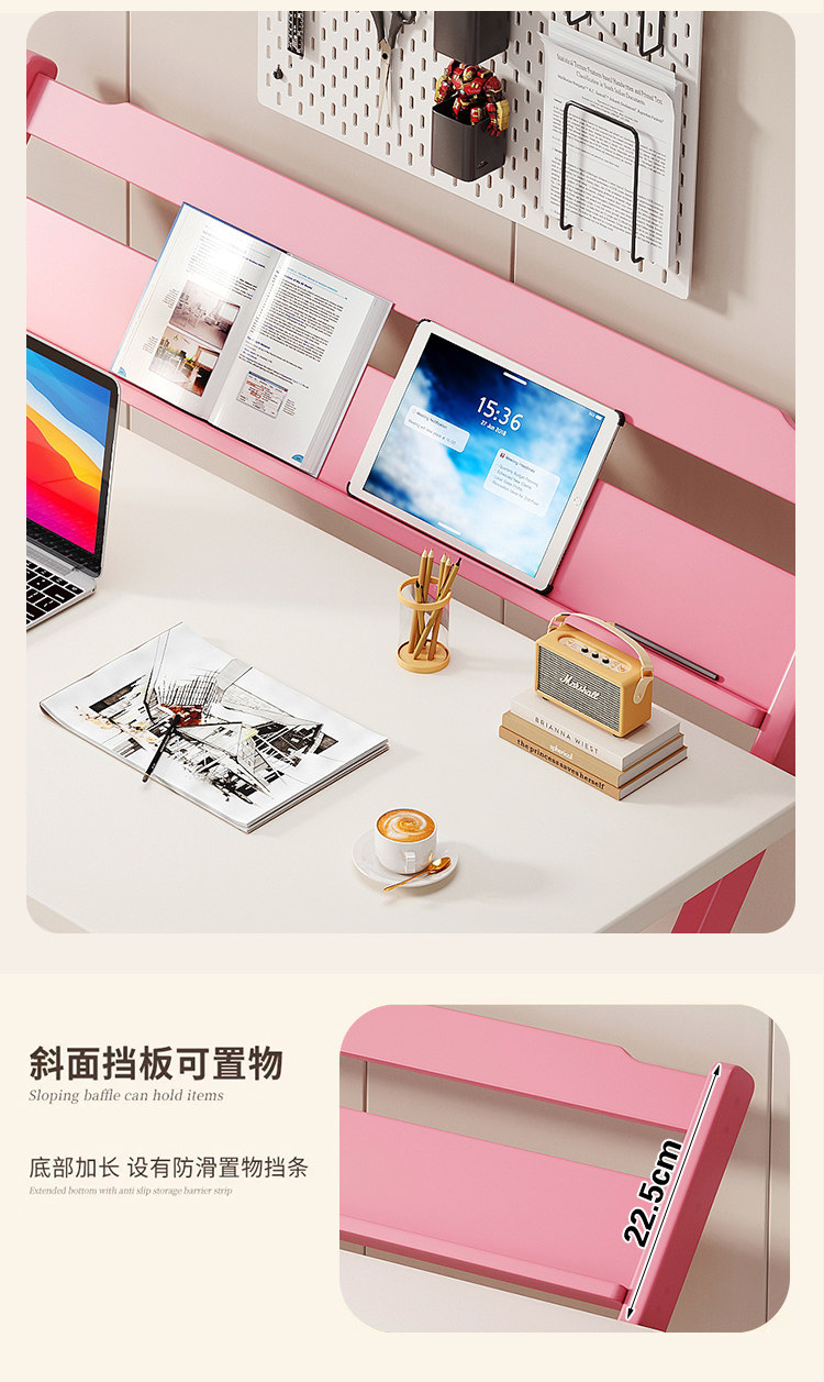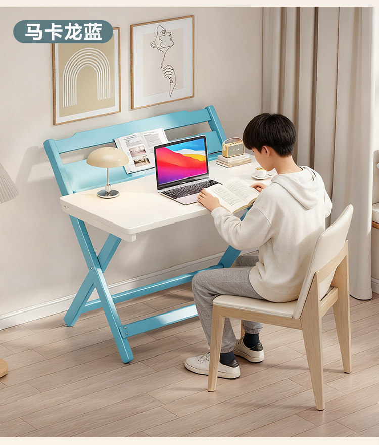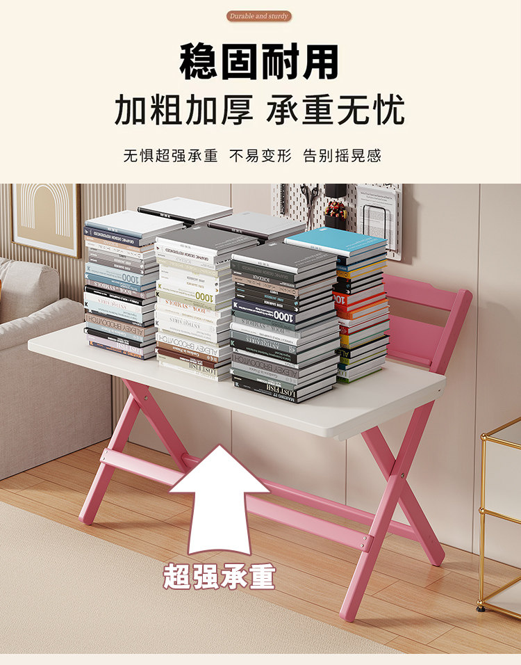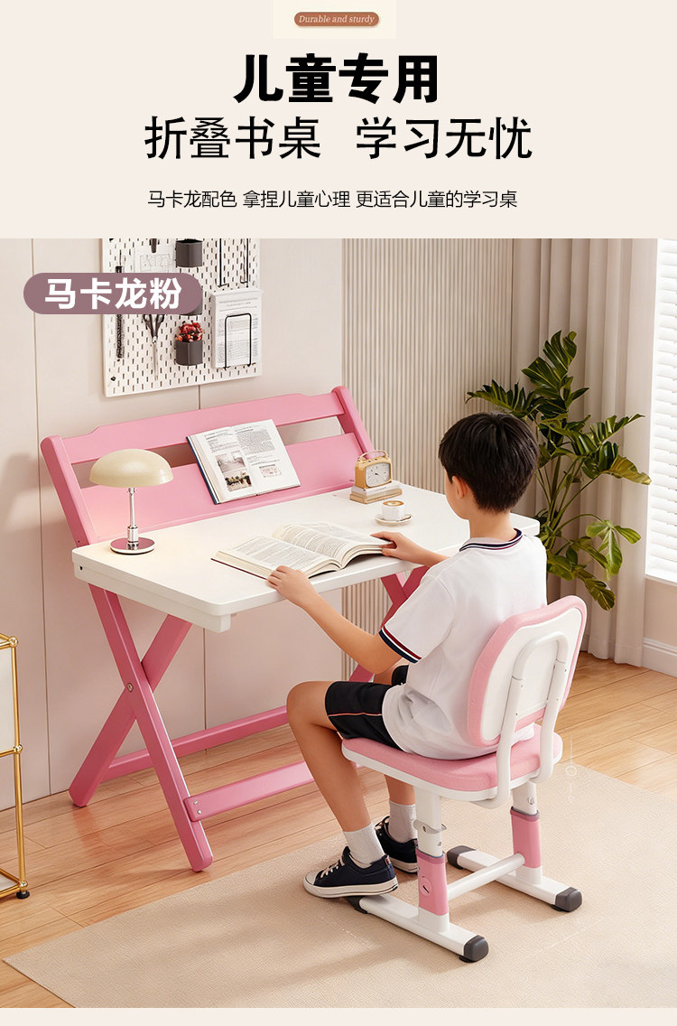 Simple Modern Children's Folding Table Study Table and Chair White Pink Desk Primary School Student Writing Desk Home All-In-One