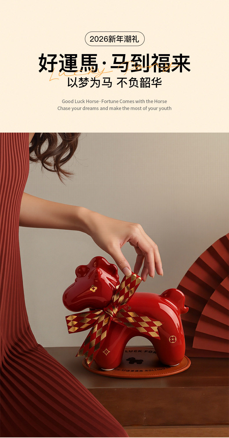 Light Luxury Ornaments 2026 Year of the Horse Zodiac Horse Mascot Ornaments New Year Gifts Annual Party Souvenirs Decorative Ornaments