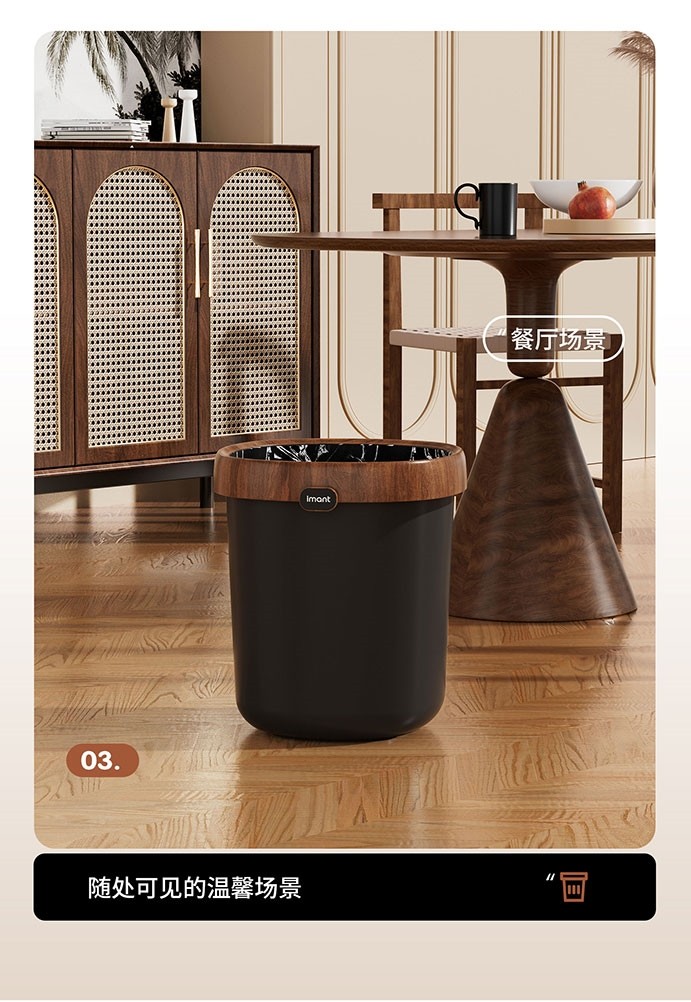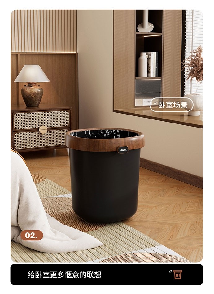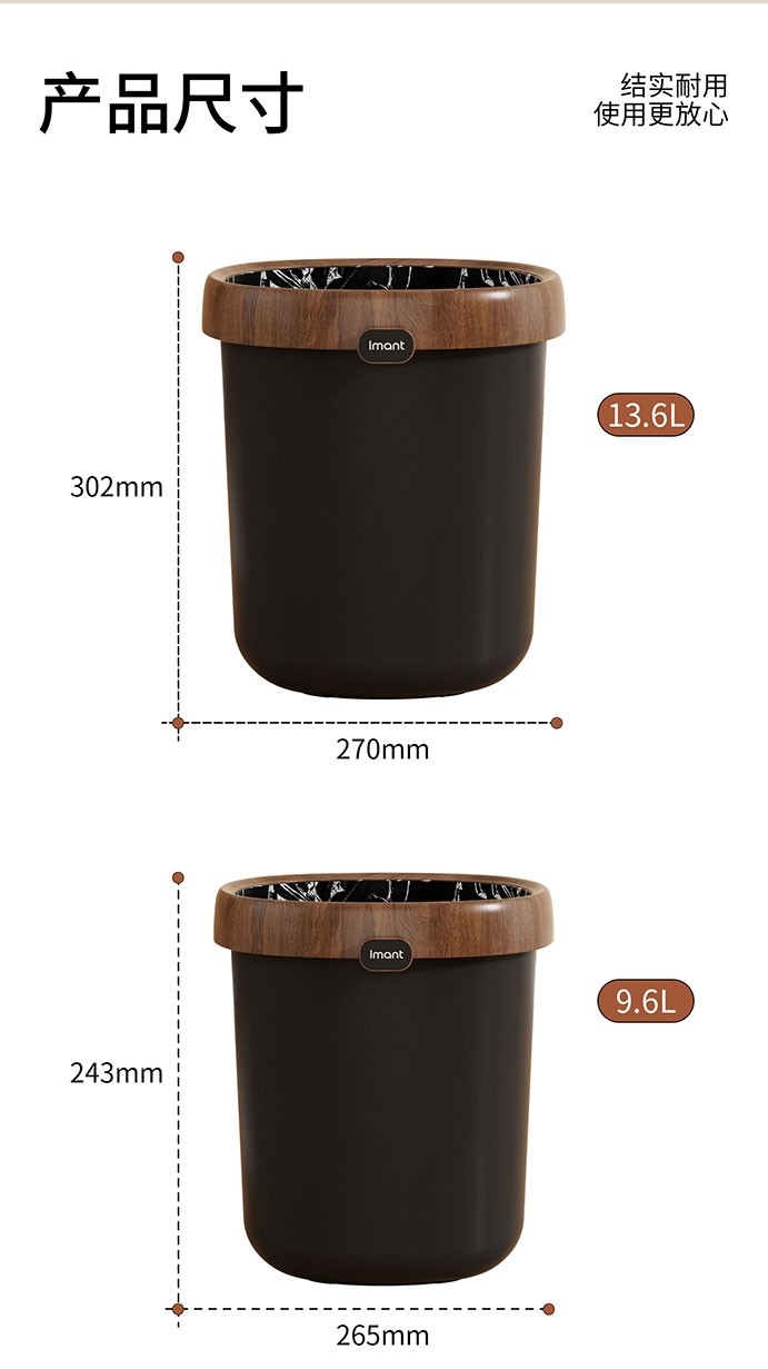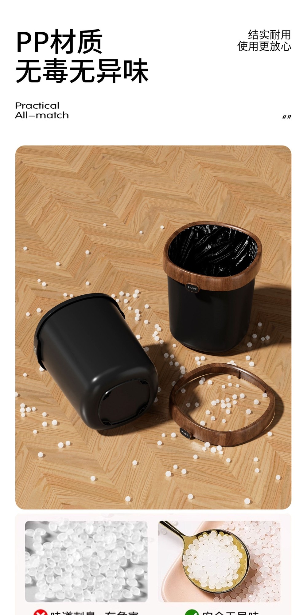Japanese Imported Trash Can for Home Use, Luxury Style for Living Room, High-End with Fixed Ring, High Aesthetic Value for Bedroom, Large Capacity Wastebasket