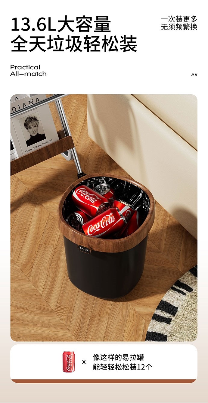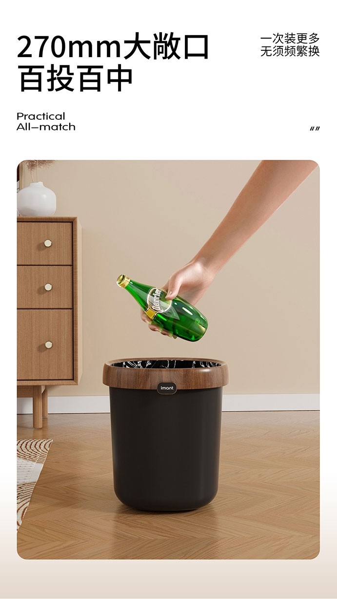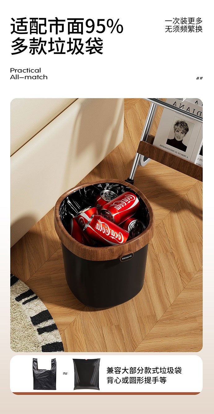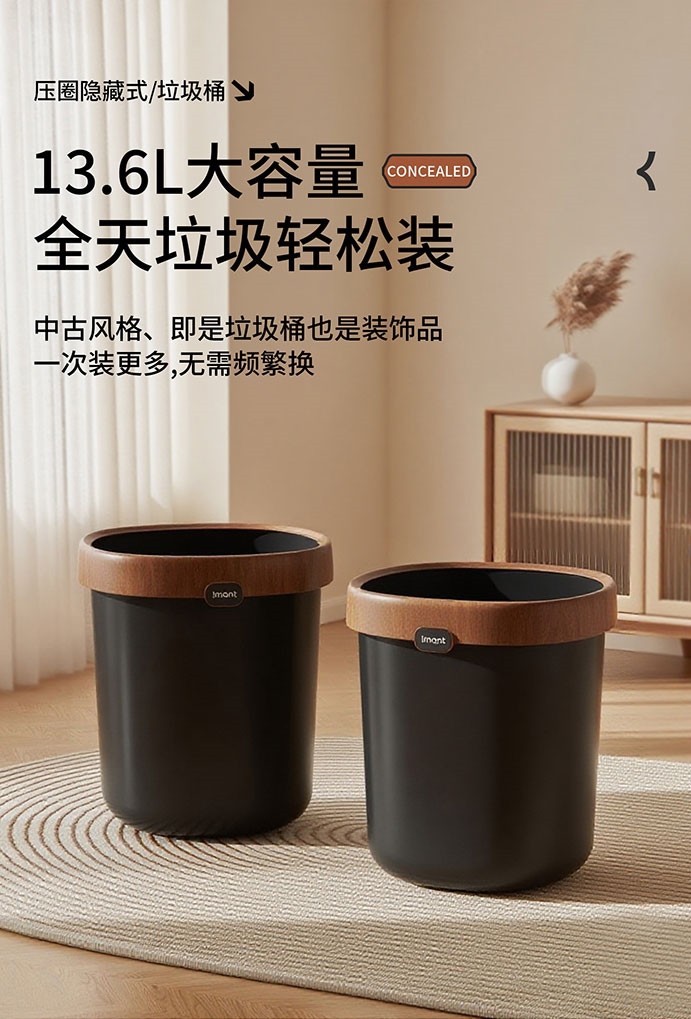 Japanese Imported Trash Can for Home Use, Luxury Style for Living Room, High-End with Fixed Ring, High Aesthetic Value for Bedroom, Large Capacity Wastebasket