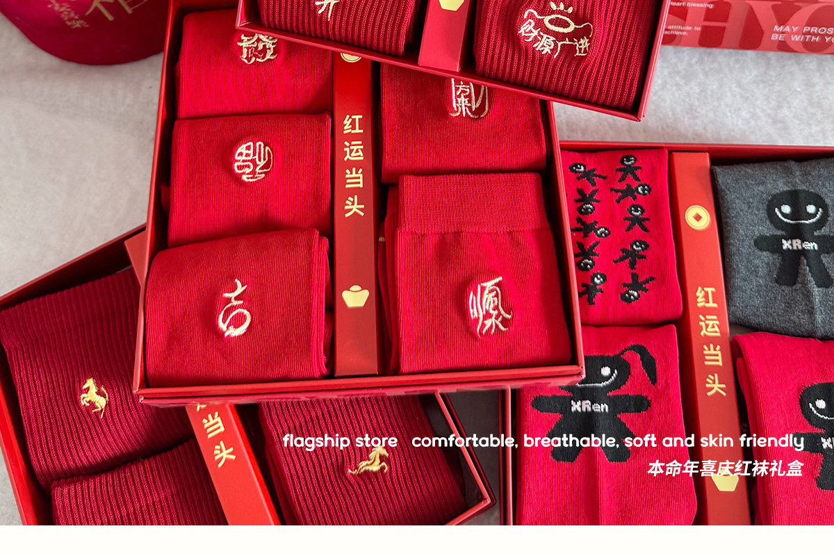 Sort by color Year of the Horse Red Sock Short Gift Box,Year of the Horse Red Sox Mid-tube Gift Box,Year of the Horse Good Luck and Horse Gift Box,Year of the Horse, step by step gift box,Year of the Horse Wealth Gift Box from All Directions