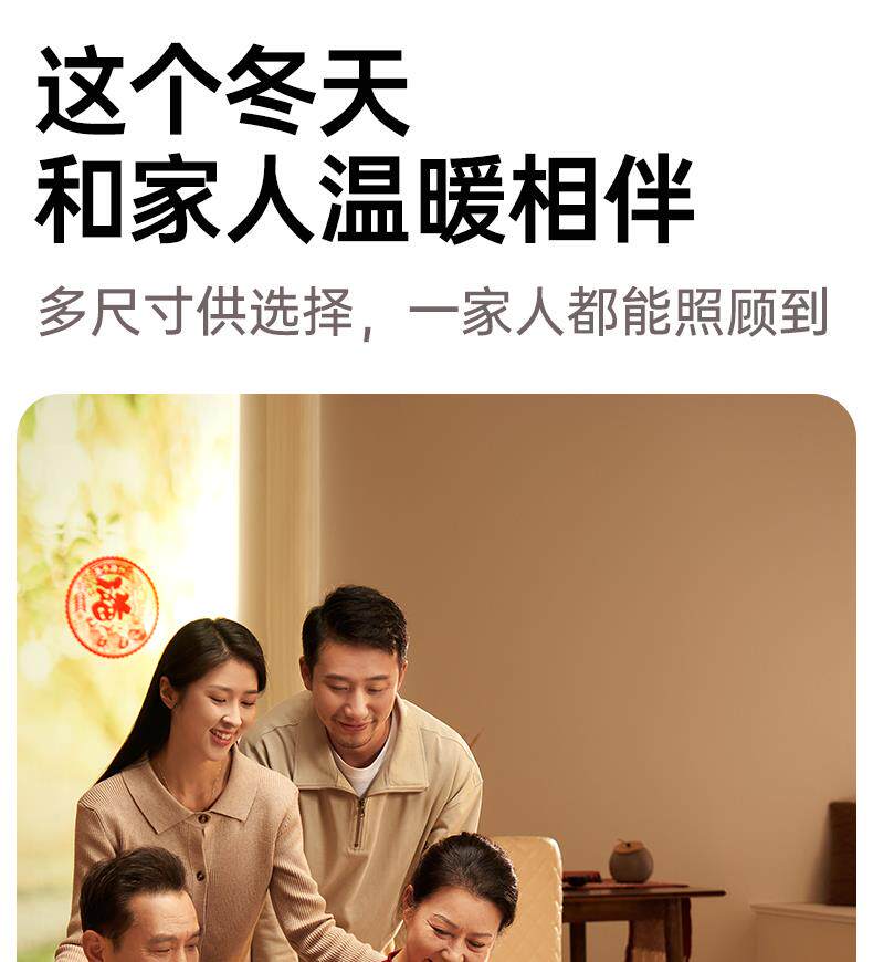 Sort by color Single classic model 38x32cm (overheating protection/intelligent temperature control),Single large size 45x32cm (overheating protection/intelligent temperature control),Double classic model 55x32cm (overheating protection/intelligent temperature control),Three-person classic model 70x32cm (overheating protection/intelligent temperature control),Four-person classic model 100x40cm (overheating protection + dual-switch intelligent temperature control),Five-person classic model 120x40cm (overheating protection + dual-switch intelligent temperature control),Special price for single person 34x30cm (manual temperature control/not recommended),Large model for three/four people 80x40cm (overheating protection/intelligent temperature control),Single retro model 45x32cm (overheating protection/intelligent temperature control),Double retro model 55x32cm (overheating protection/intelligent temperature control),Single solid wood model 45x32cm (overheating protection/intelligent temperature control),Double solid wood model 55x32cm (overheating protection/intelligent temperature control),Three/four person solid wood enlarged model 80x40cm (overheating protection/intelligent temperature control),Solid wood model for four people 100x40cm (overheating protection + double switch intelligent temperature control),Five-person solid wood model 120x40cm (overheating protection + dual-switch intelligent temperature control),Extra long solid wood model 150x40cm (overheating protection + double switch intelligent temperature control)