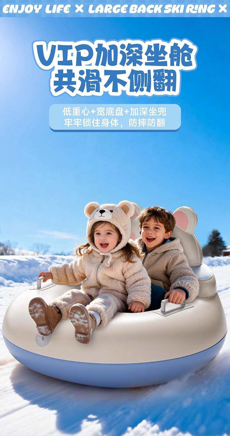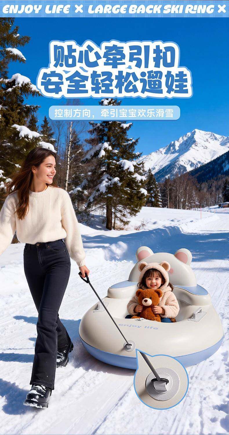 2025 new adult and children backrest ski circle portable inflatable parent-child snow ski single board thickened and wear-resistant