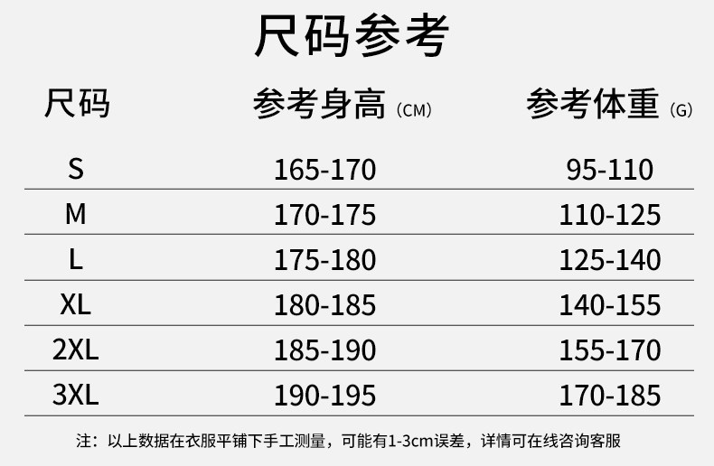 China (cm) 165 / 88-90 170 / 96-98 175 / 108-110 180 / 118-122 185 / 126-130