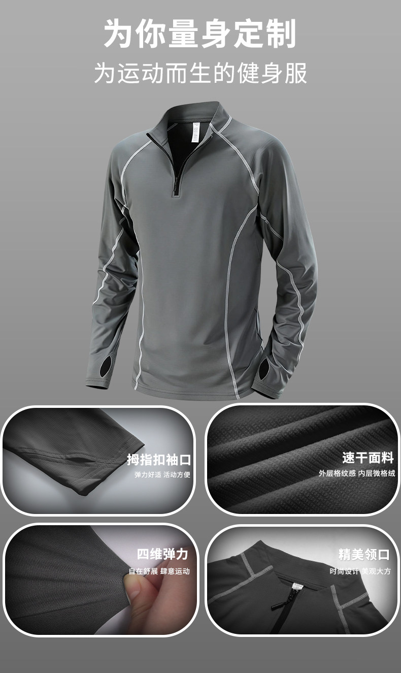 Quick-Drying Long-Sleeve Men's Sports T-Shirt Running Half-Zip Top Fitness Training Cycling Clothing Winter Base Layer