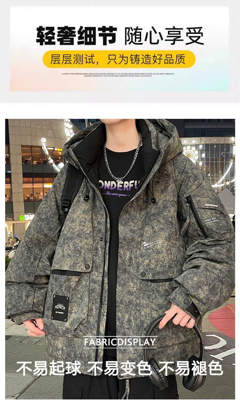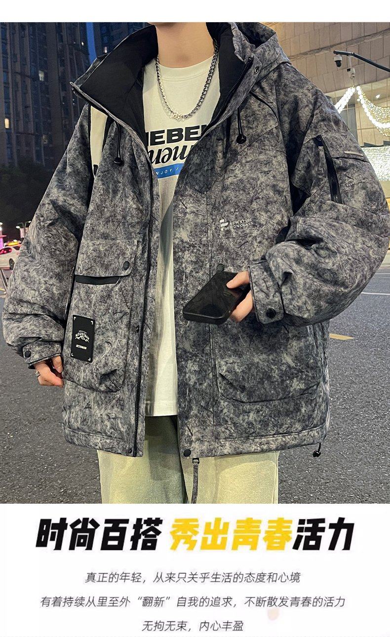 Down jacket male teenagers winter 2025 new high-end workwear jacket male students hooded warm and cold-proof clothing