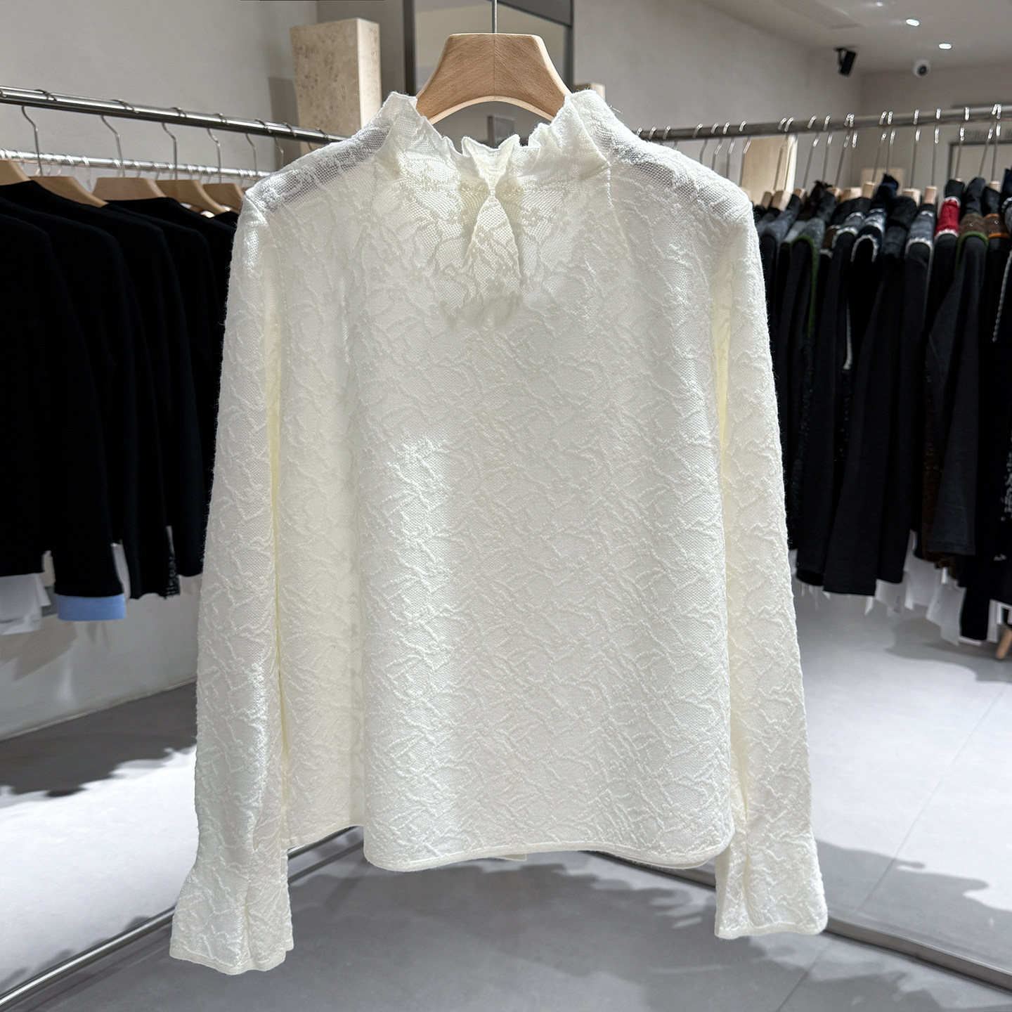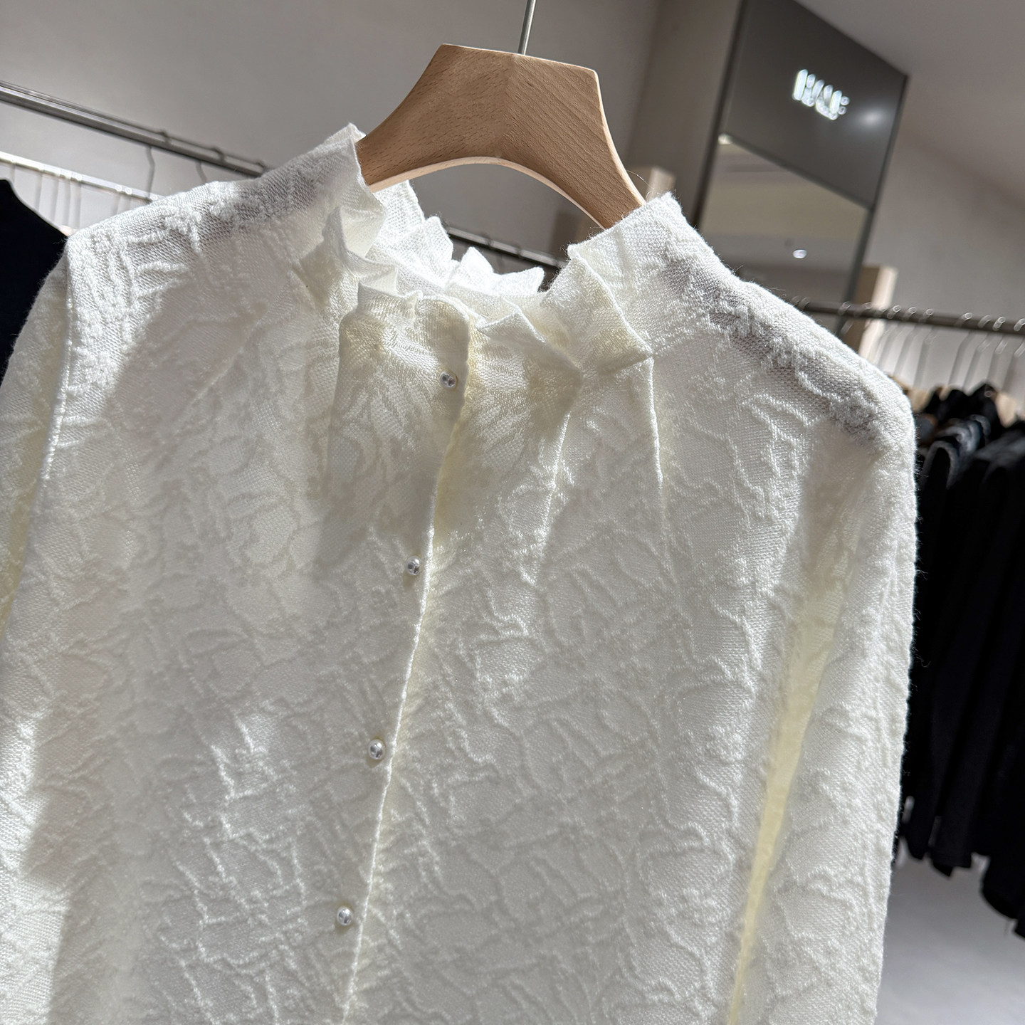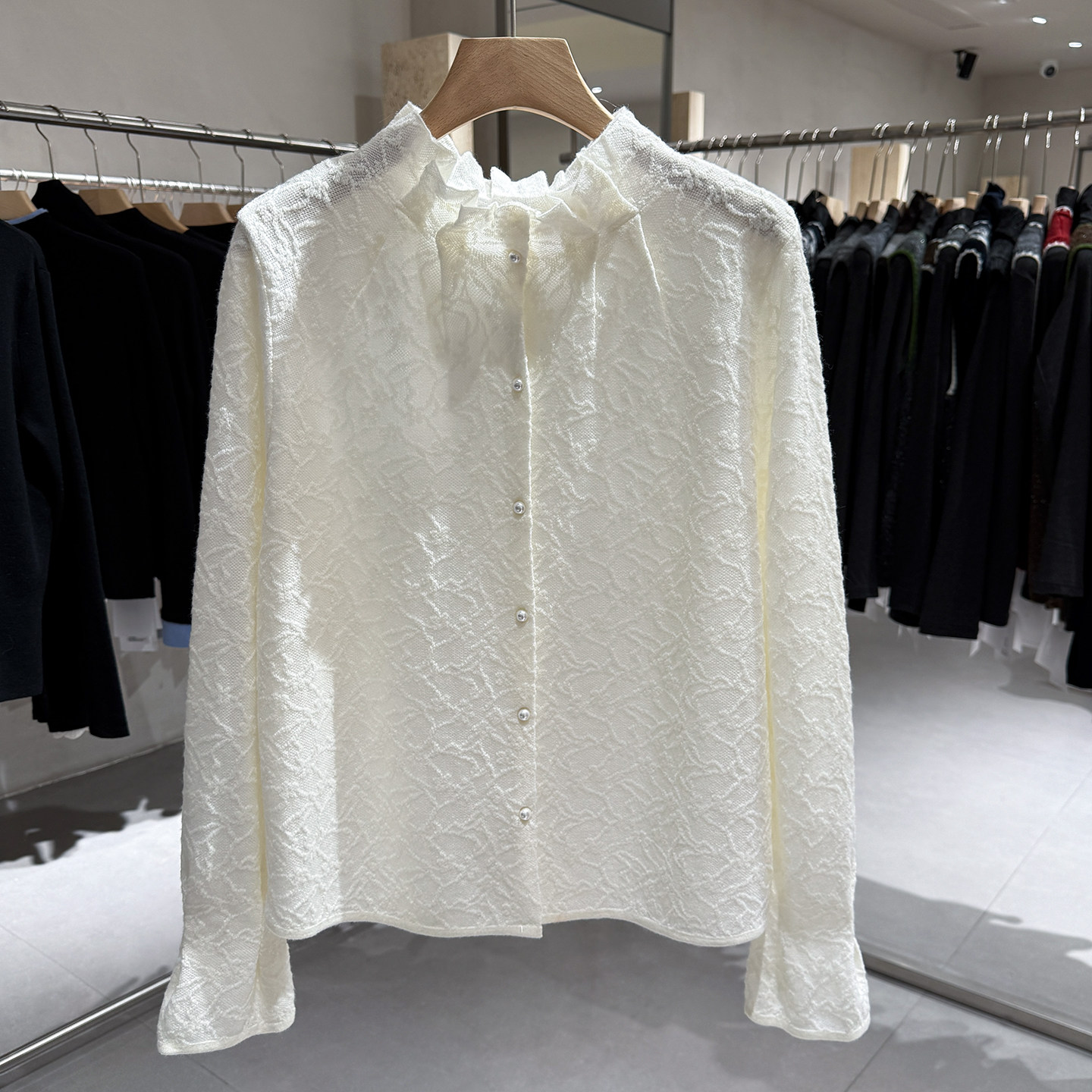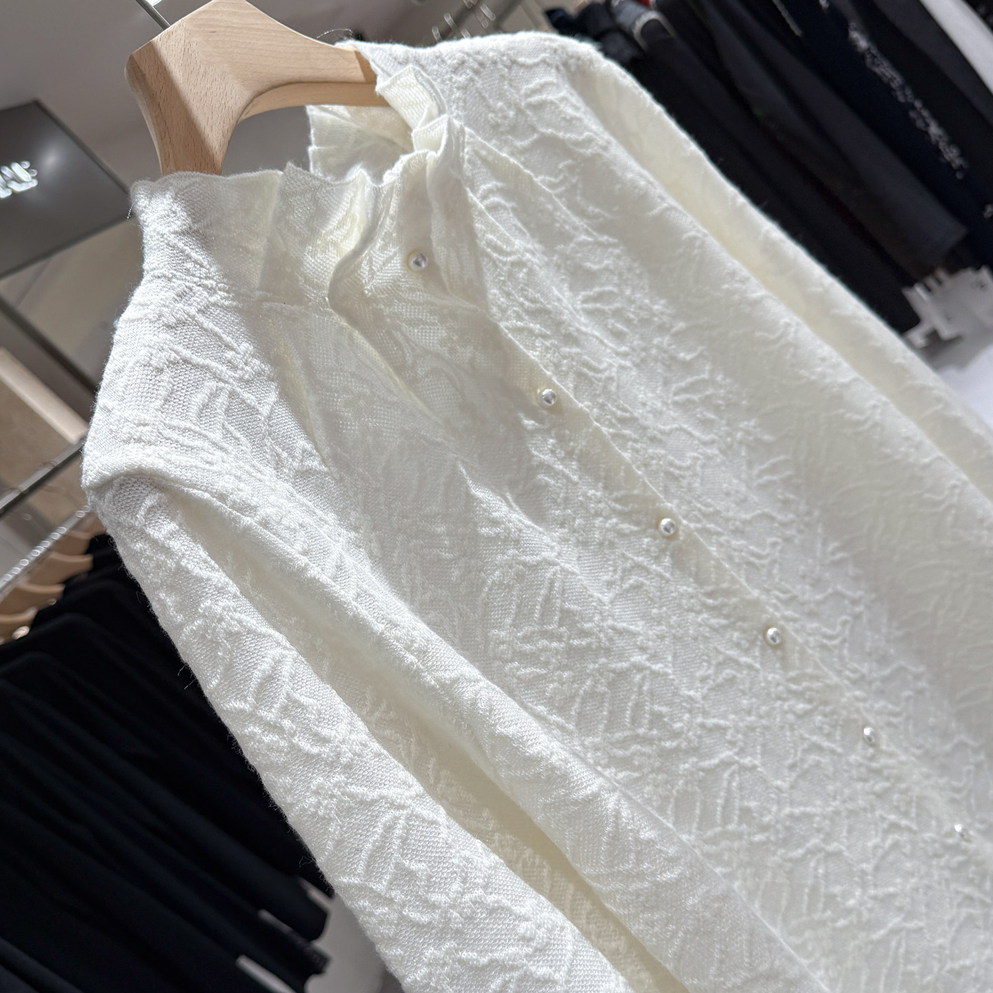 Wear it inside! Korean Dongdaemun pleated high-waist pearl button sweet Tencel wool knitted cardigan bottoming shirt