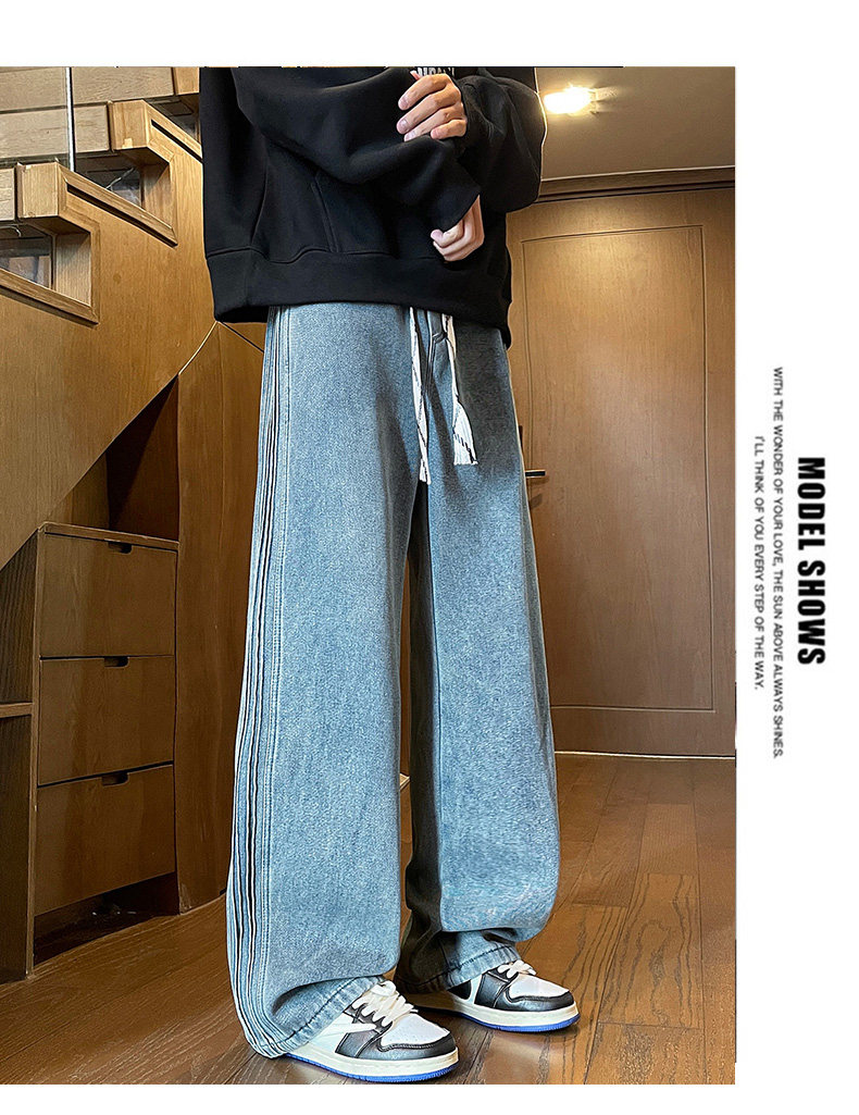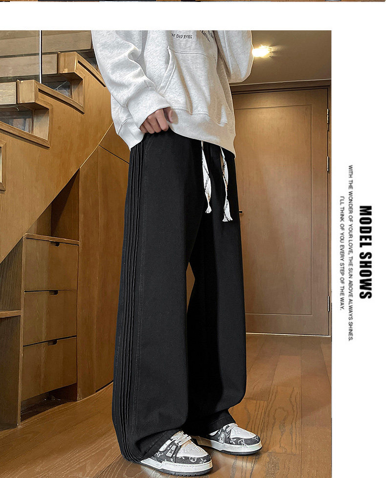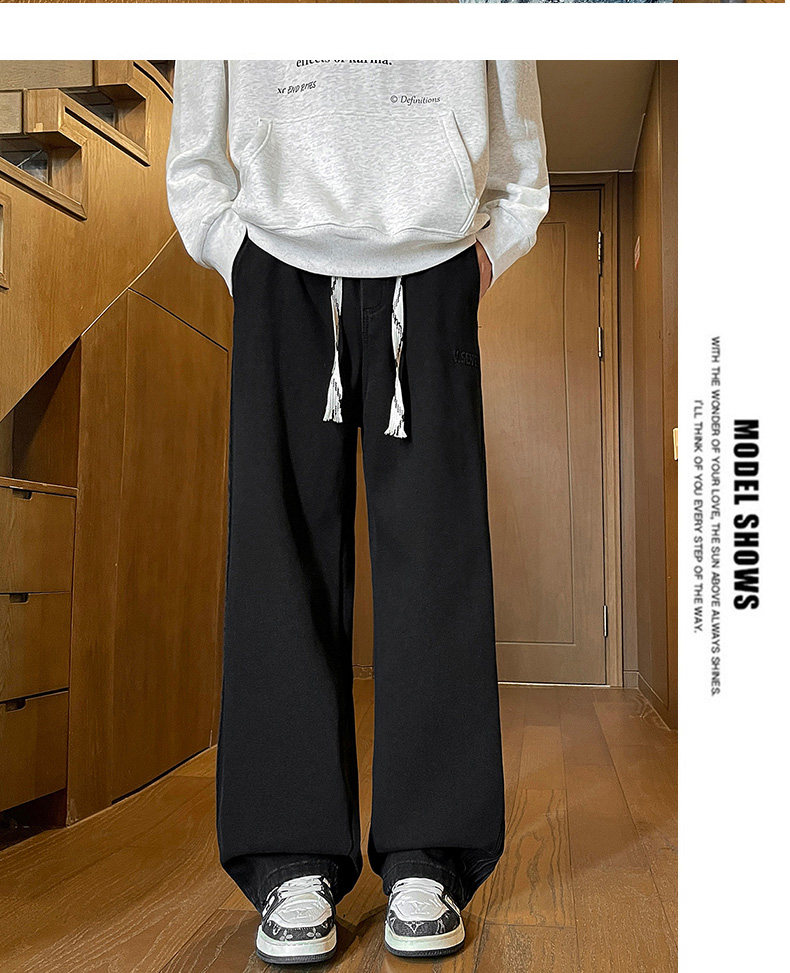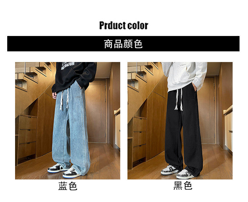 American-Style Fleece-Lined Thickened Jeans for Men, Autumn and Winter Vintage Curved Casual Pants, Loose Wide-Leg Pants for Teenagers
