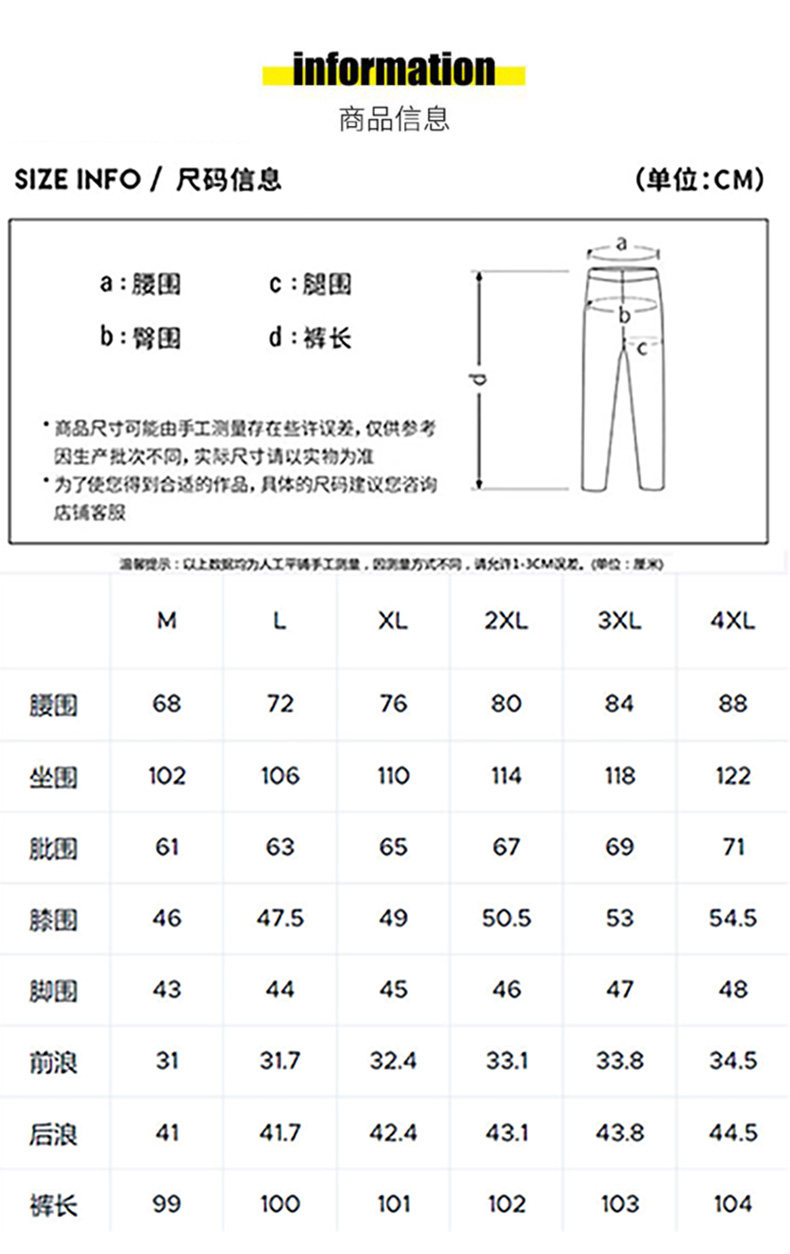 Outseam (cm) 99 cm 101.5 cm 104 cm 106.5 cm 109 cm