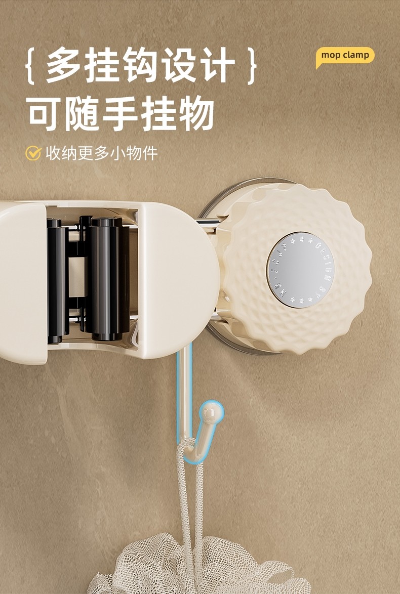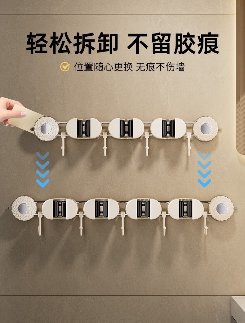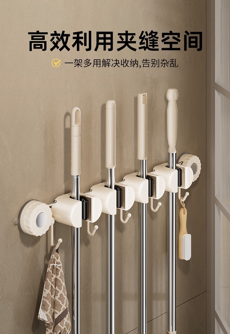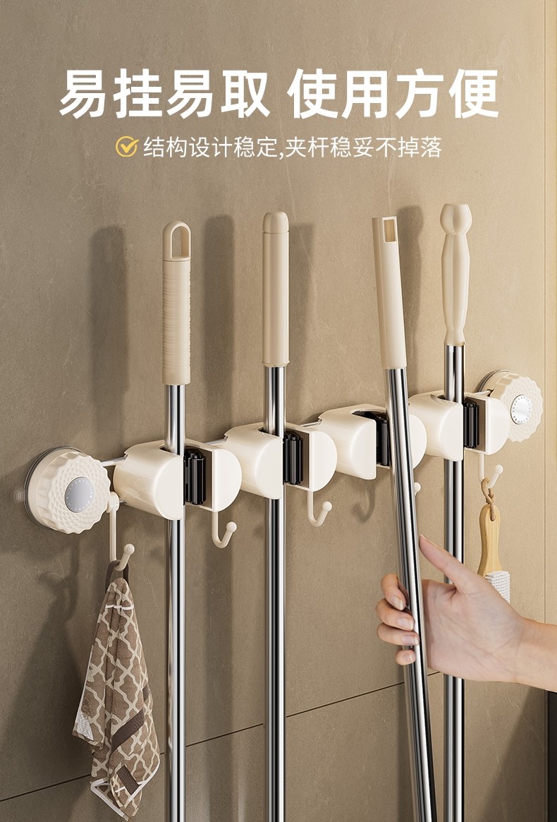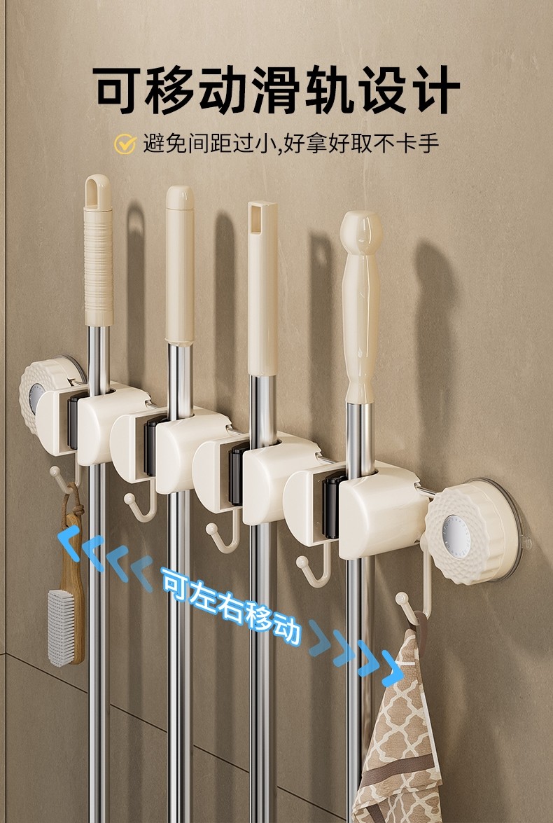 Japanese Imported Suction Cup Mop Holder, Wall-Mounted Mop Clip, Multifunctional Sliding Broom Hook, Bathroom Storage Rack