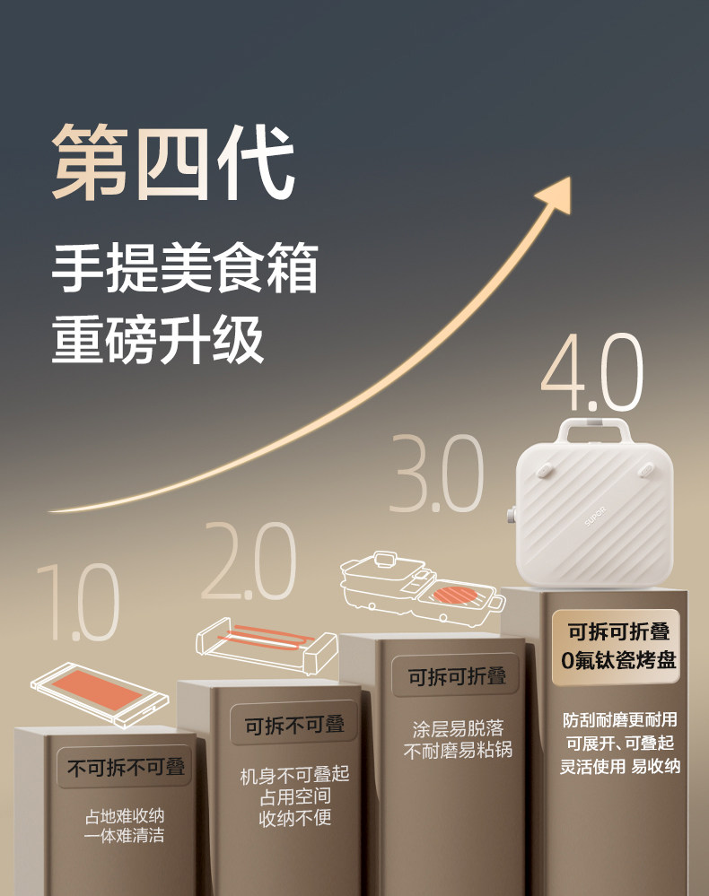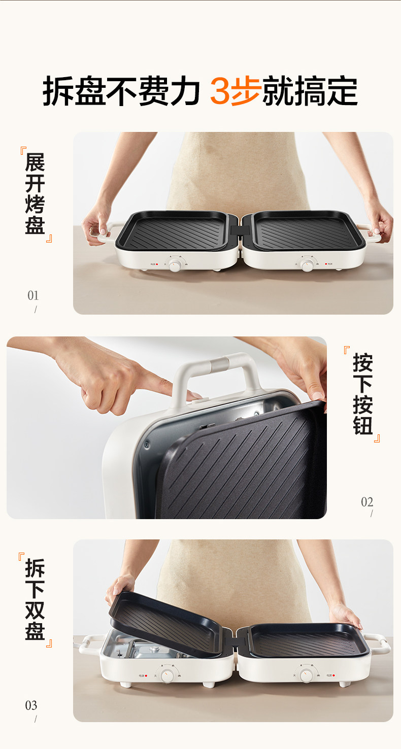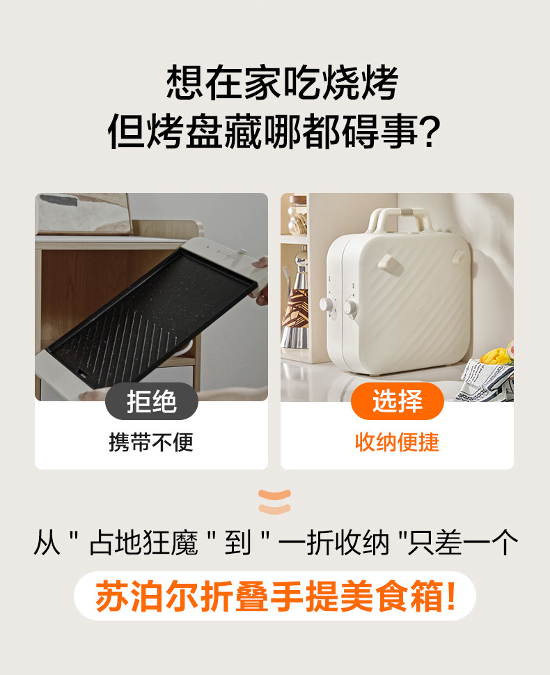 Supor Electric Grill Pan for Home Use, Non-Stick Barbecue Pot, Foldable Multifunctional Electric Barbecue Grill, Portable Barbecue Plate, Stackable Pot