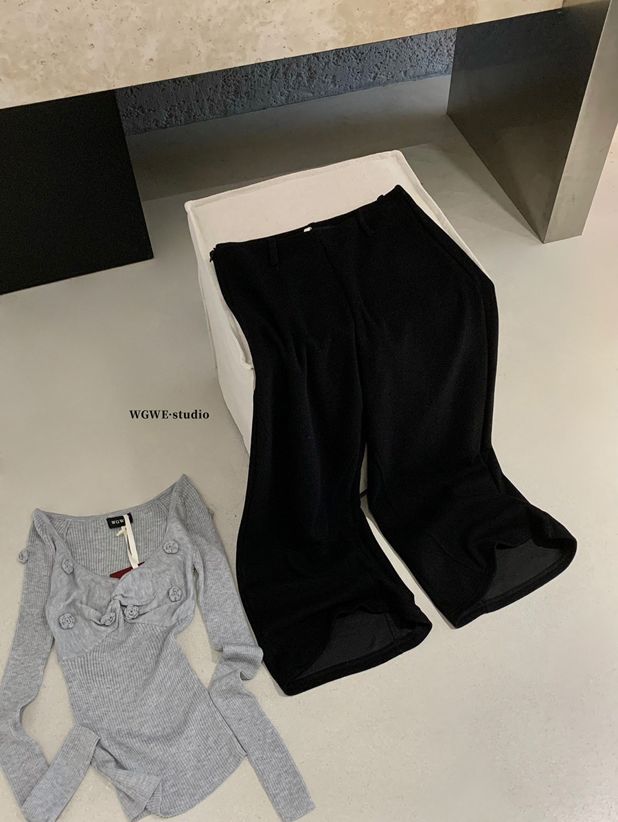 Lin Xiaxia Soft and Smooth Silver Fox Velvet Flared Casual Pants with a Draping Effect and Wide Legs