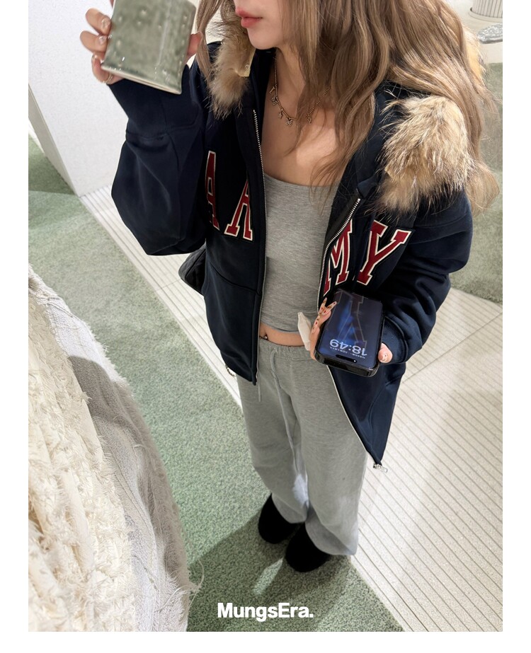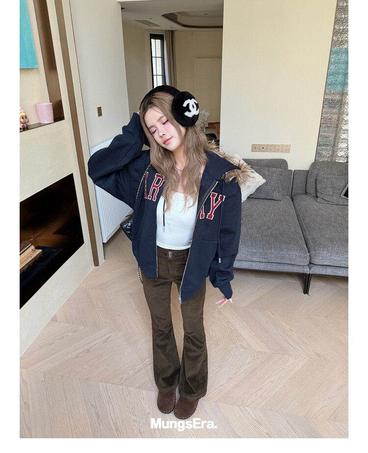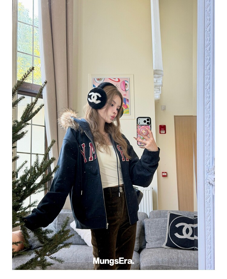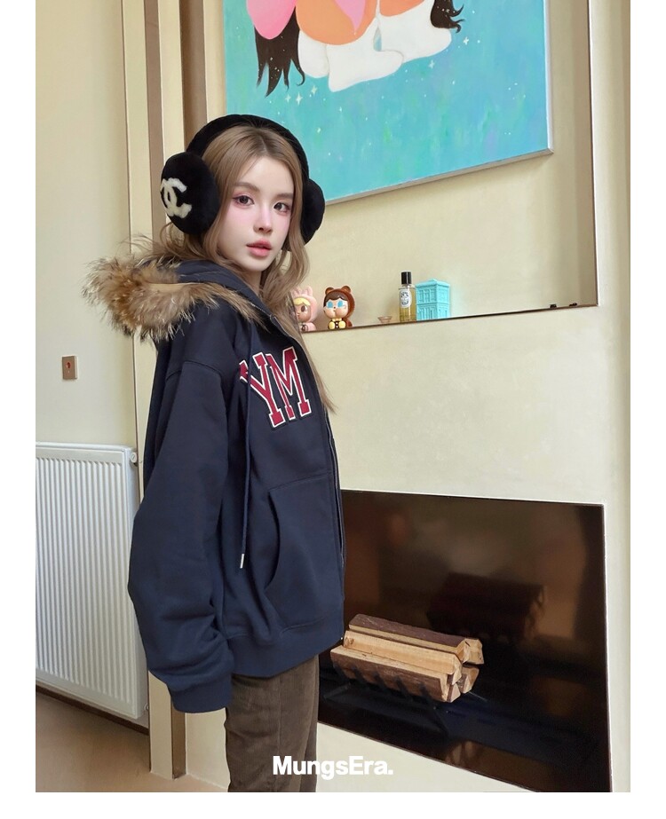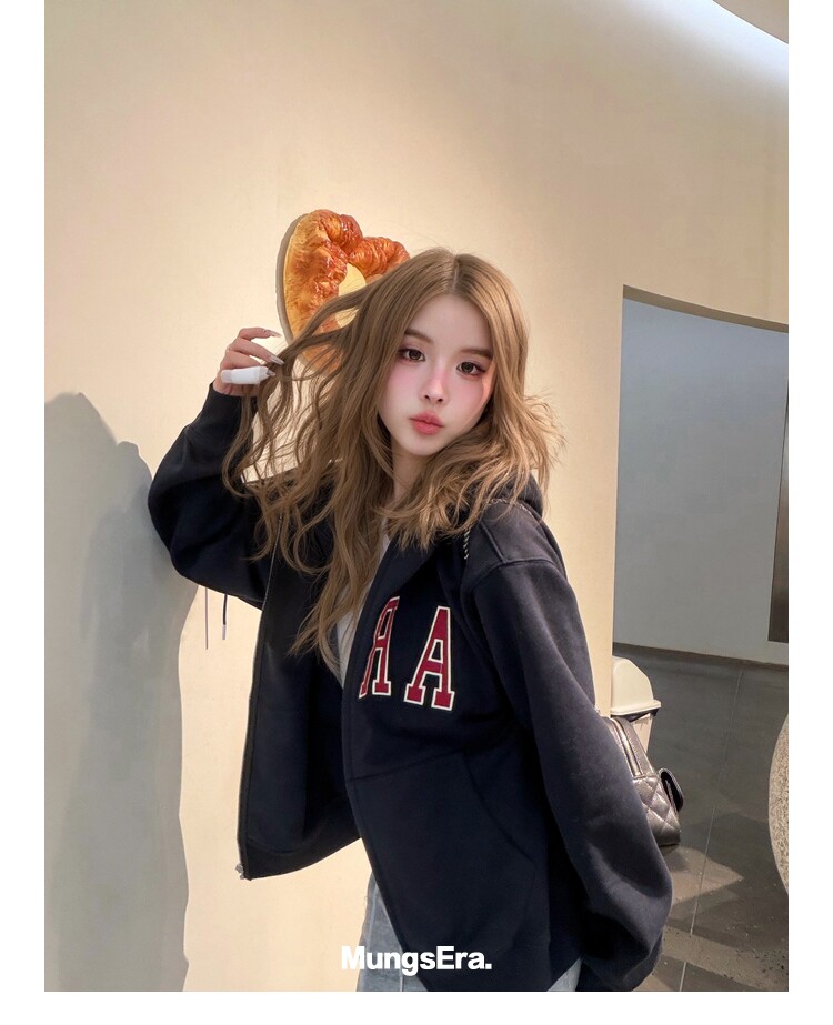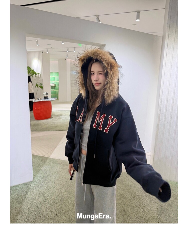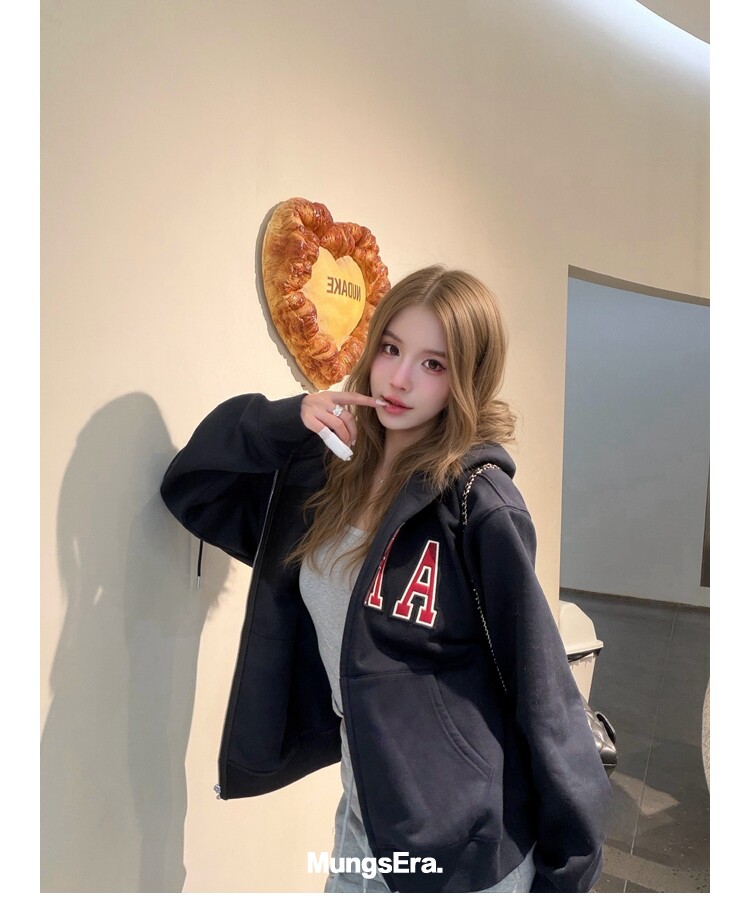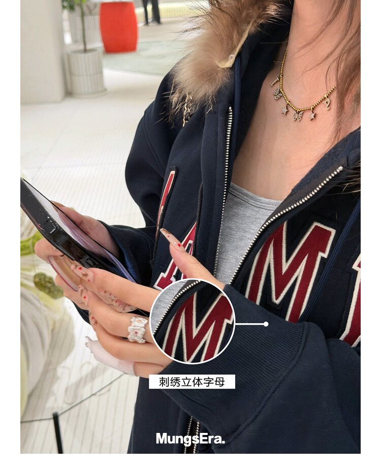 Mungsera'American Special Edition' Navy Blue Thick Embroidered Letter Sweatshirt Jacket