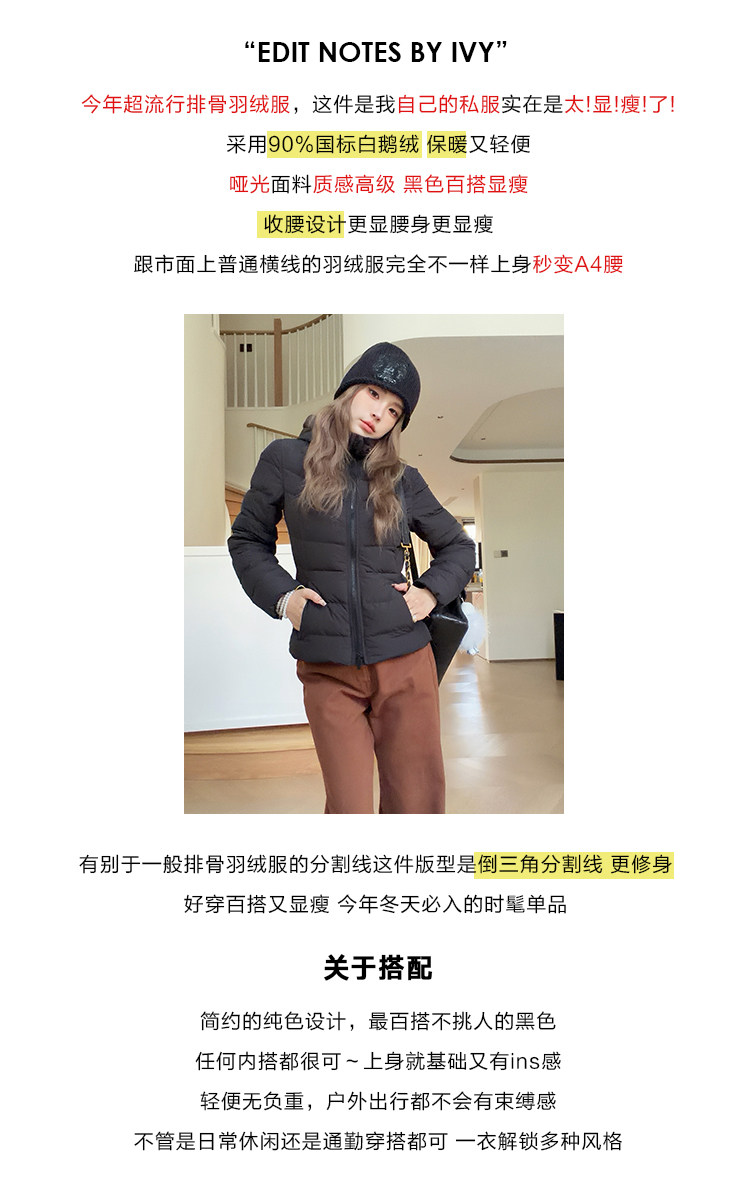 Mungsera's "Ivy Private Collection" 90% White Goose Down! the Most Slimming Ribbed down Jacket