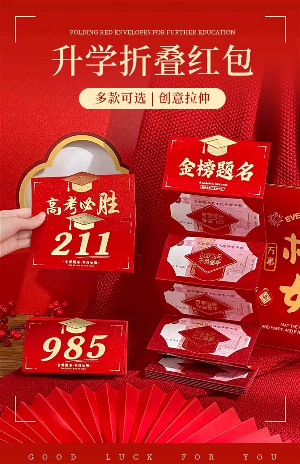 Creative Red Envelopes for Exam Success, a Bright Future Ahead, Six-Slot Folding Red Envelope Bag for High School and College Entrance Exams