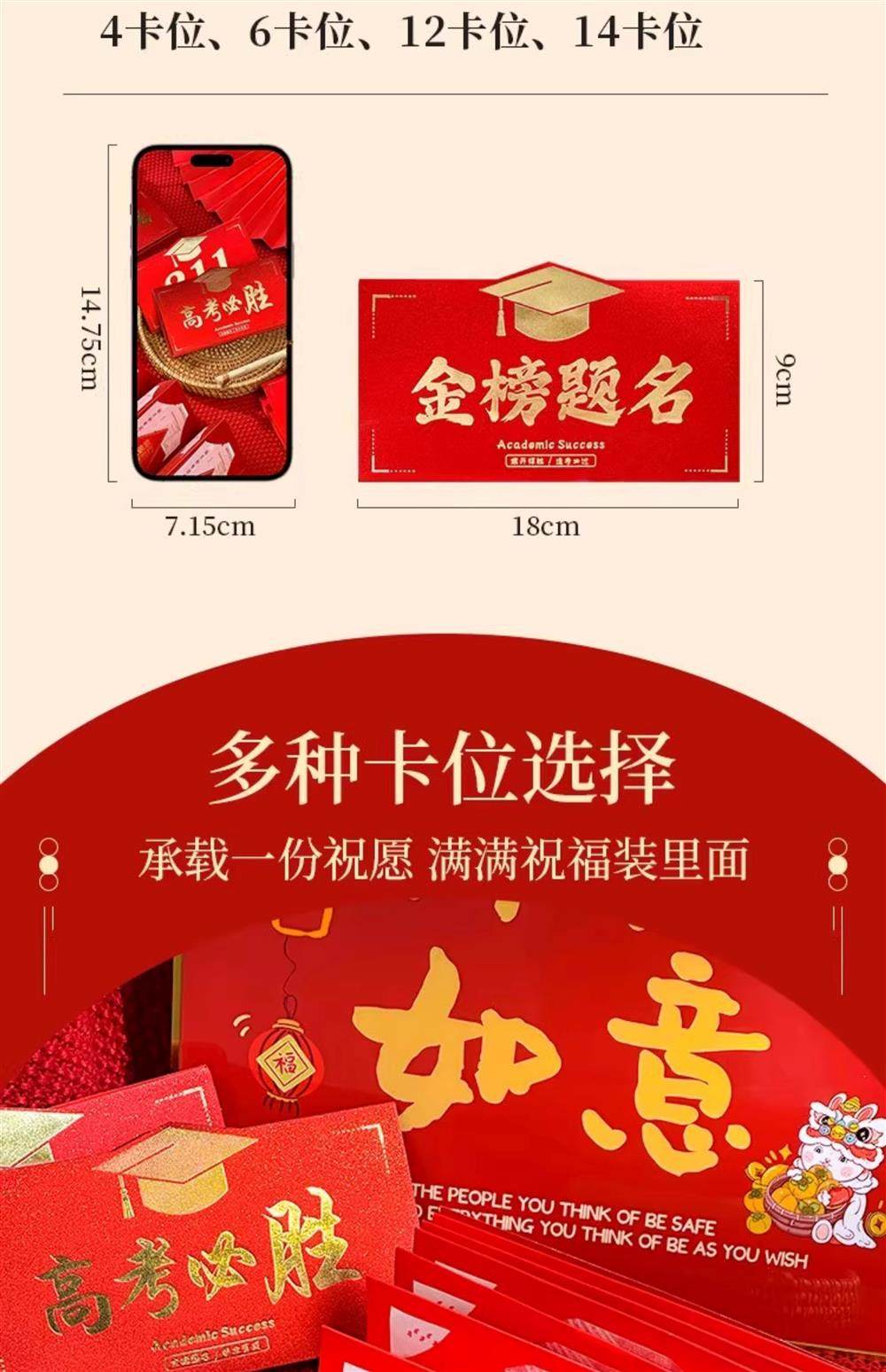 Color Classification 985 Academy,211 University,678 (Get Admitted),Top of the List,A Bright Future,Academic Success,Must Pass Every Exam,Must Win the College Entrance Examination,Must Win the High School Entrance Examination,Live up to the Glory,Winning the First Place in One Fell Swoop,The Future Is Promising,A Good Start,Gold List Title (Red Cardboard),A Bright Future (Red Cardboard),Must Pass Every Exam (Red Cardboard),Best Son,Best Daughter,Top Scholar Gift Set (Golden Success Red Envelope),Top Scholar Gift Box Set (Prosperous Future Red Envelope),No. 1 Scholar Gift Box Set (985 Red Envelope),No. 1 Scholar Gift Box Set (211 Red Envelopes),Top Scholar Gift Set (Admission Red Envelope)