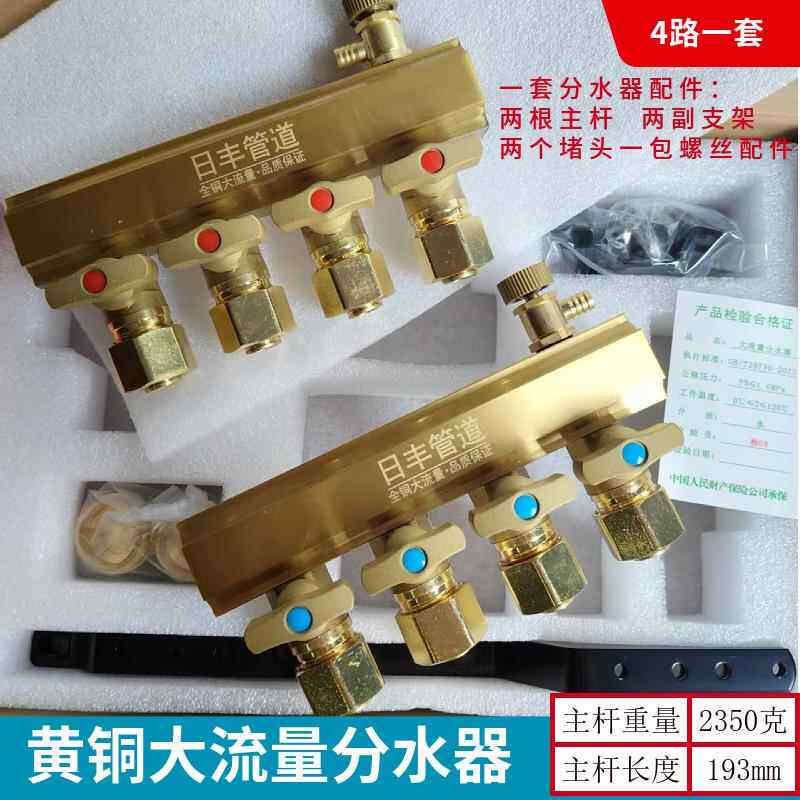 Rifeng Pipeline Home Decoration All-copper integrated large-flow water distributor DN25 4-point floor heating pipe full set of valves brass bed sheet pull cart