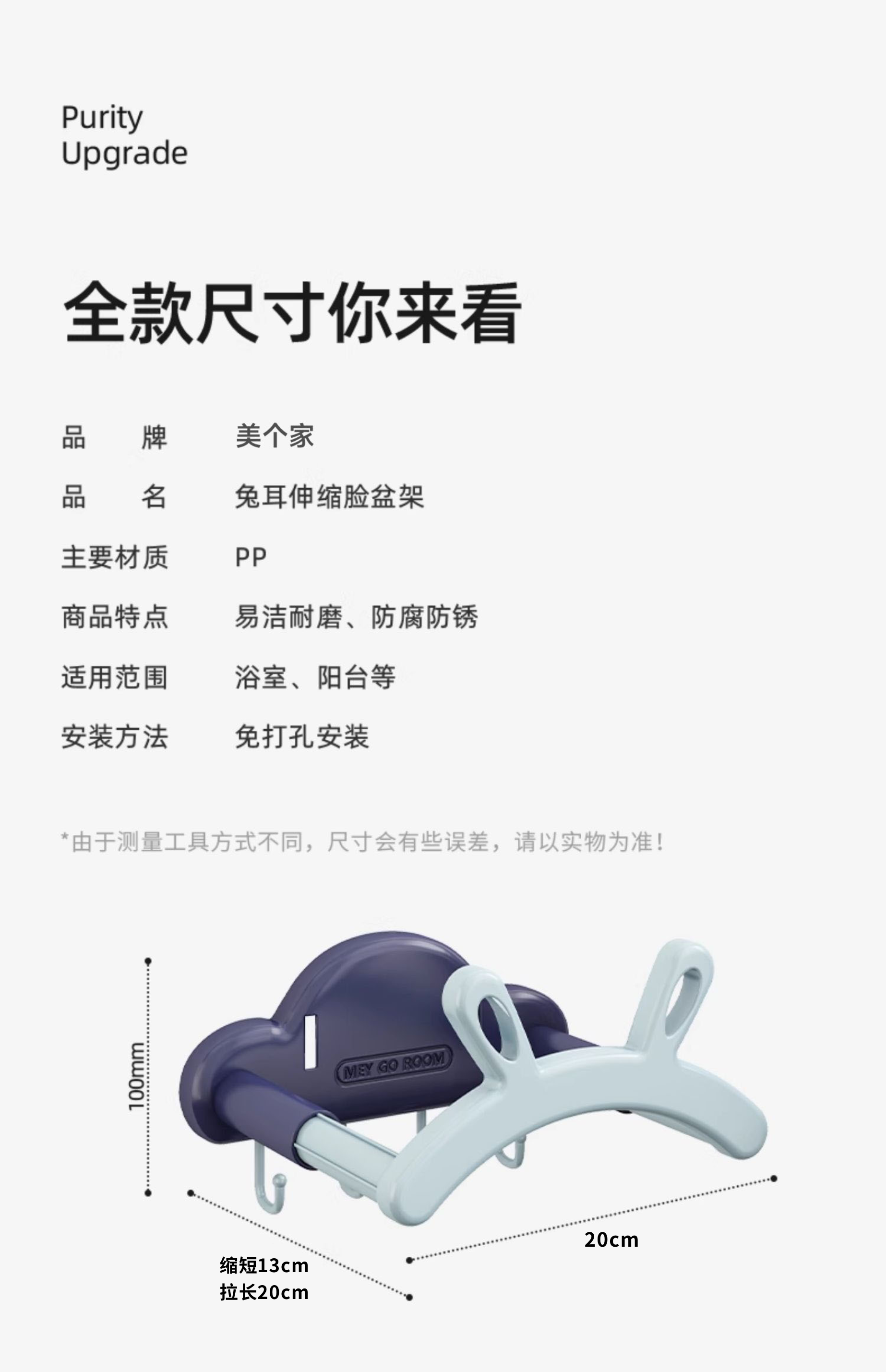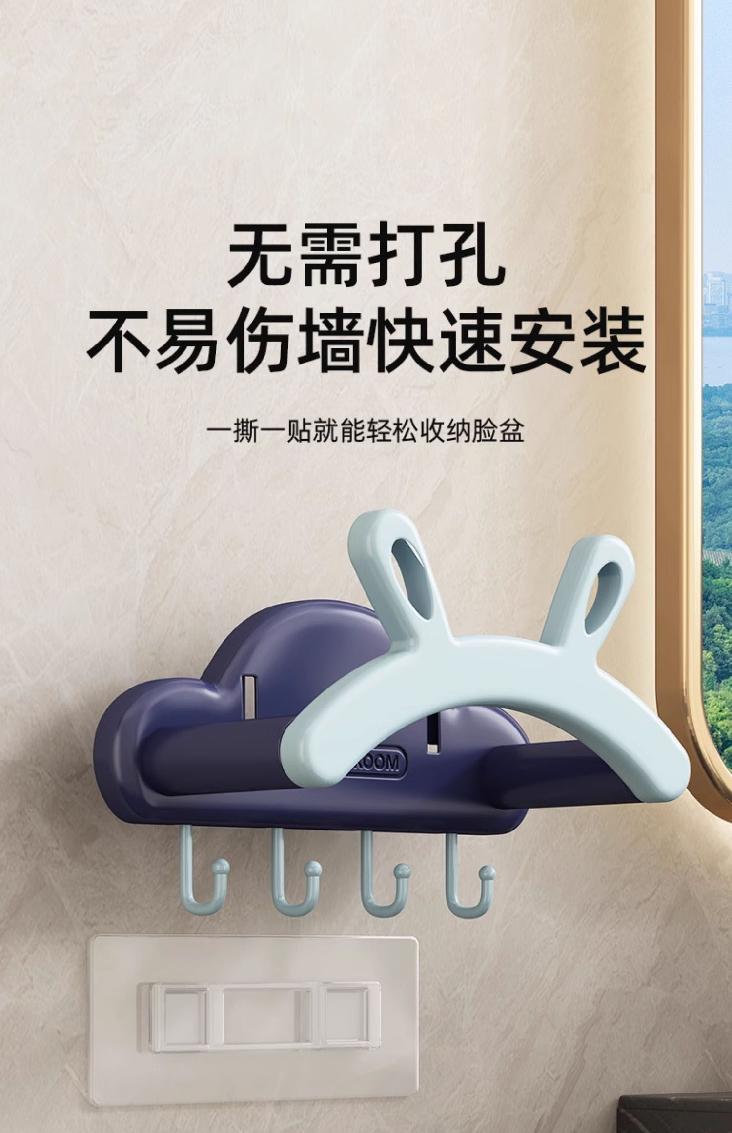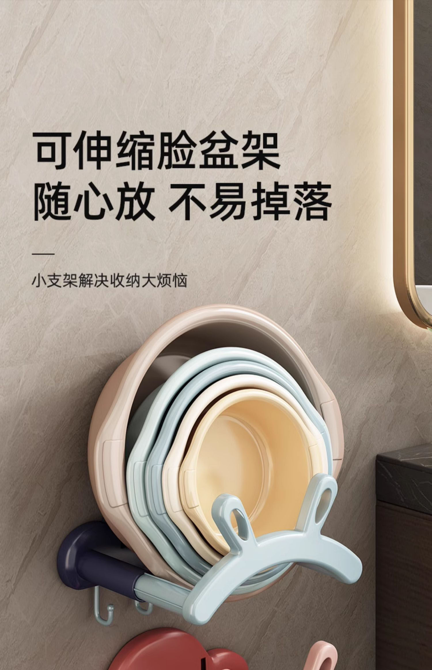 Washbasin storage rack telescopic punch-free wall hanging cartoon home traceless wall-mounted practical