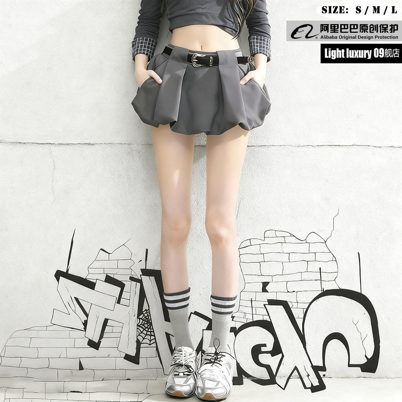 09 ship store women’s group report% american hot girl skirt women’s summer high waisted a-line slim blossom skirt gray short skirt