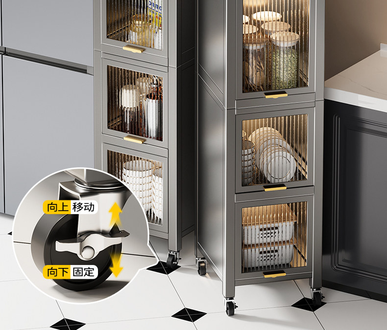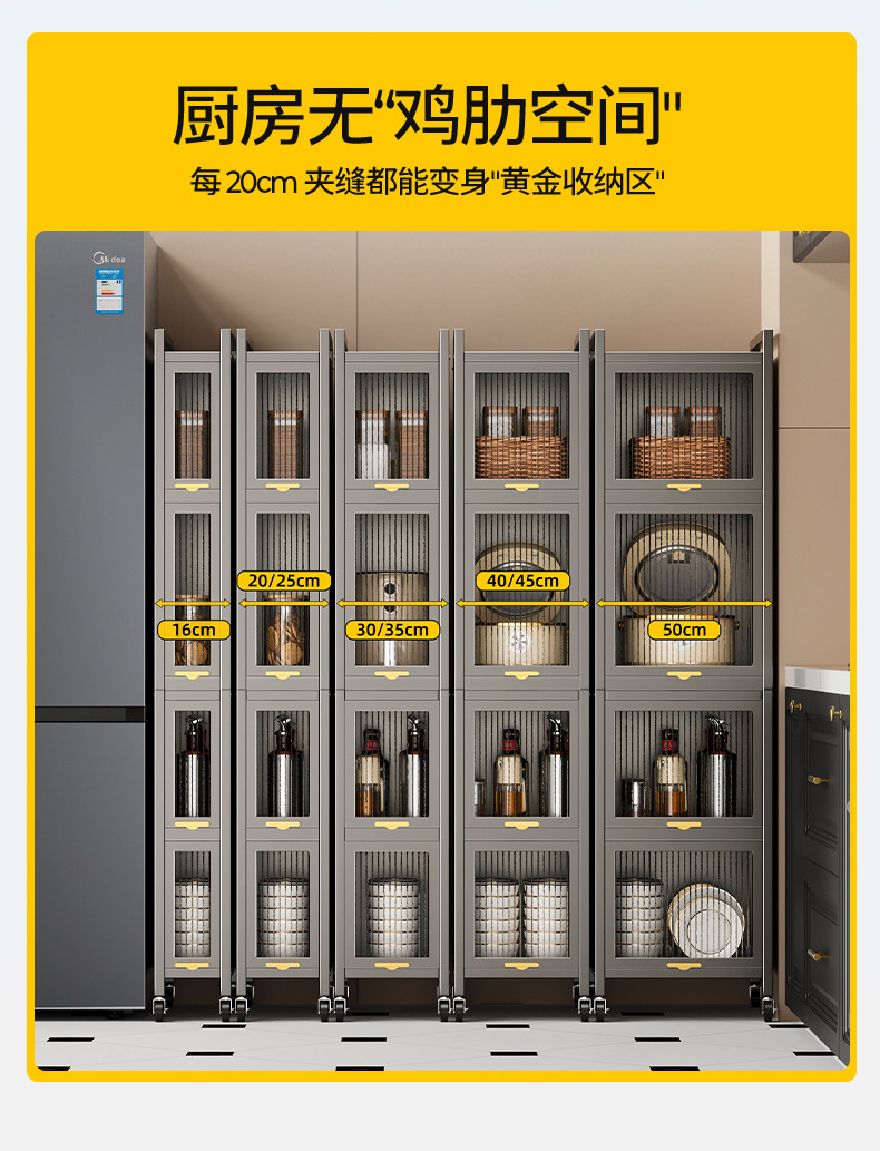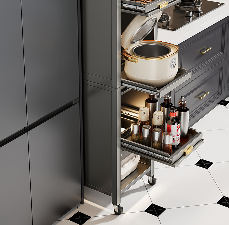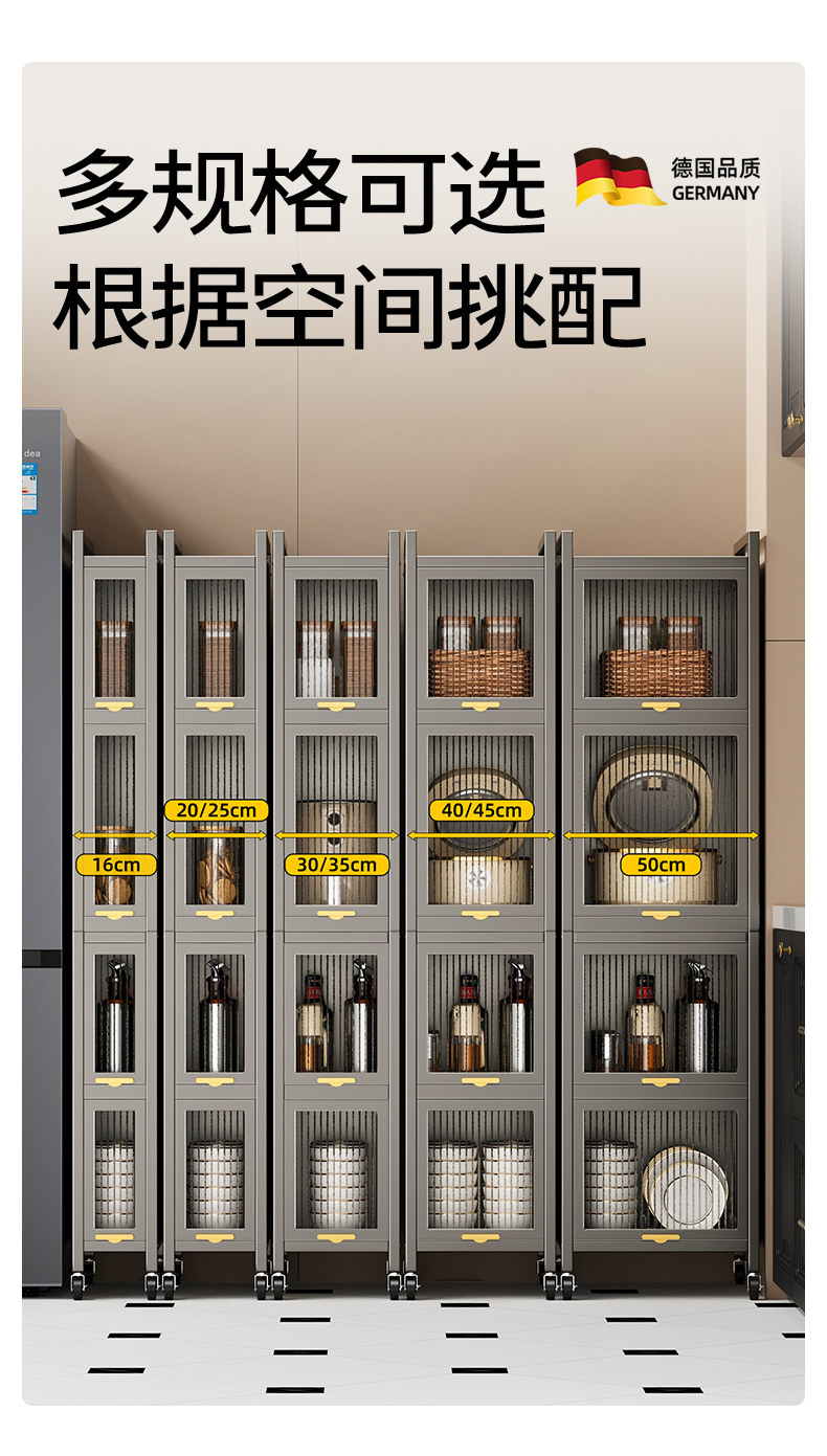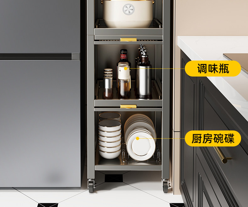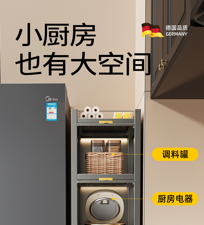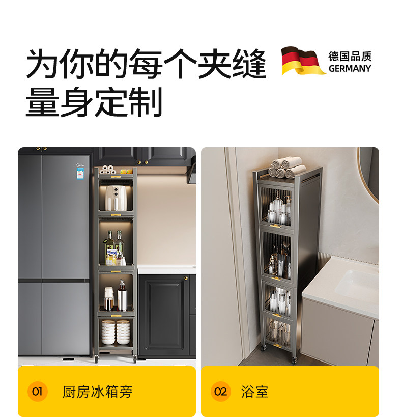 German High-End Narrow Gap Storage Cabinet, Narrow-Sided Storage Rack, Kitchen Refrigerator Side Pull-Out Cabinet, Storage Cabinet, Cupboard
