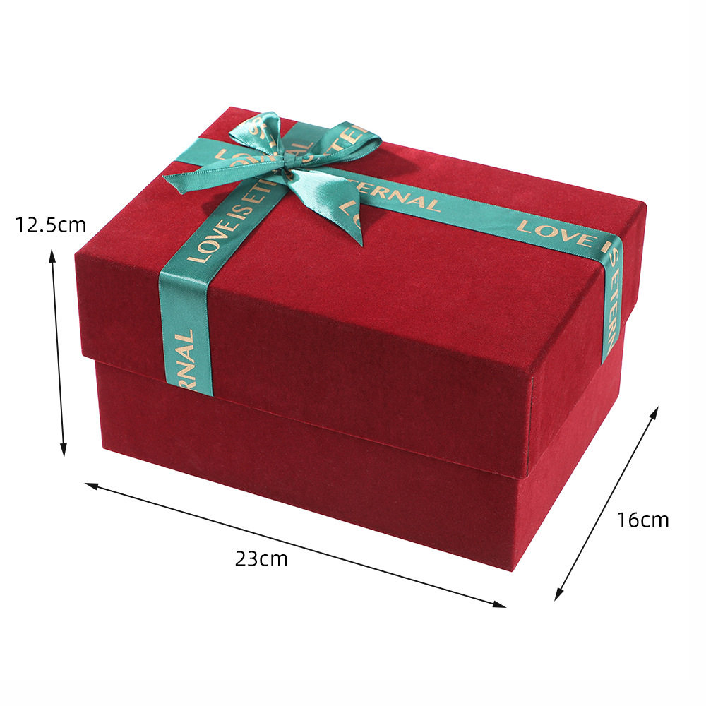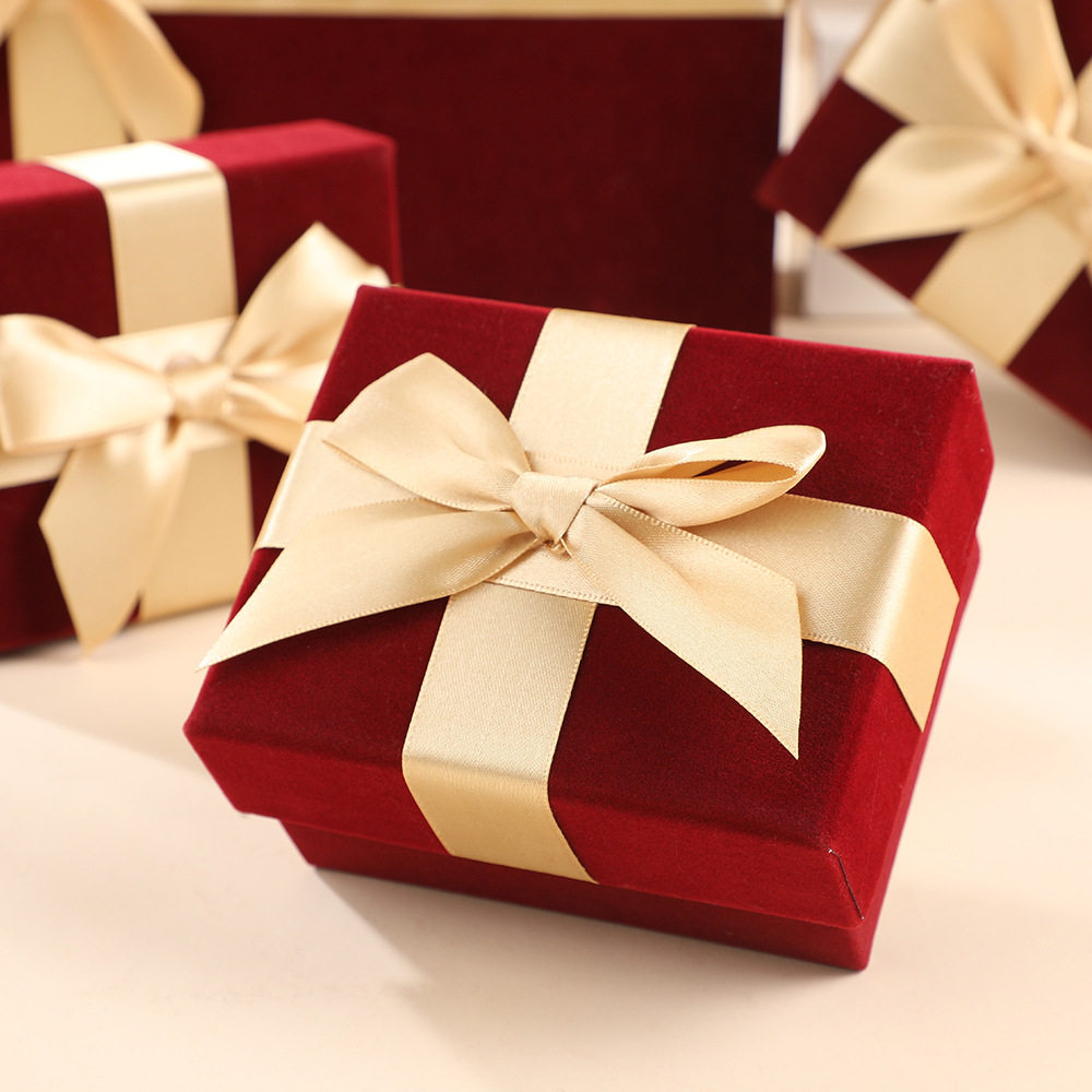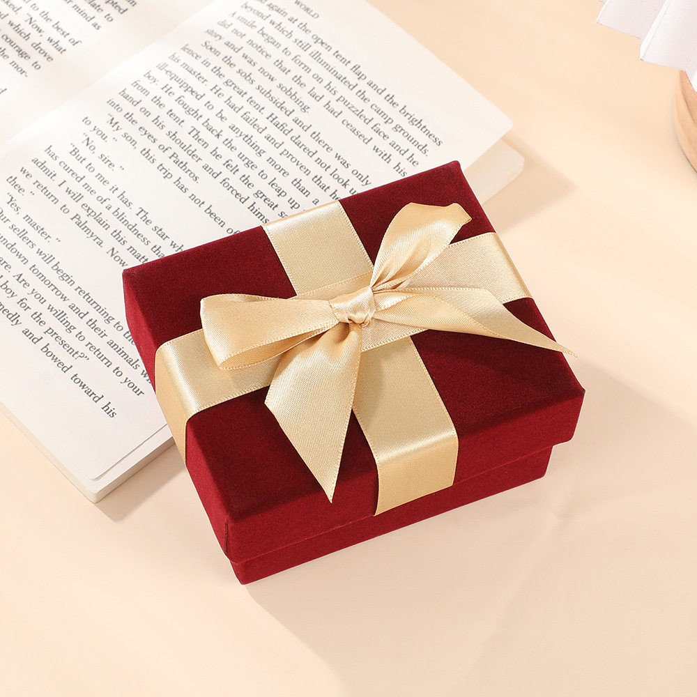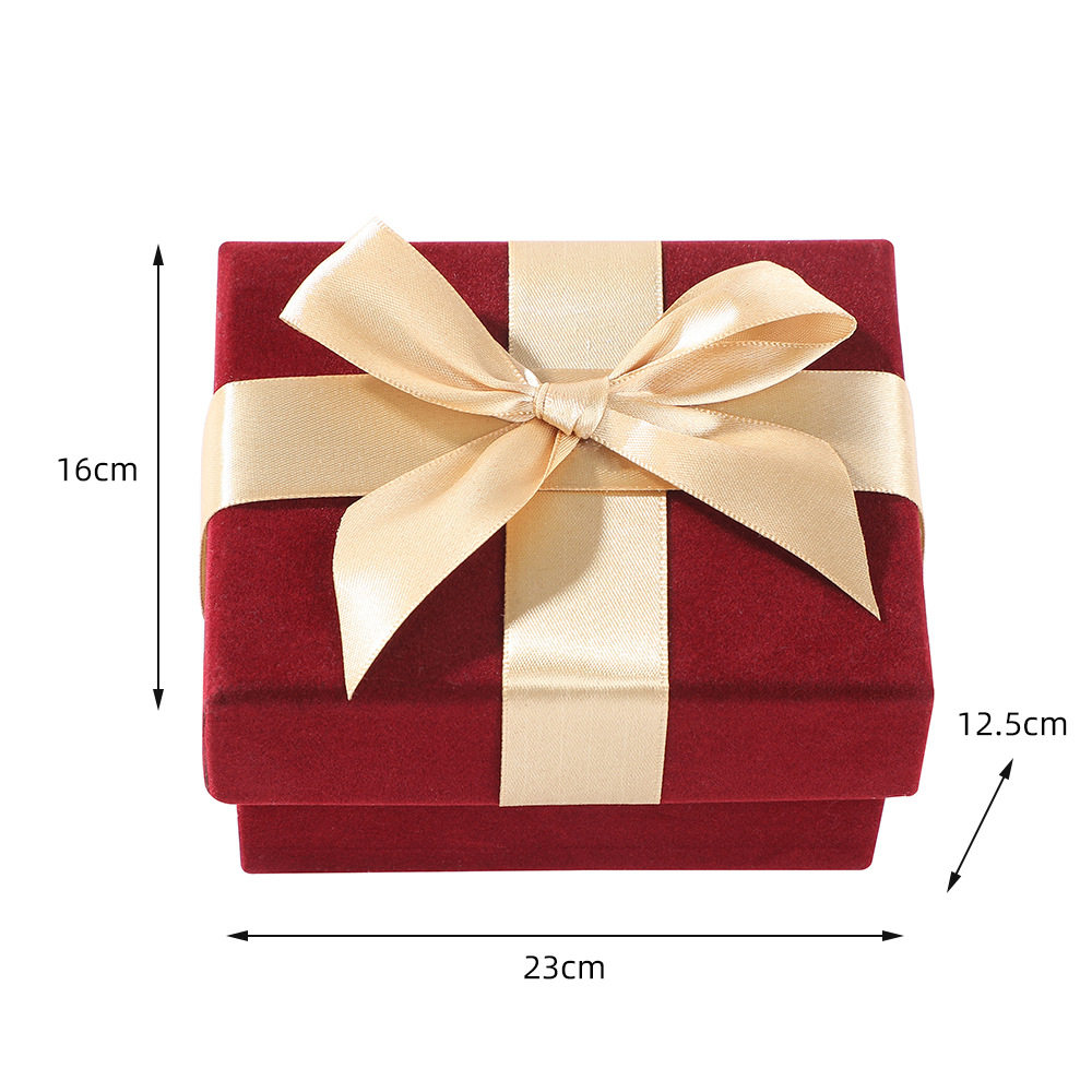 Ready-Stock Velvet Bow Gift Box Holiday Gift Packaging Lid-And-Base Box for Necklaces, Jewelry, Perfume, and Lipstick
