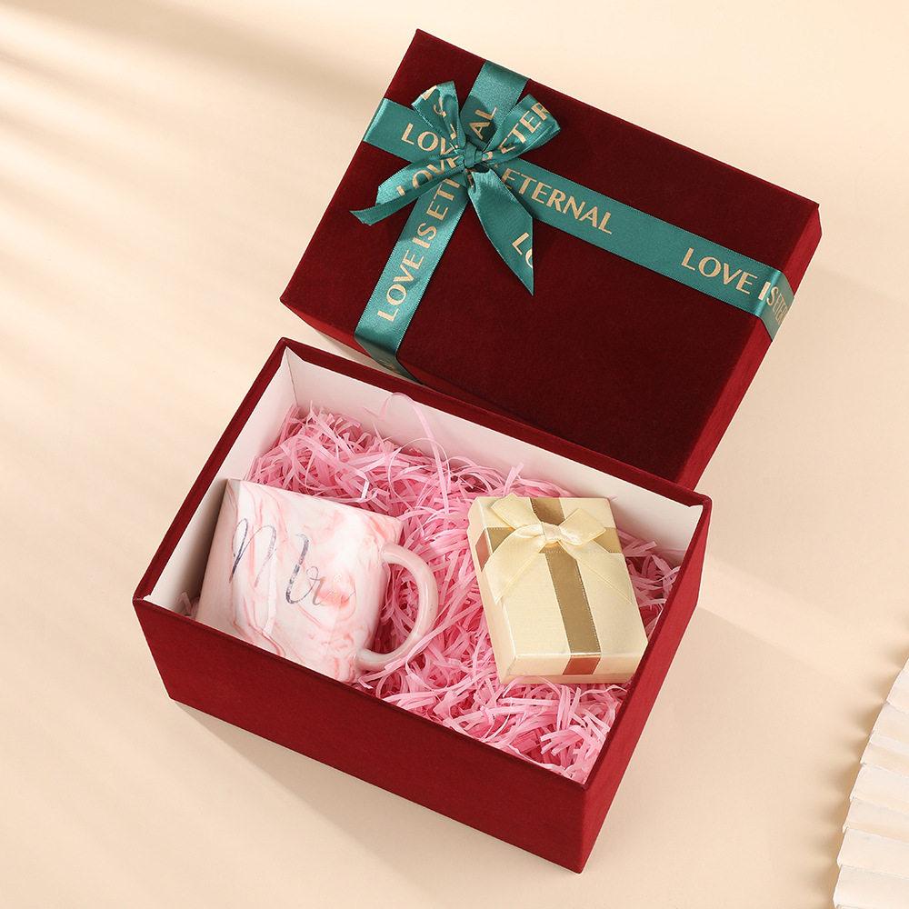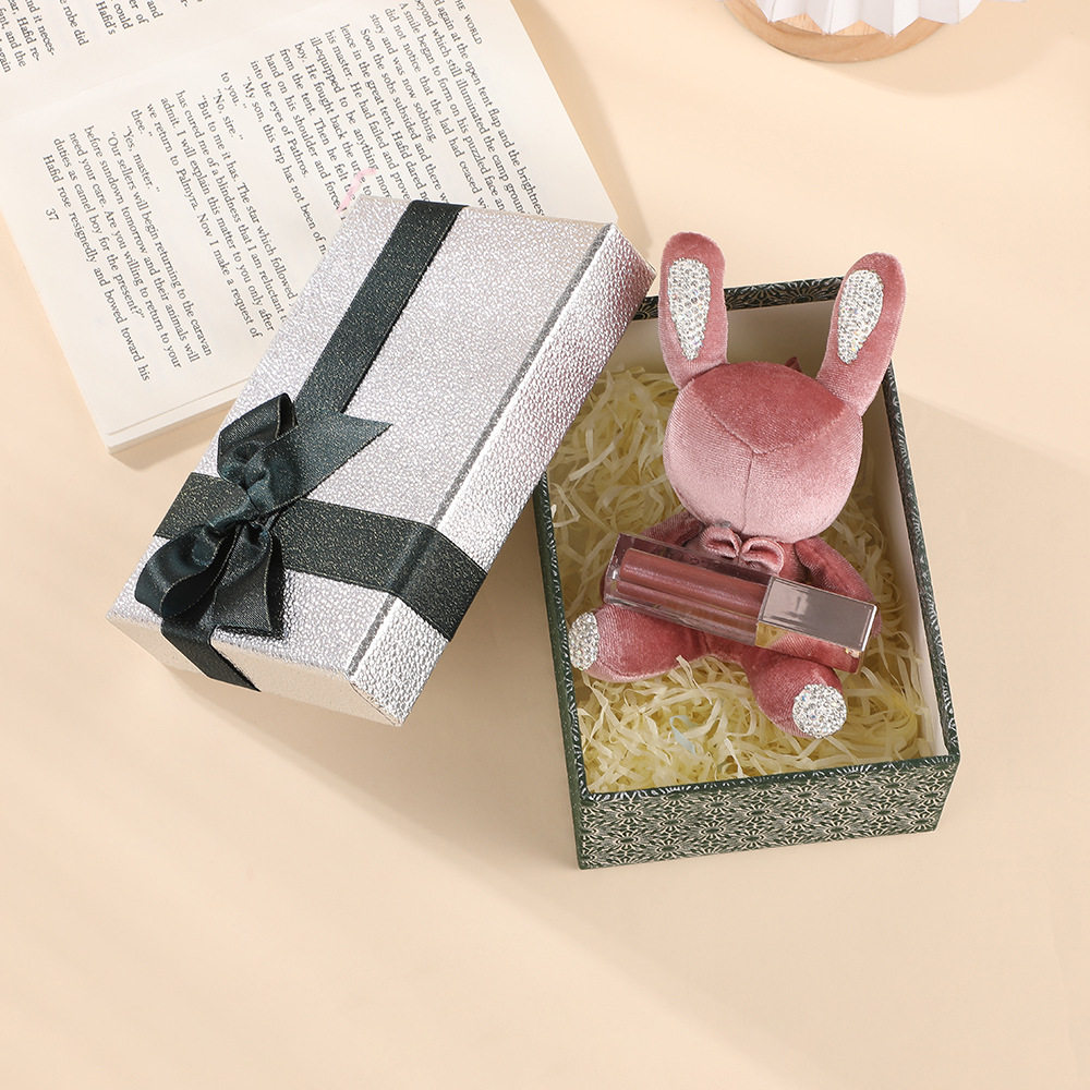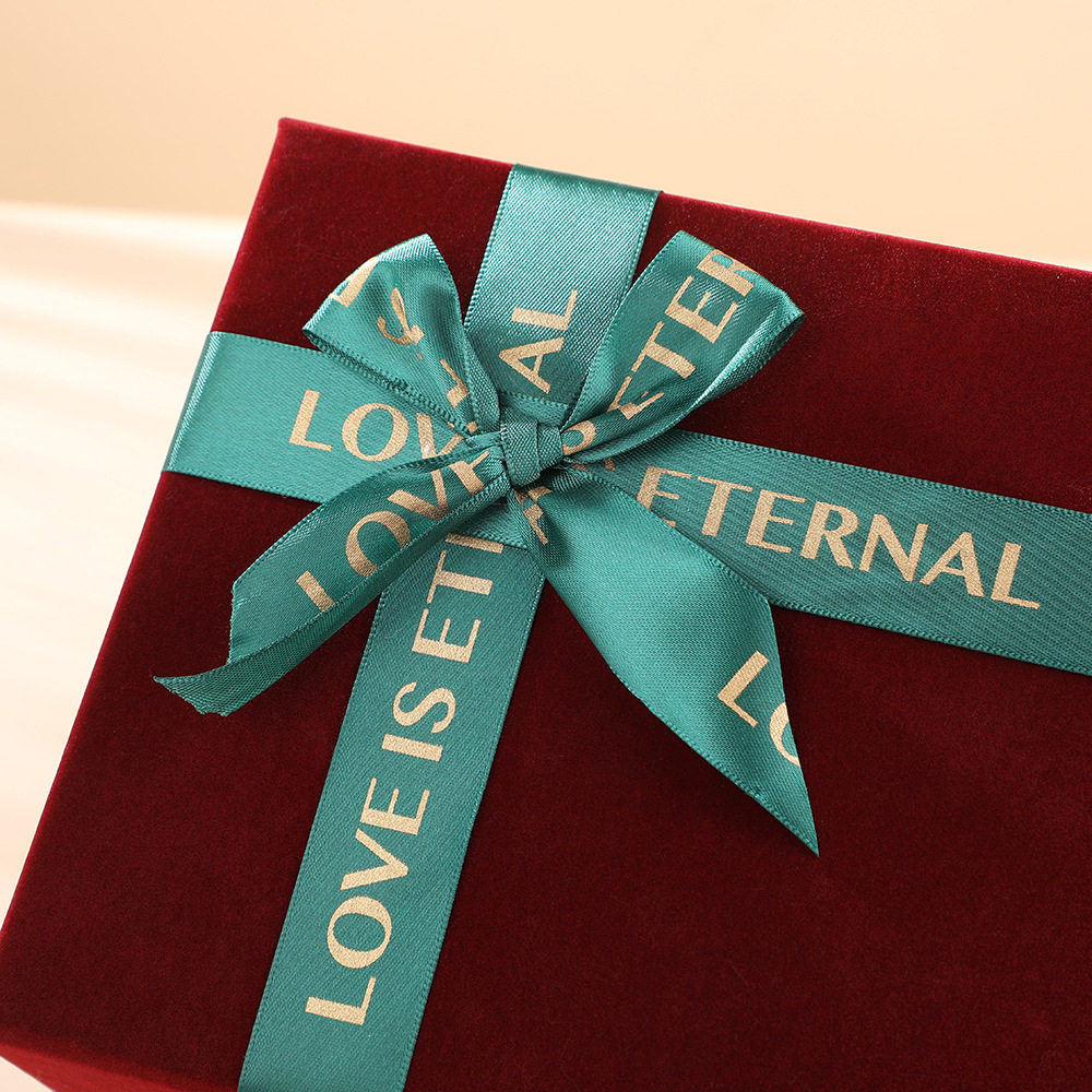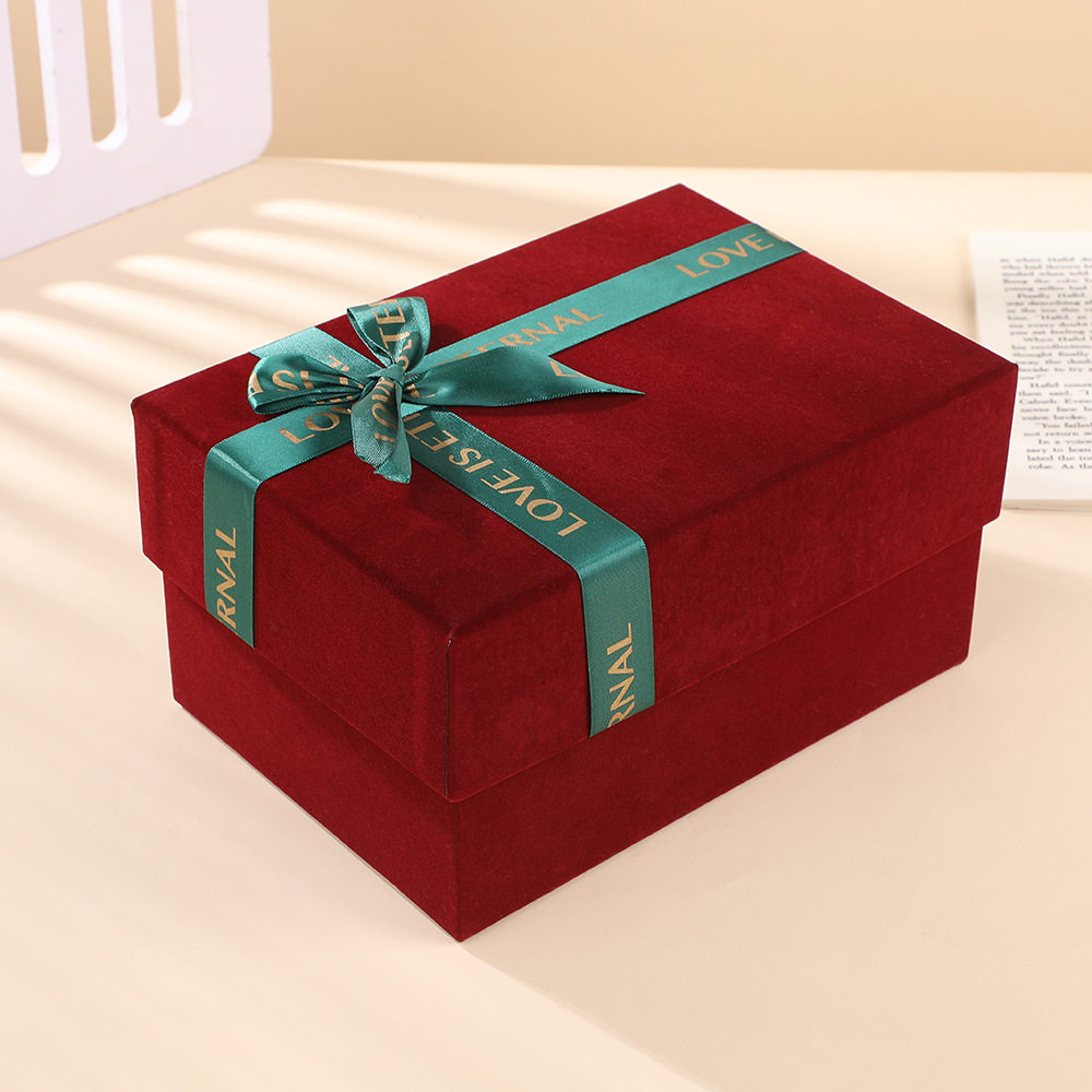 Ready-Stock Velvet Bow Gift Box Holiday Gift Packaging Lid-And-Base Box for Necklaces, Jewelry, Perfume, and Lipstick