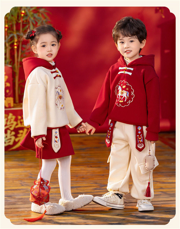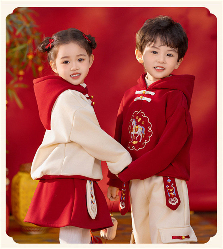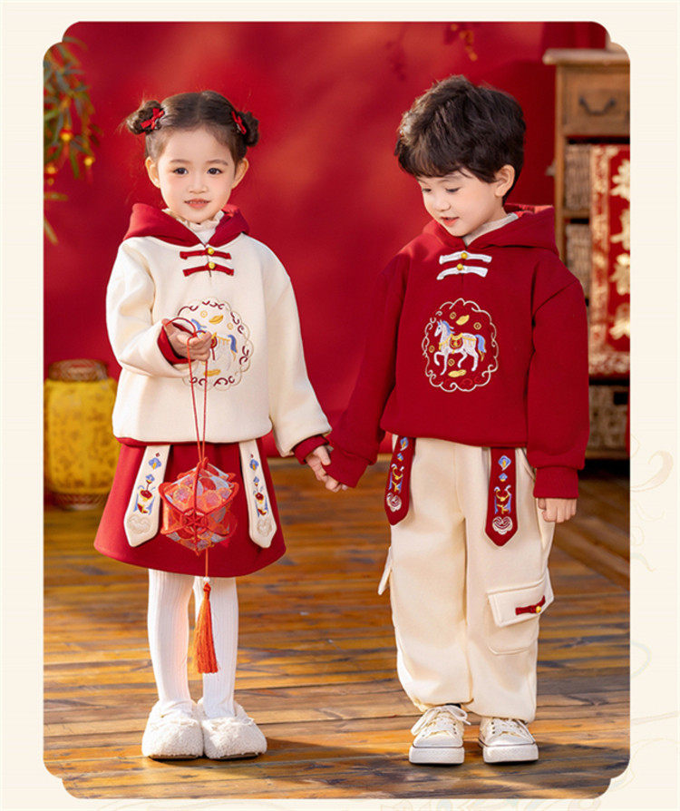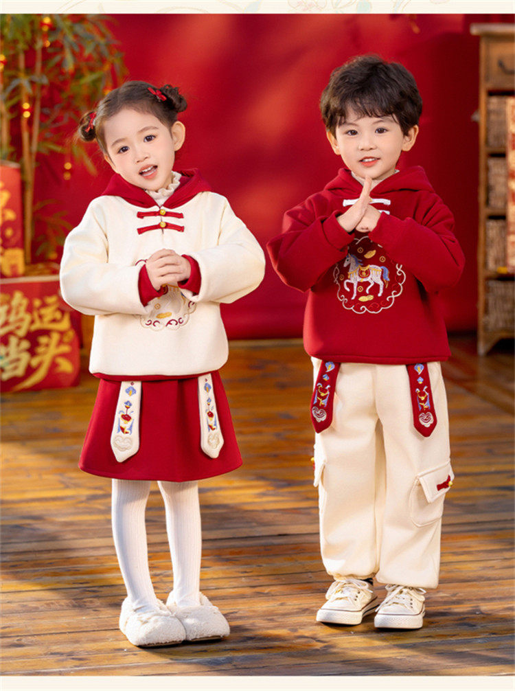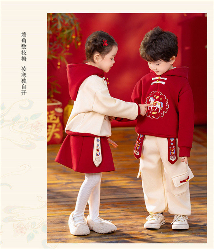 Boys and Girls Hanfu Suit with Thick Fleece, New Chinese Style National Style Sibling Outfits, New Year's Clothing, Children's Tang Suit, New Year's Day Performance Clothing