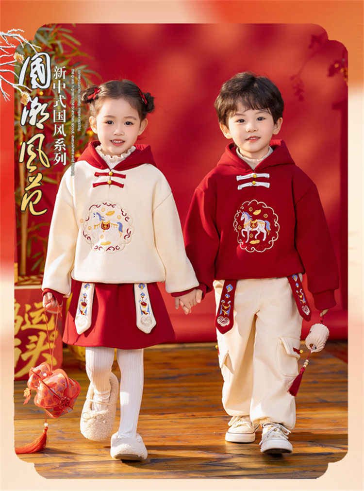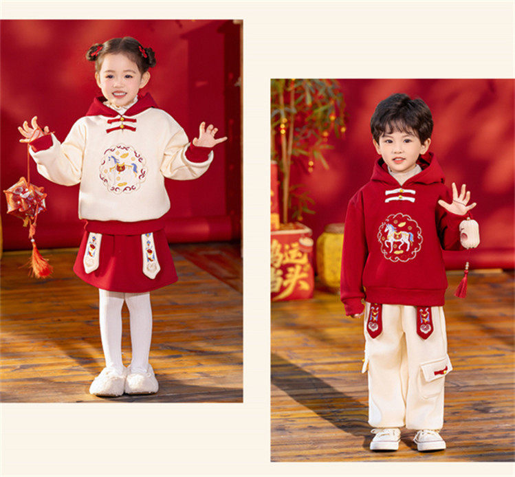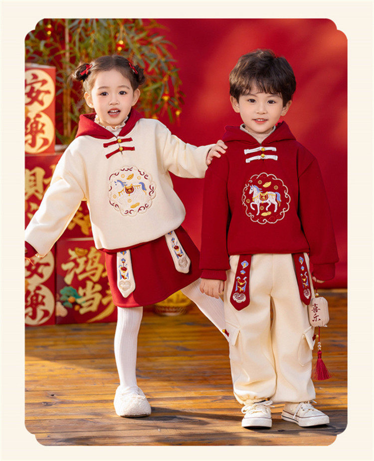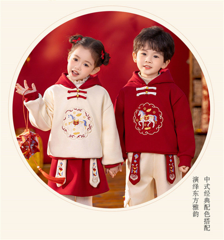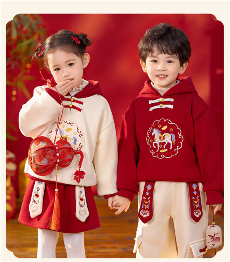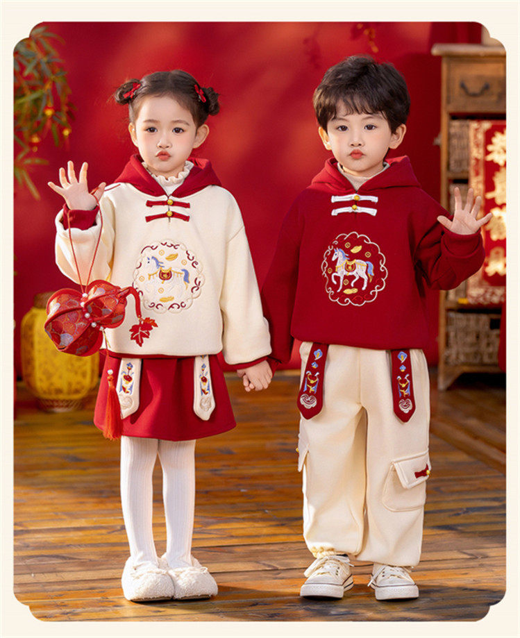 Boys and Girls Hanfu Suit with Thick Fleece, New Chinese Style National Style Sibling Outfits, New Year's Clothing, Children's Tang Suit, New Year's Day Performance Clothing