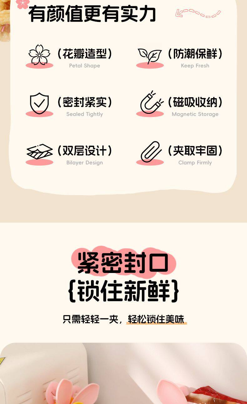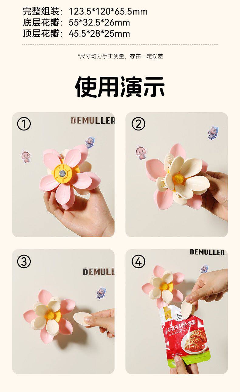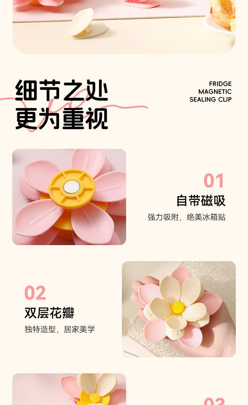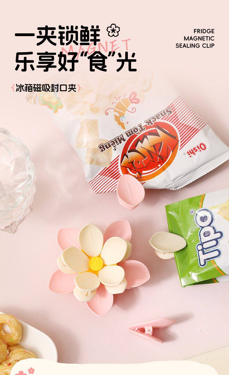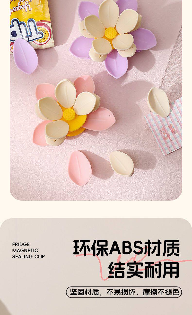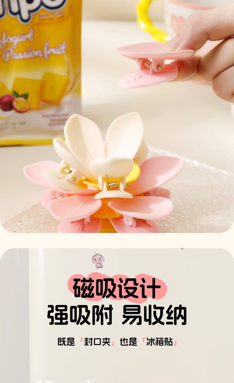 Lotus Flower Sealing Clip Refrigerator Magnet Food Bag Clip Snack Sealing Clip Flower Petal Creative 3D Magnetic Absorption Organizer