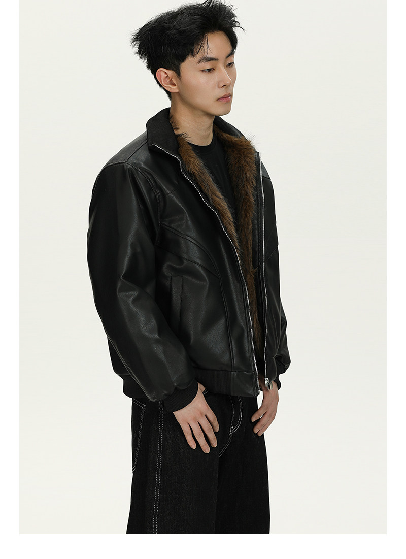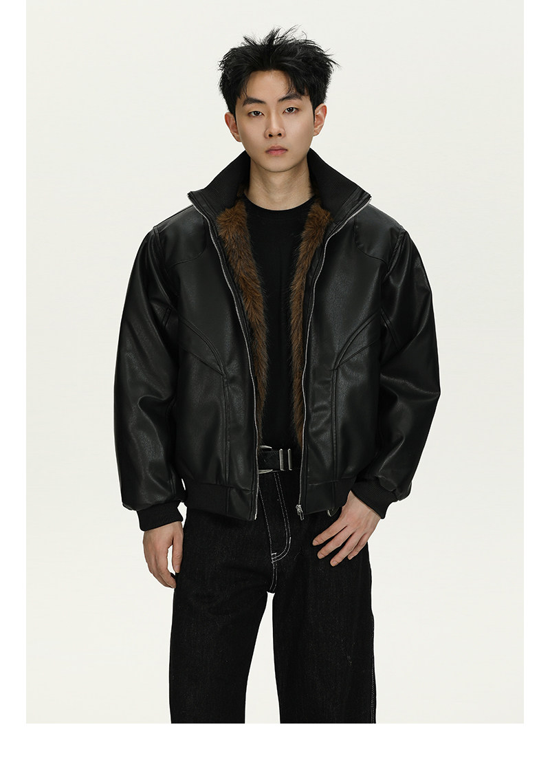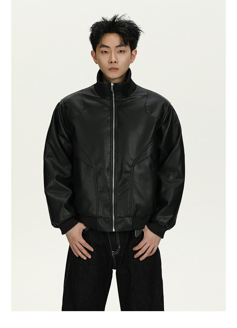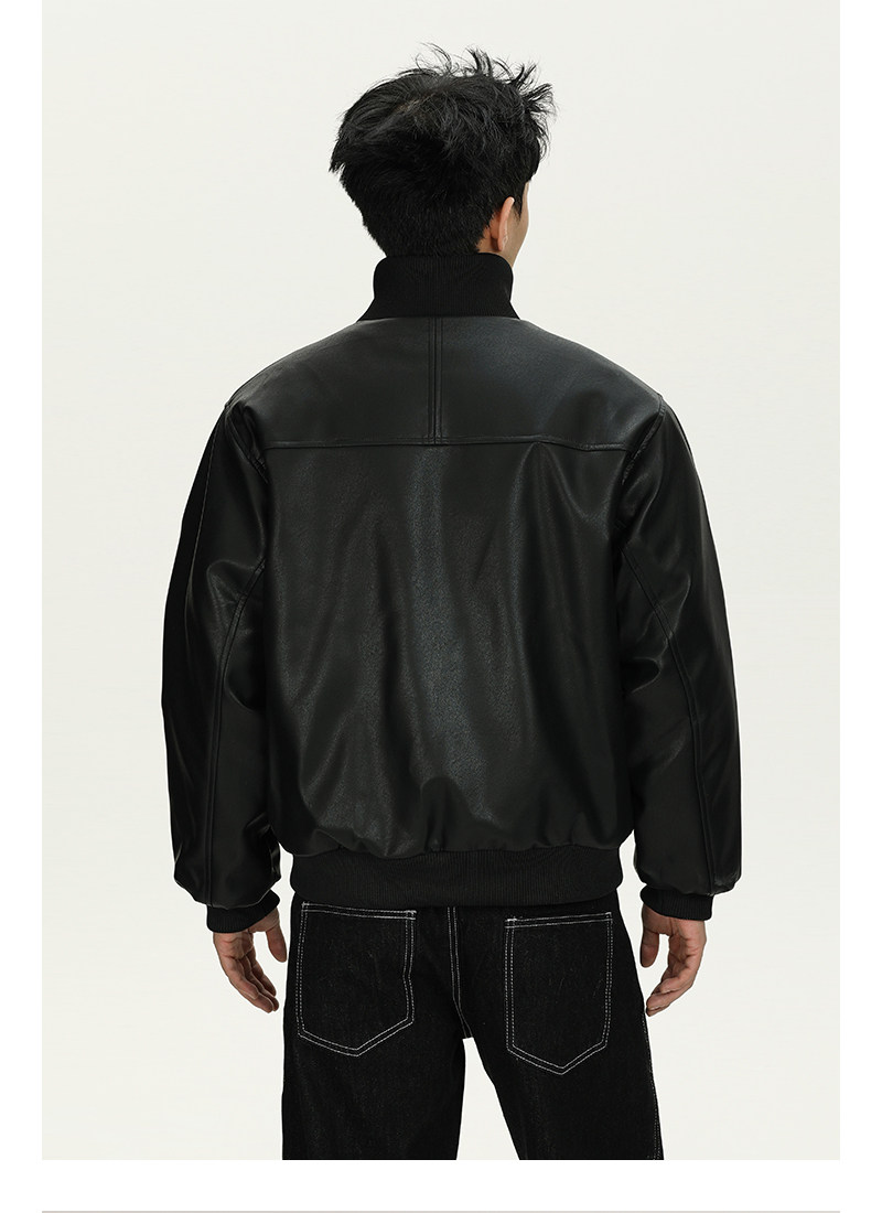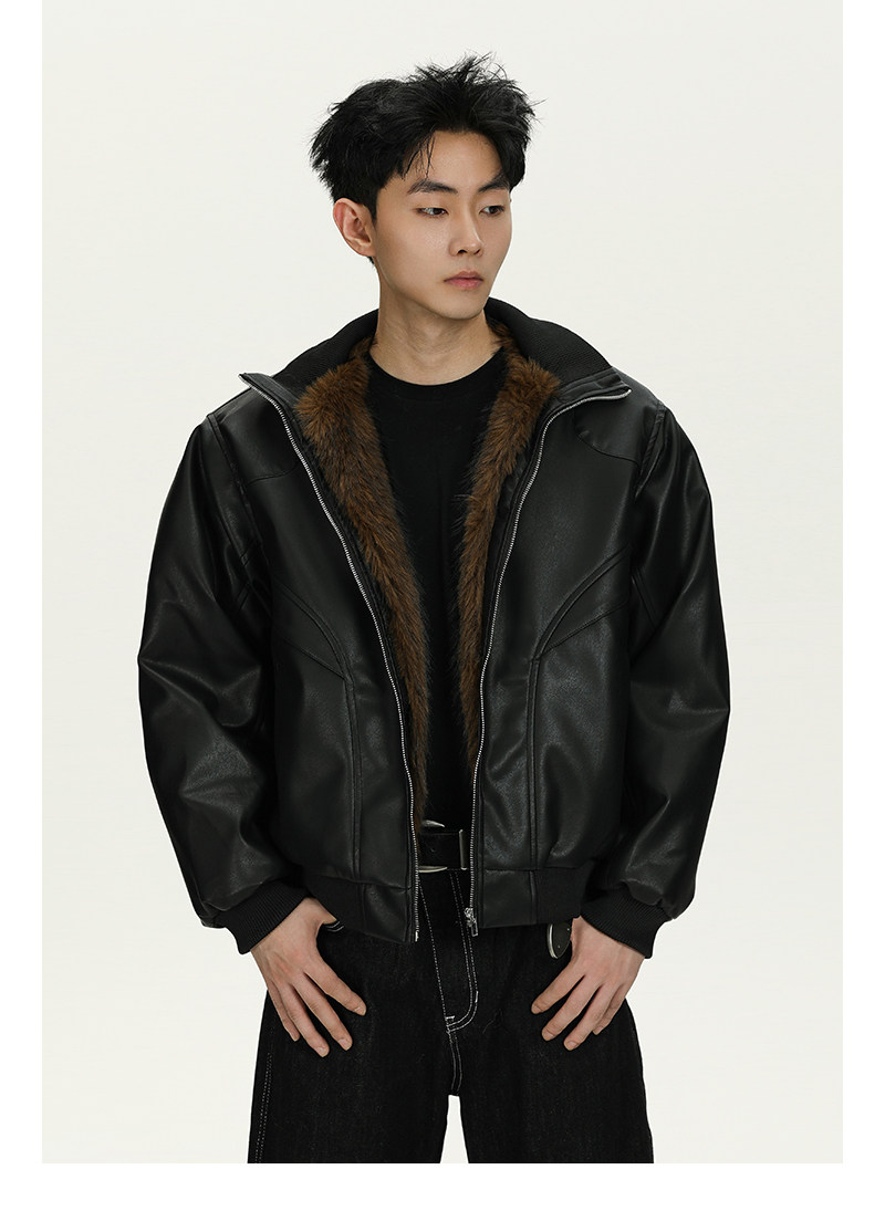 A Carton Retro Deconstructed Design Pu Leather Jacket Cotton Coat for Men and Women, Thickened Winter Outerwear