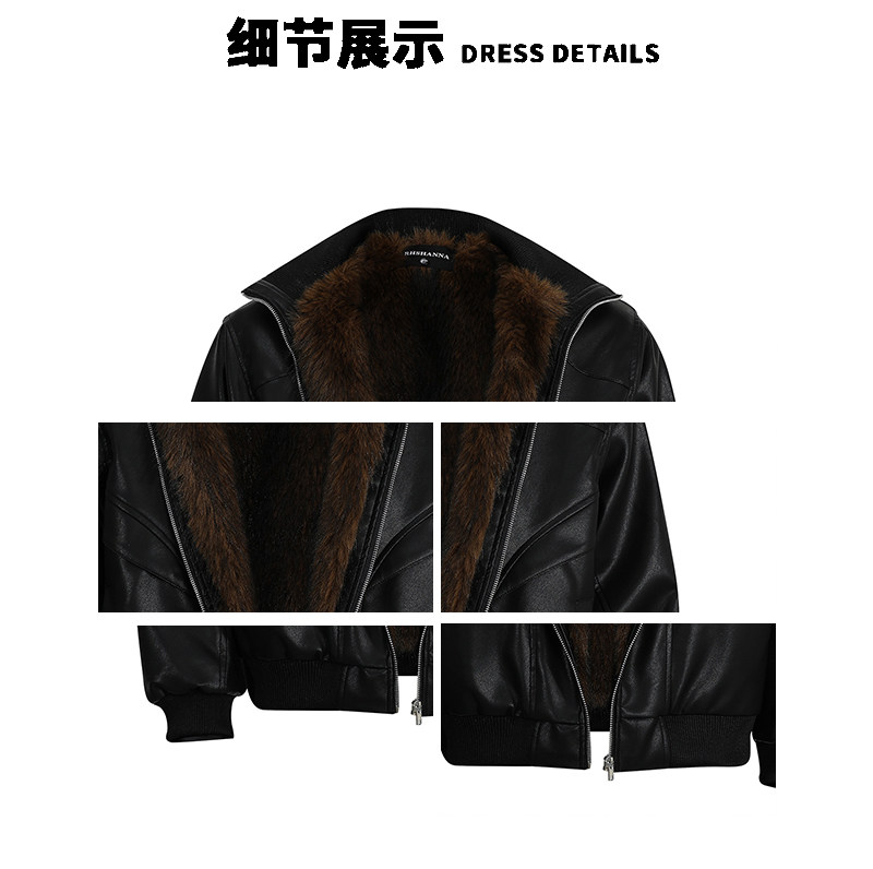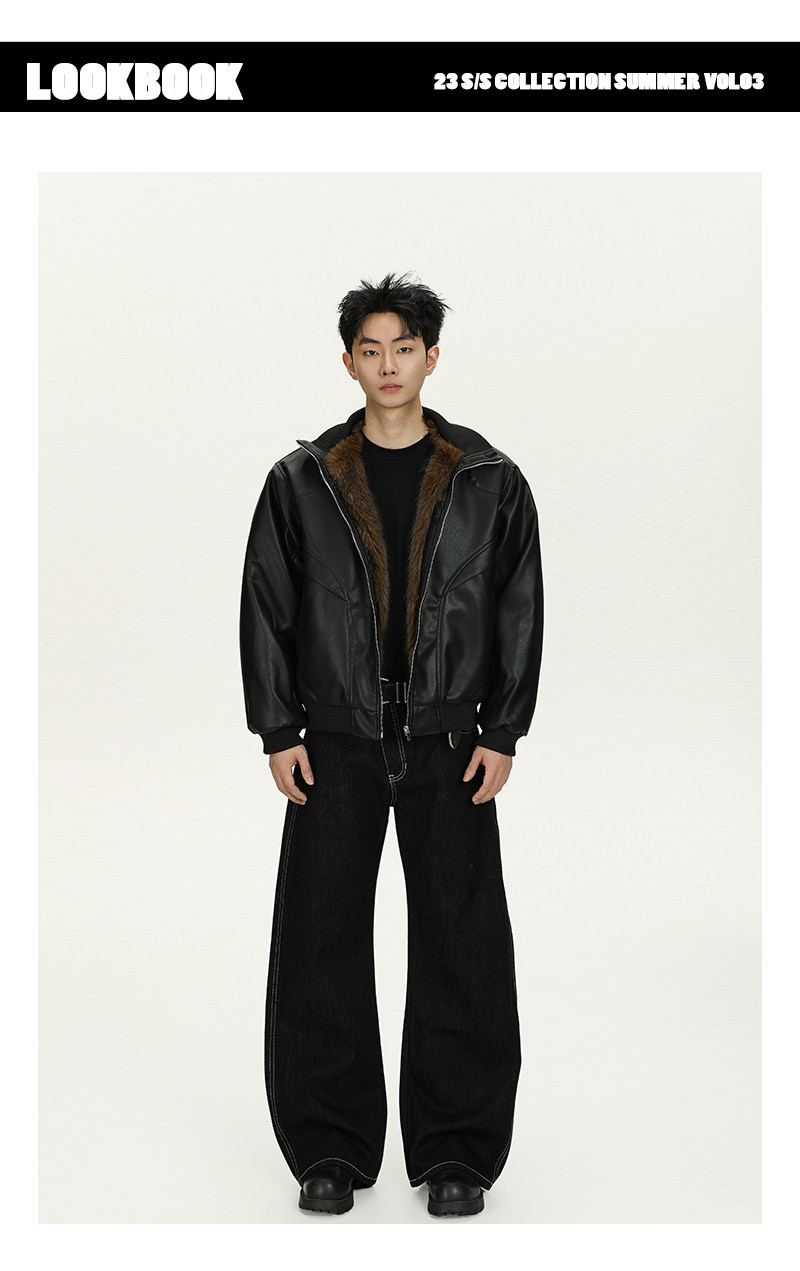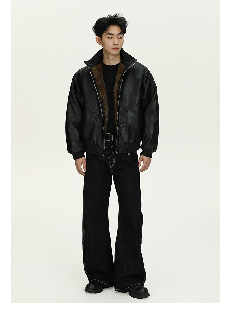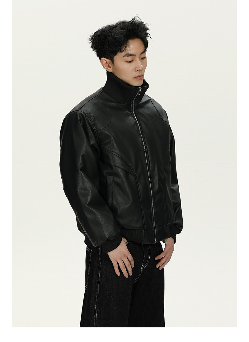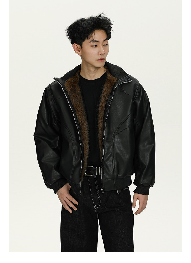 A Carton Retro Deconstructed Design Pu Leather Jacket Cotton Coat for Men and Women, Thickened Winter Outerwear