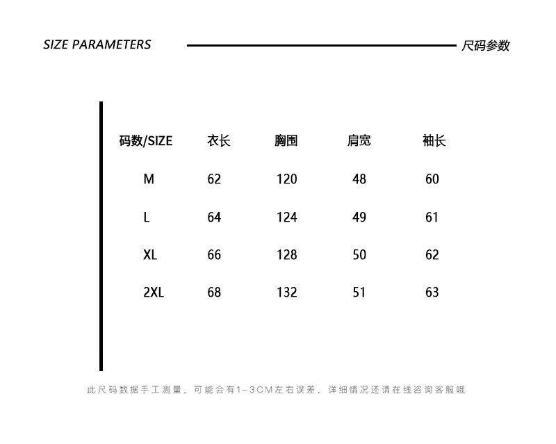 China (cm) 160-165/84-86 165-170 / 88-90 167-172 / 92-96 168-173 / 98-102 170-176 / 106-110
