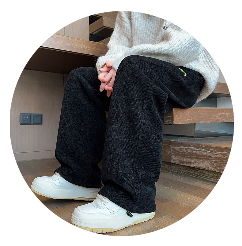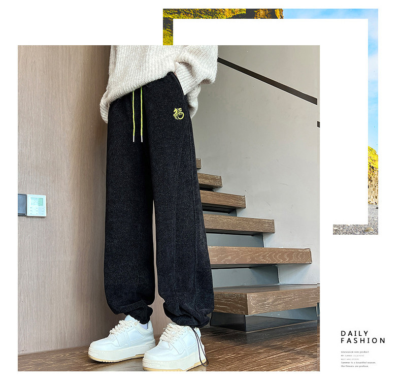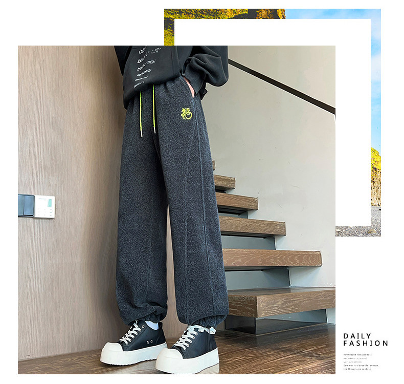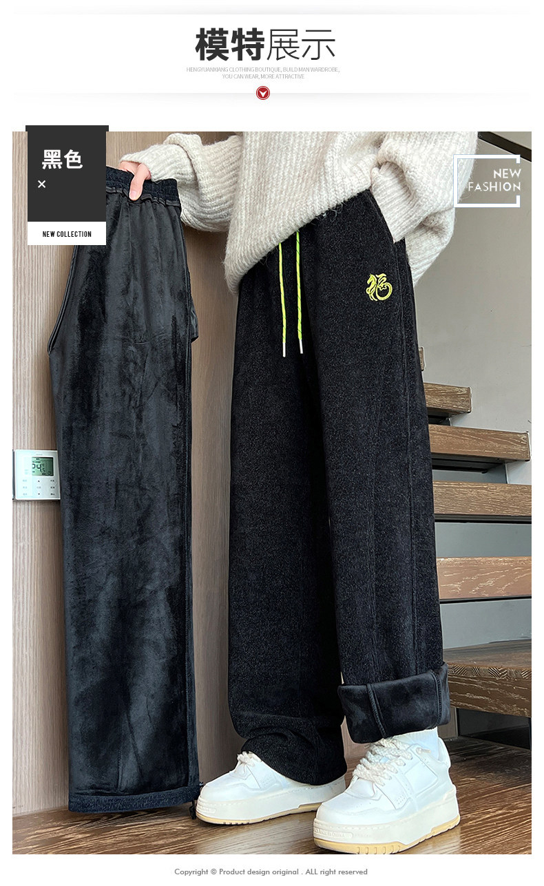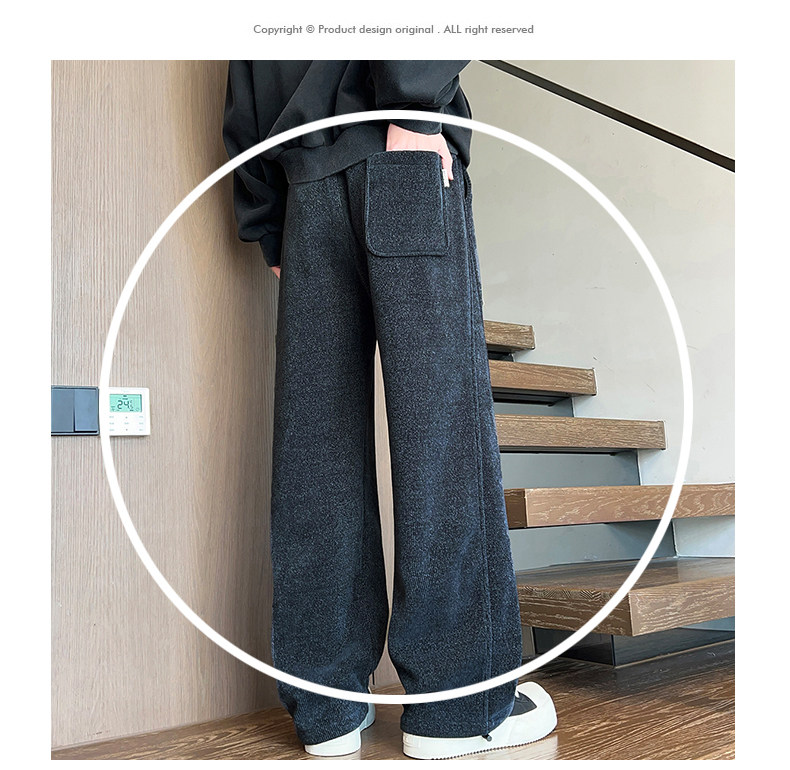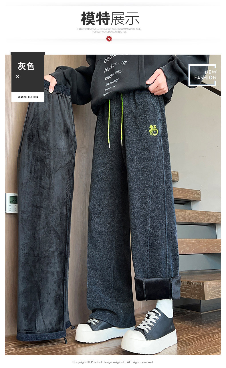 Teenagers' Pants with Fleece Lining, Thickened for Autumn and Winter, Loose Straight-Leg Sweatpants for Boys, Casual Long Pants for Middle and High School Students
