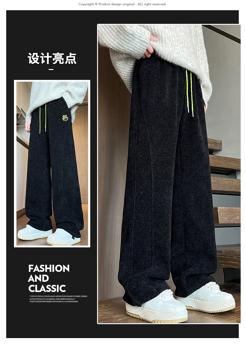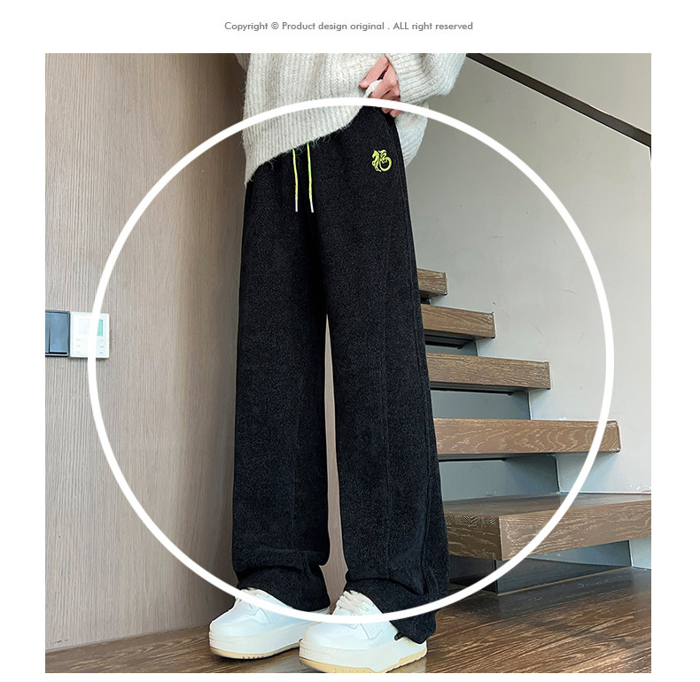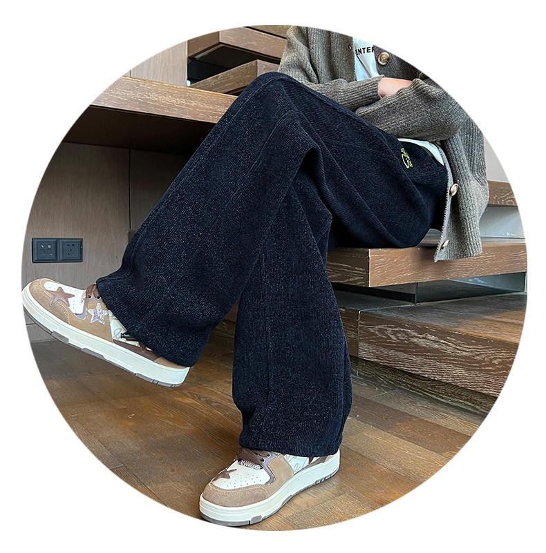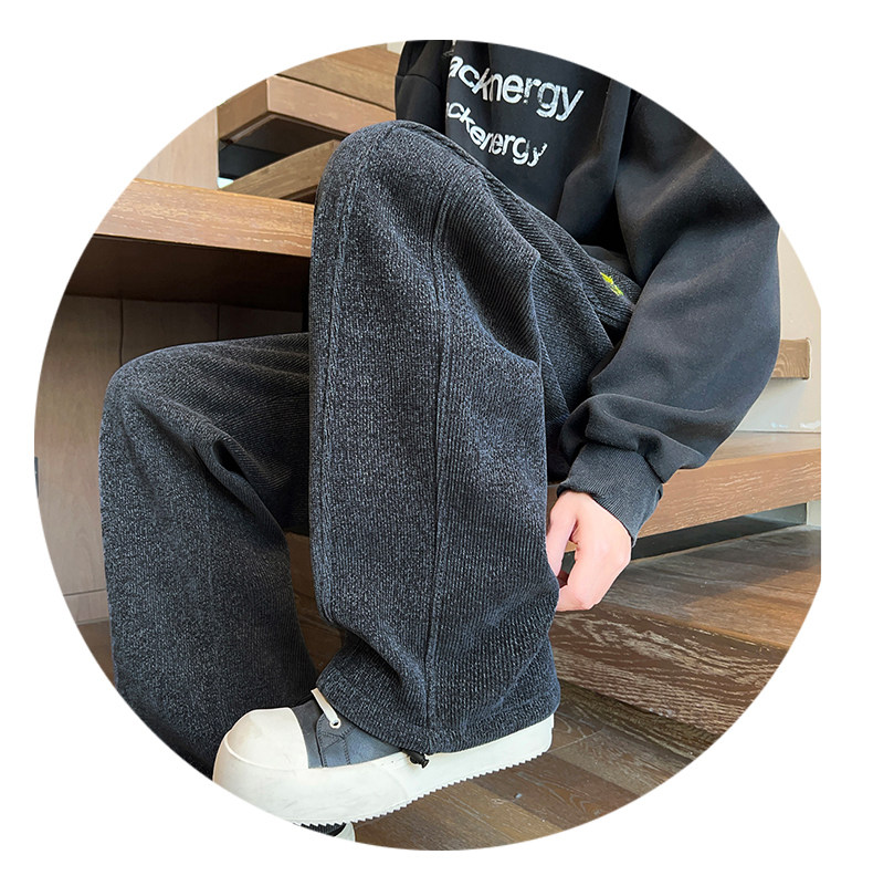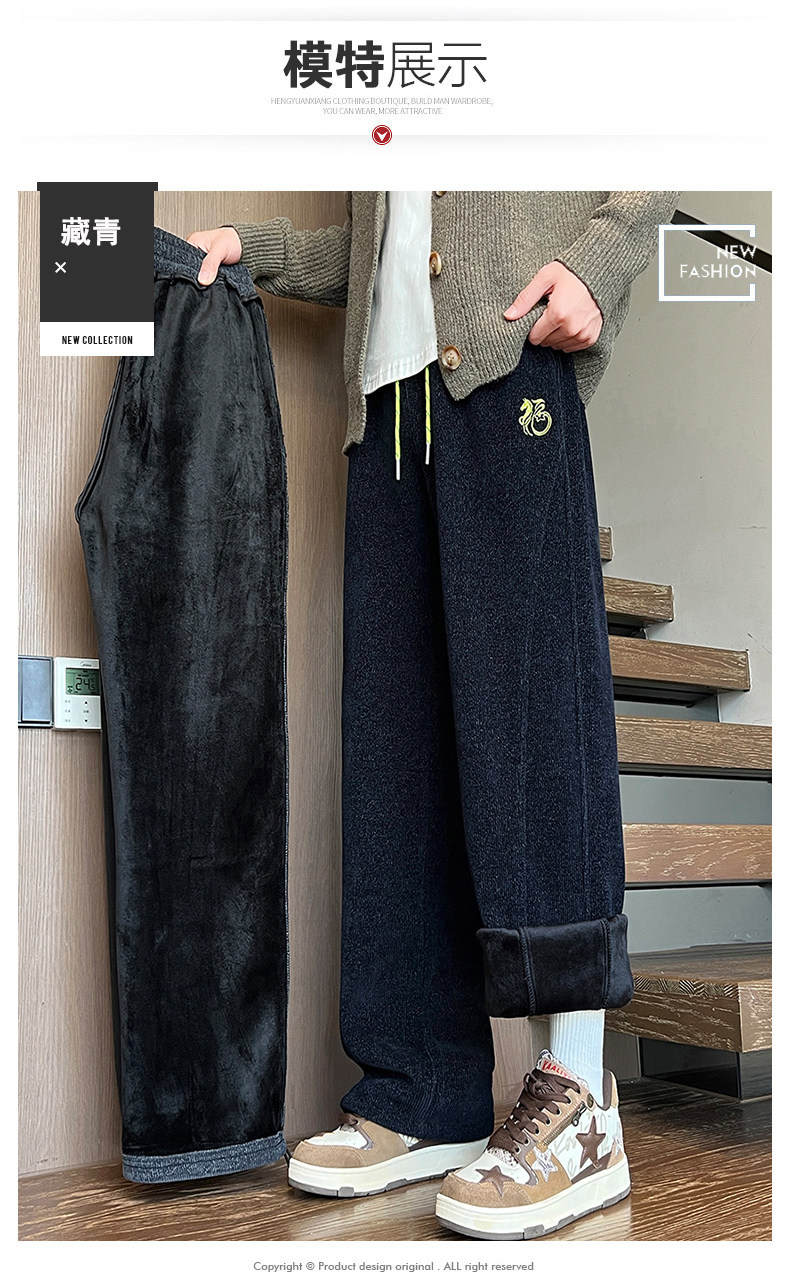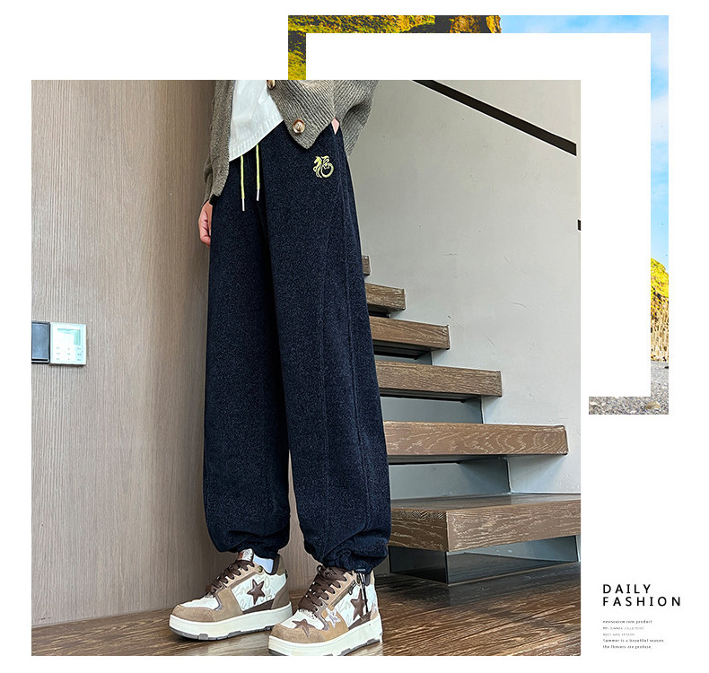 Teenagers' Pants with Fleece Lining, Thickened for Autumn and Winter, Loose Straight-Leg Sweatpants for Boys, Casual Long Pants for Middle and High School Students